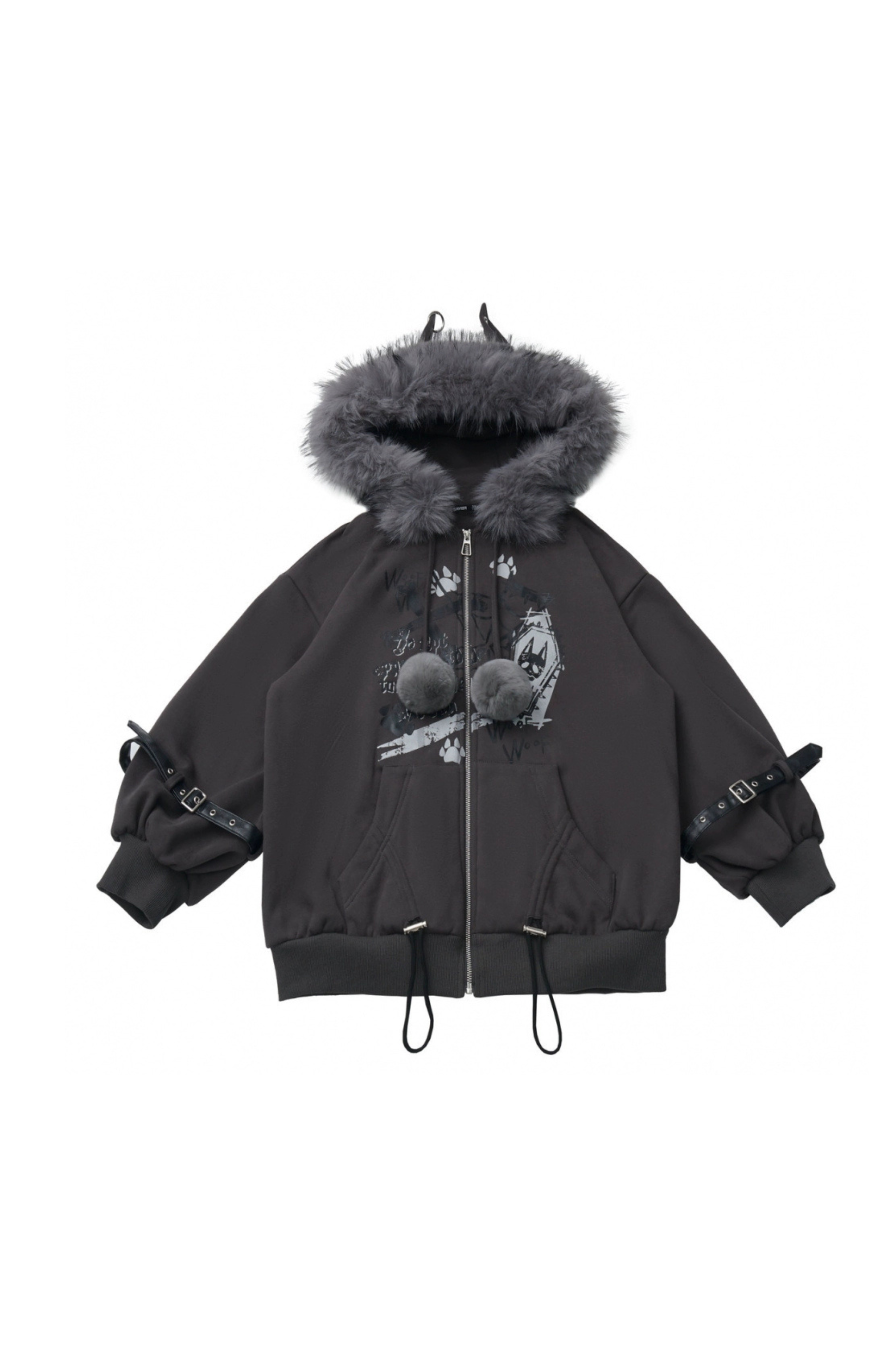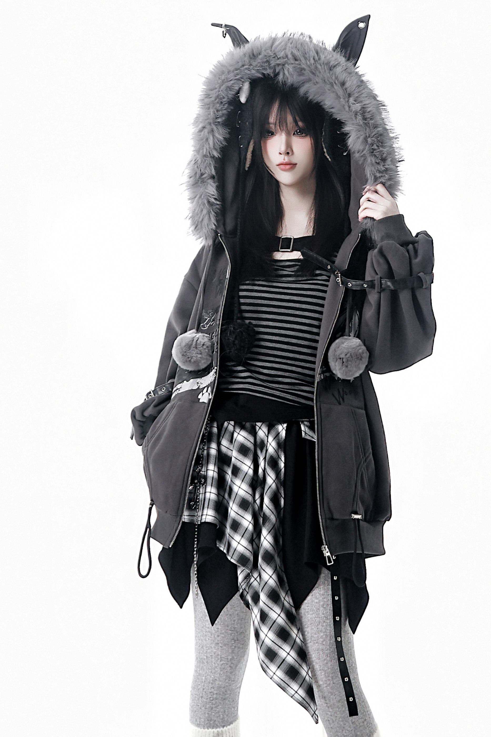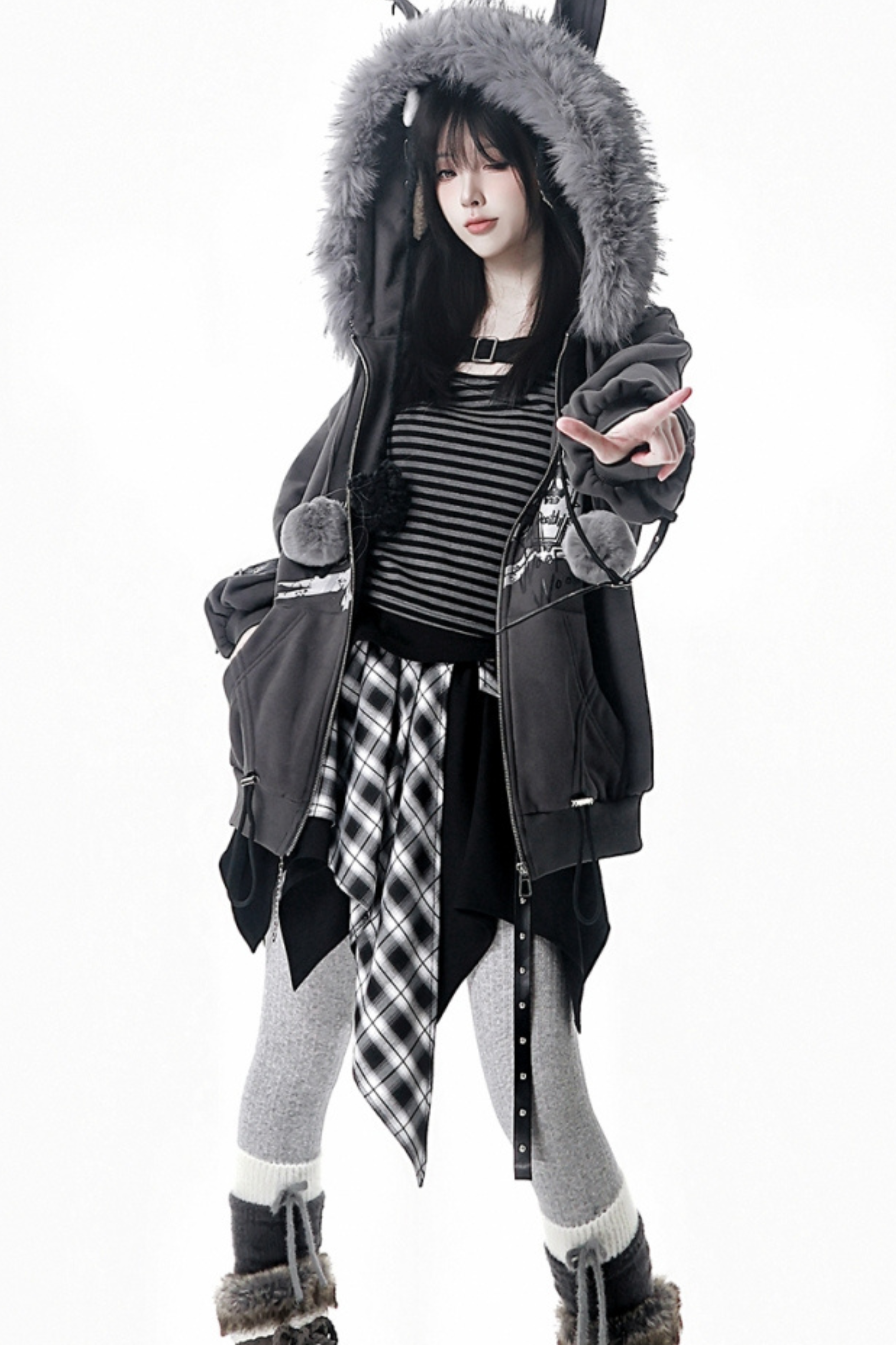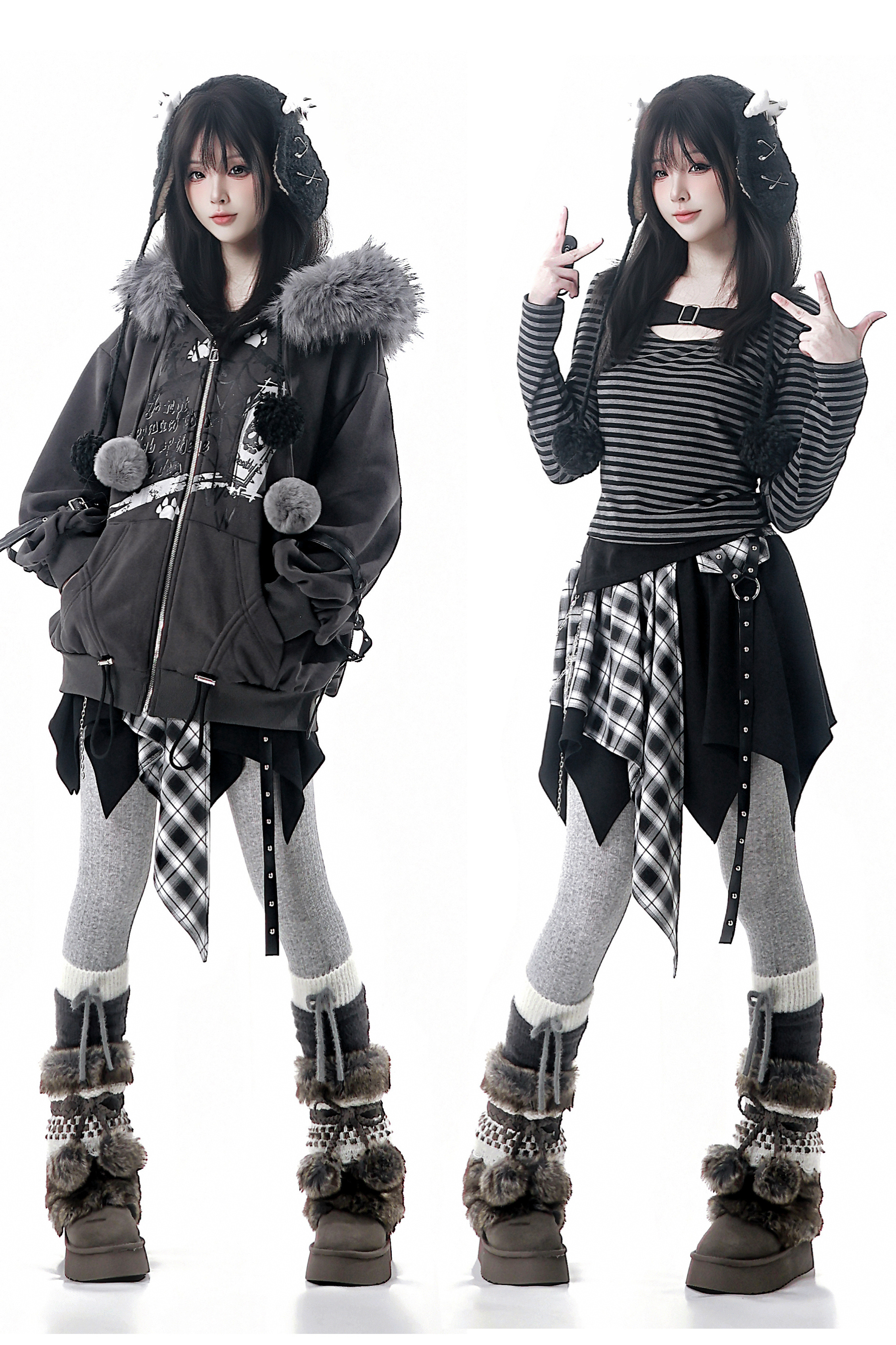 ❤ファーボールファーフードジャケット+トップス+スカート❤