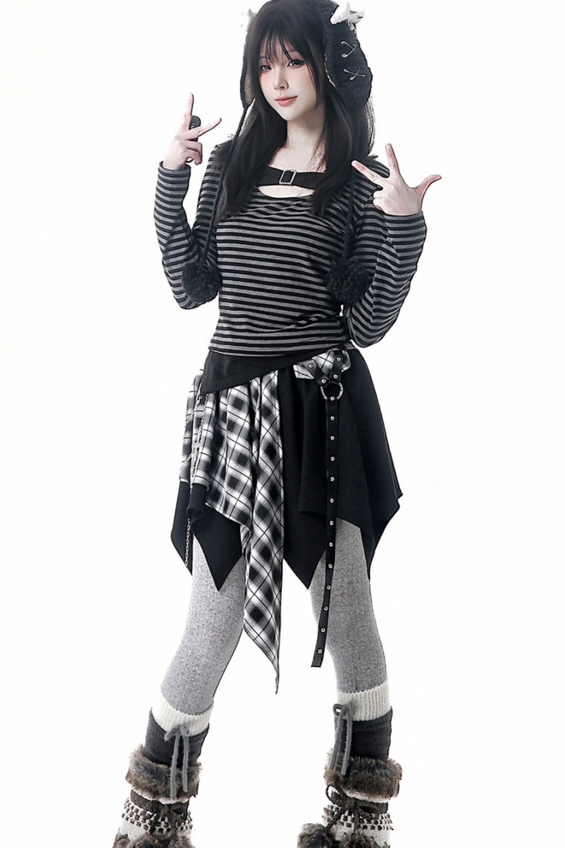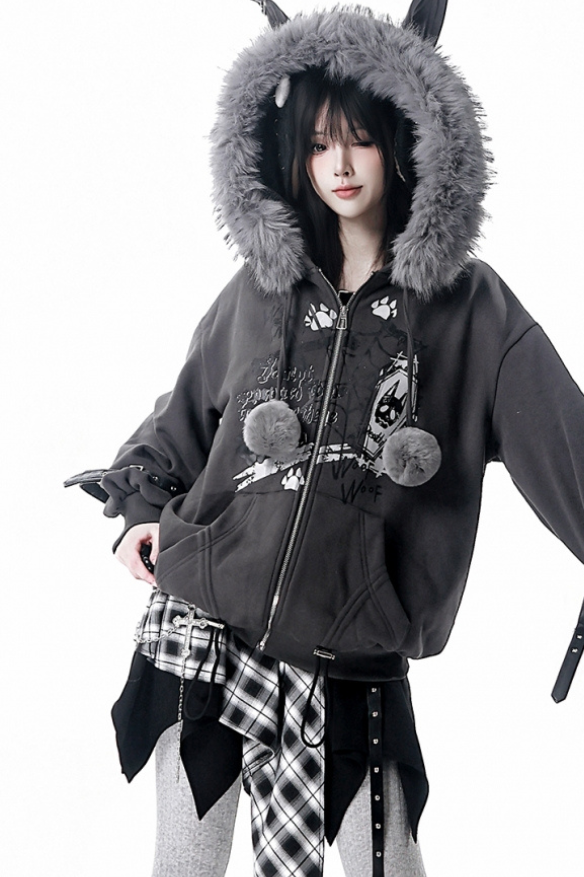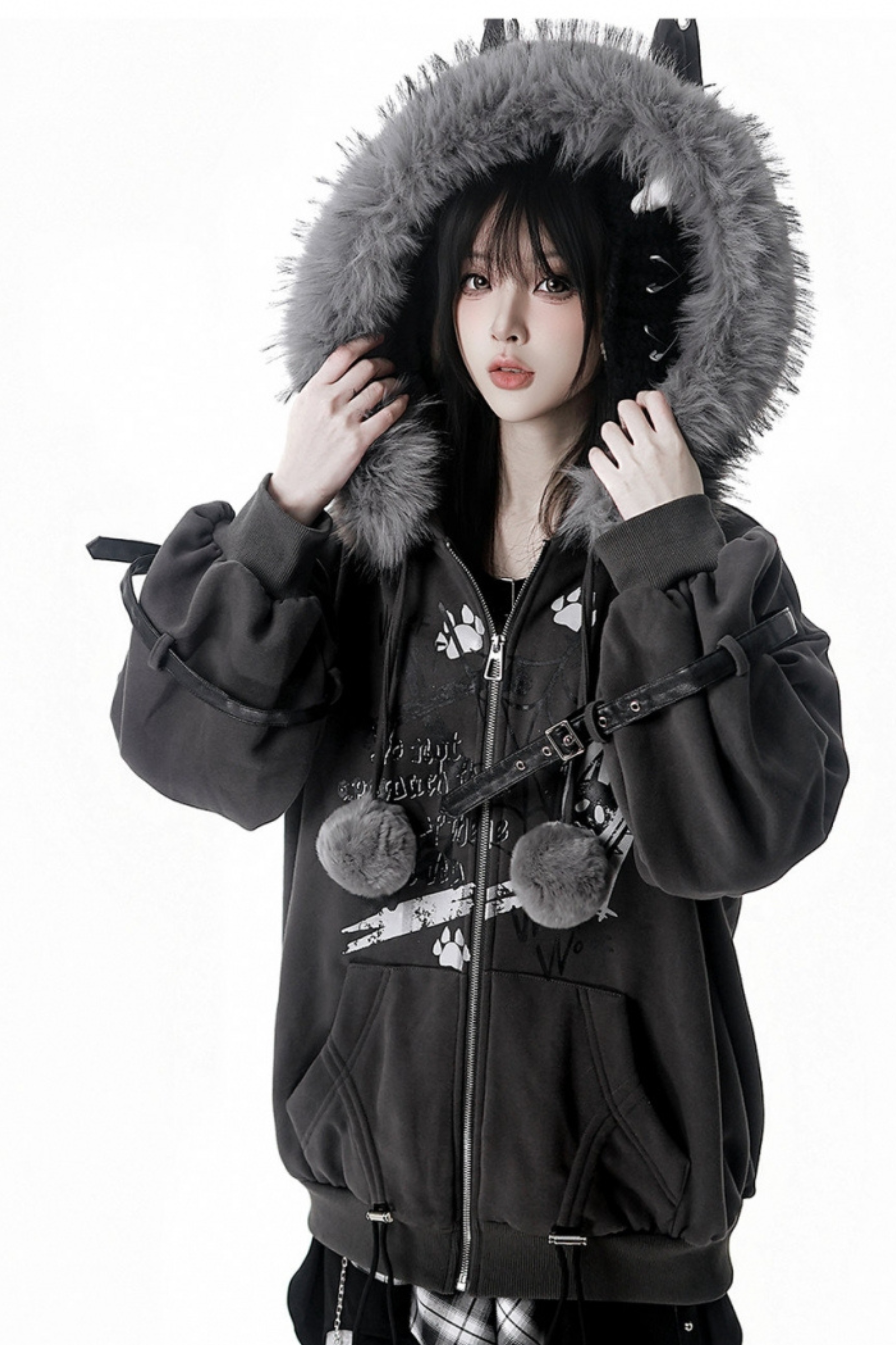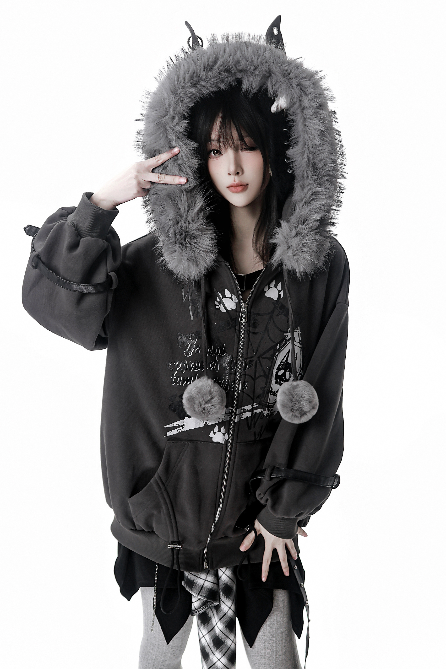 ❤ファーボールファーフードジャケット+トップス+スカート❤