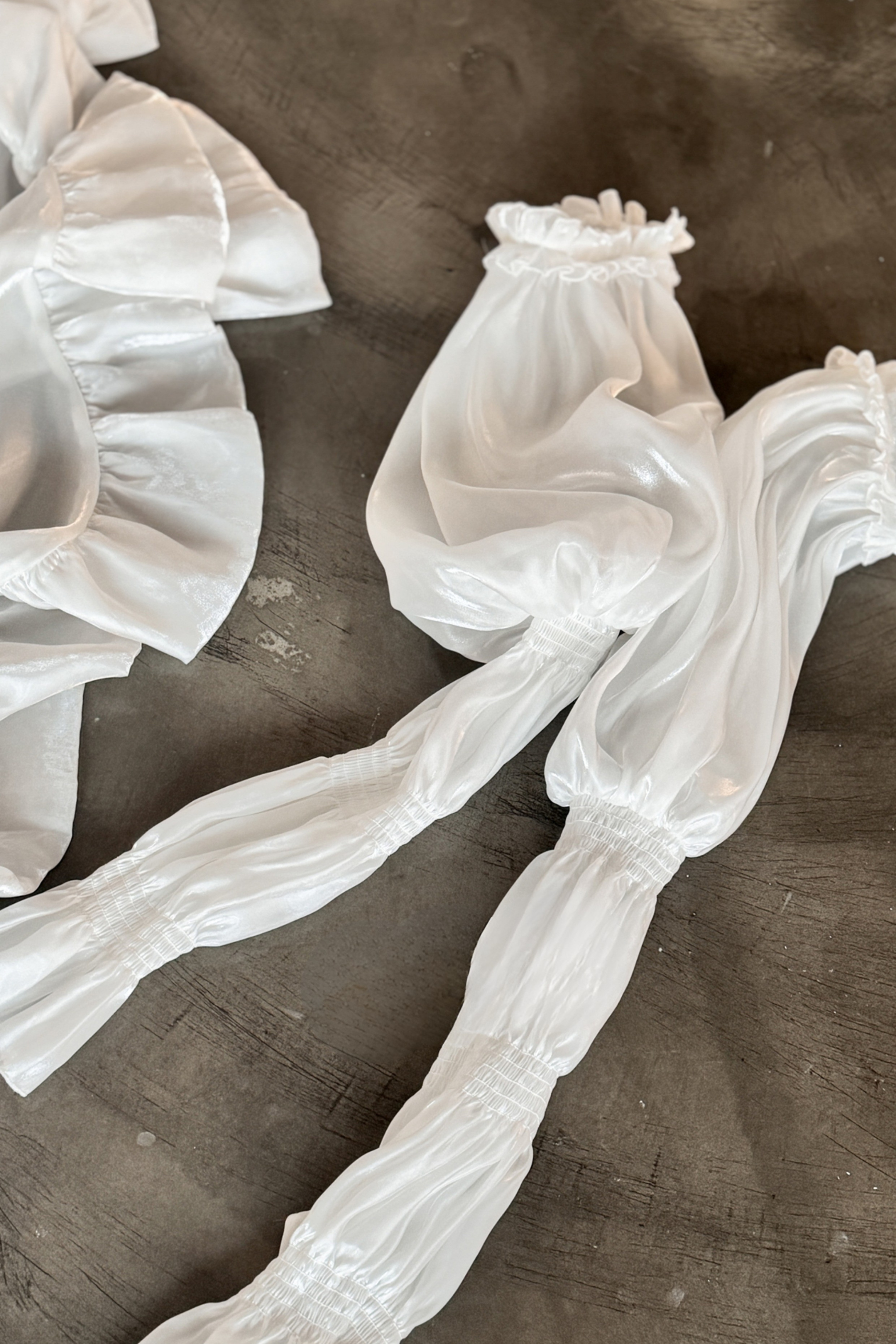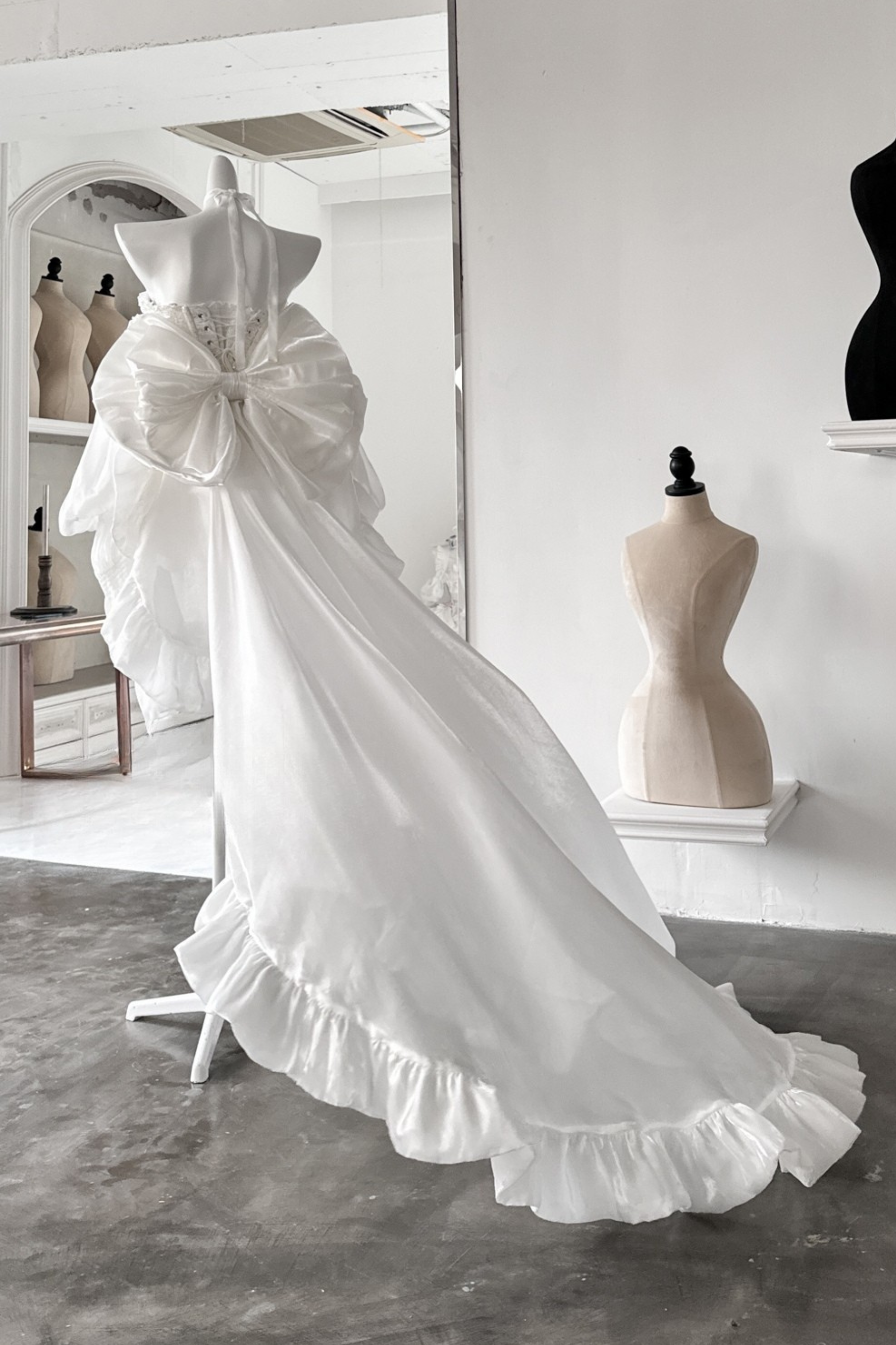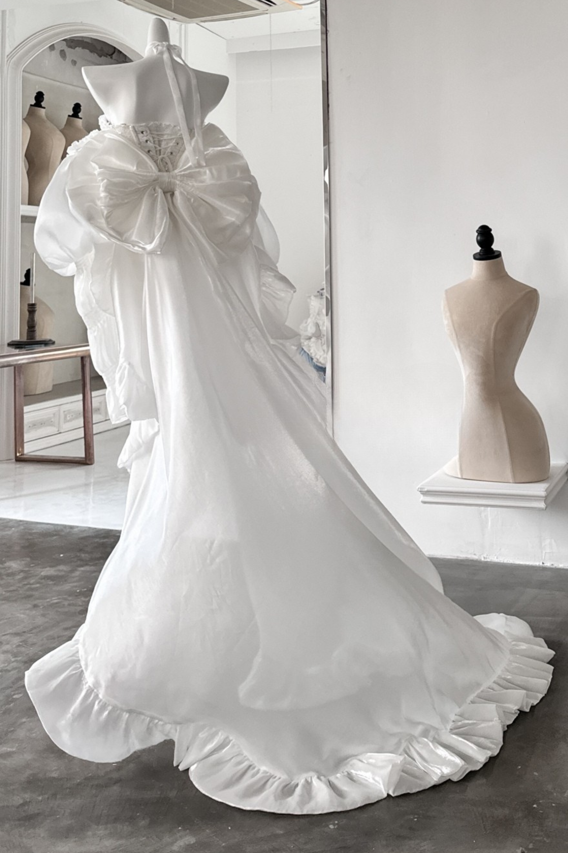 | サイズ | リボン長さ (cm / inch) | リボン幅 (cm / inch) | 後ろ着丈(披尾) (cm / inch) | 袖丈 (cm / inch) |