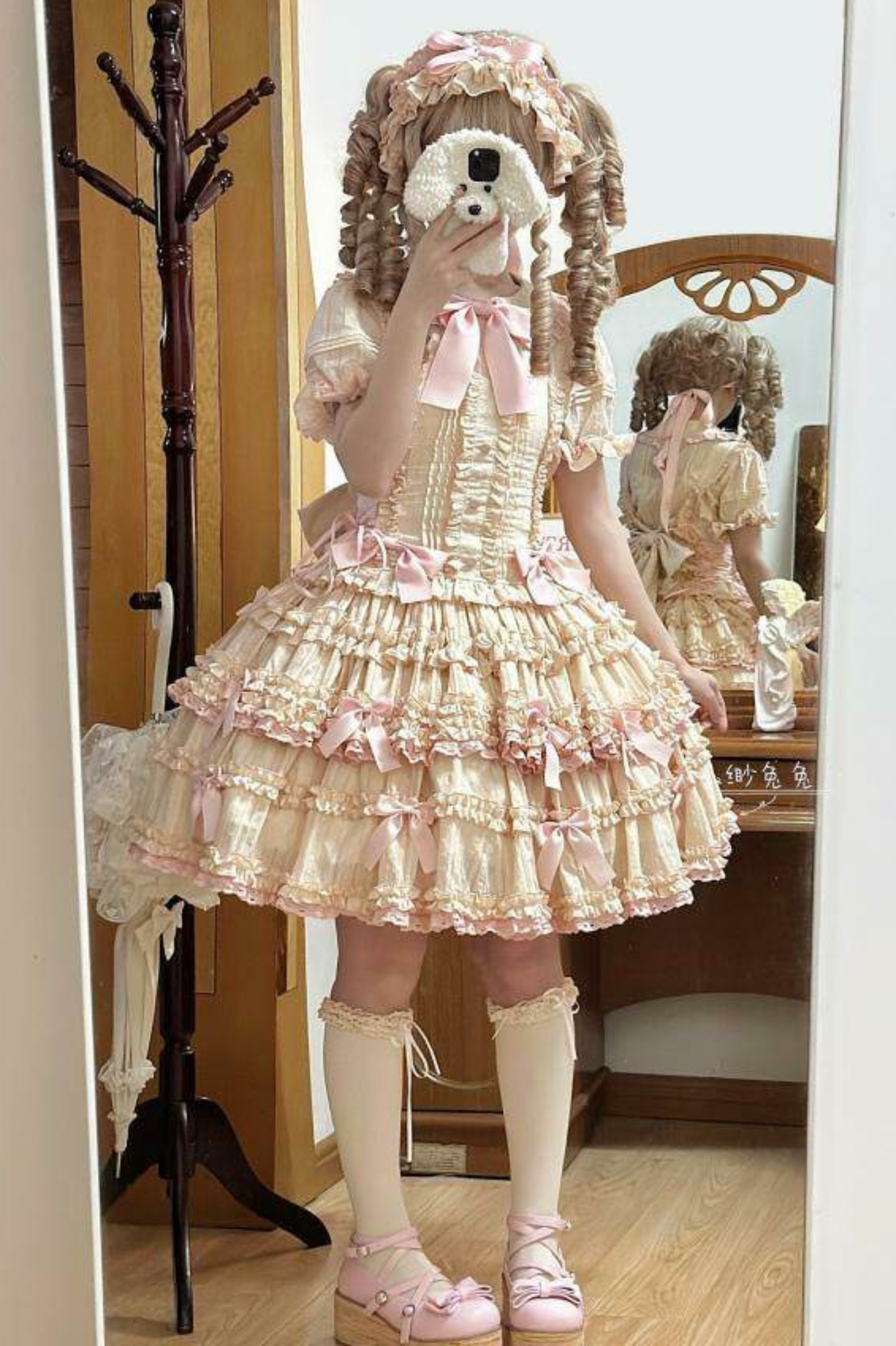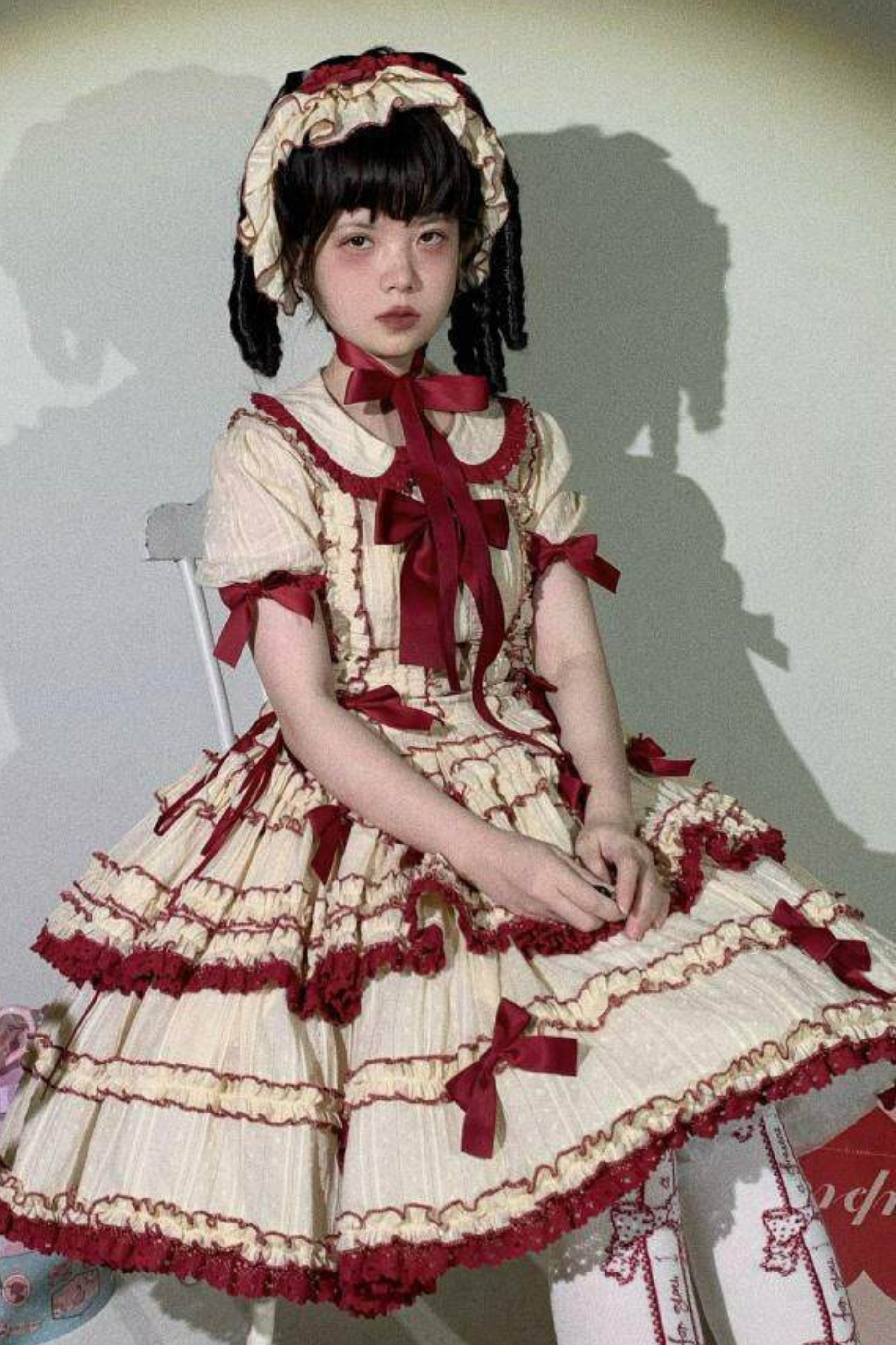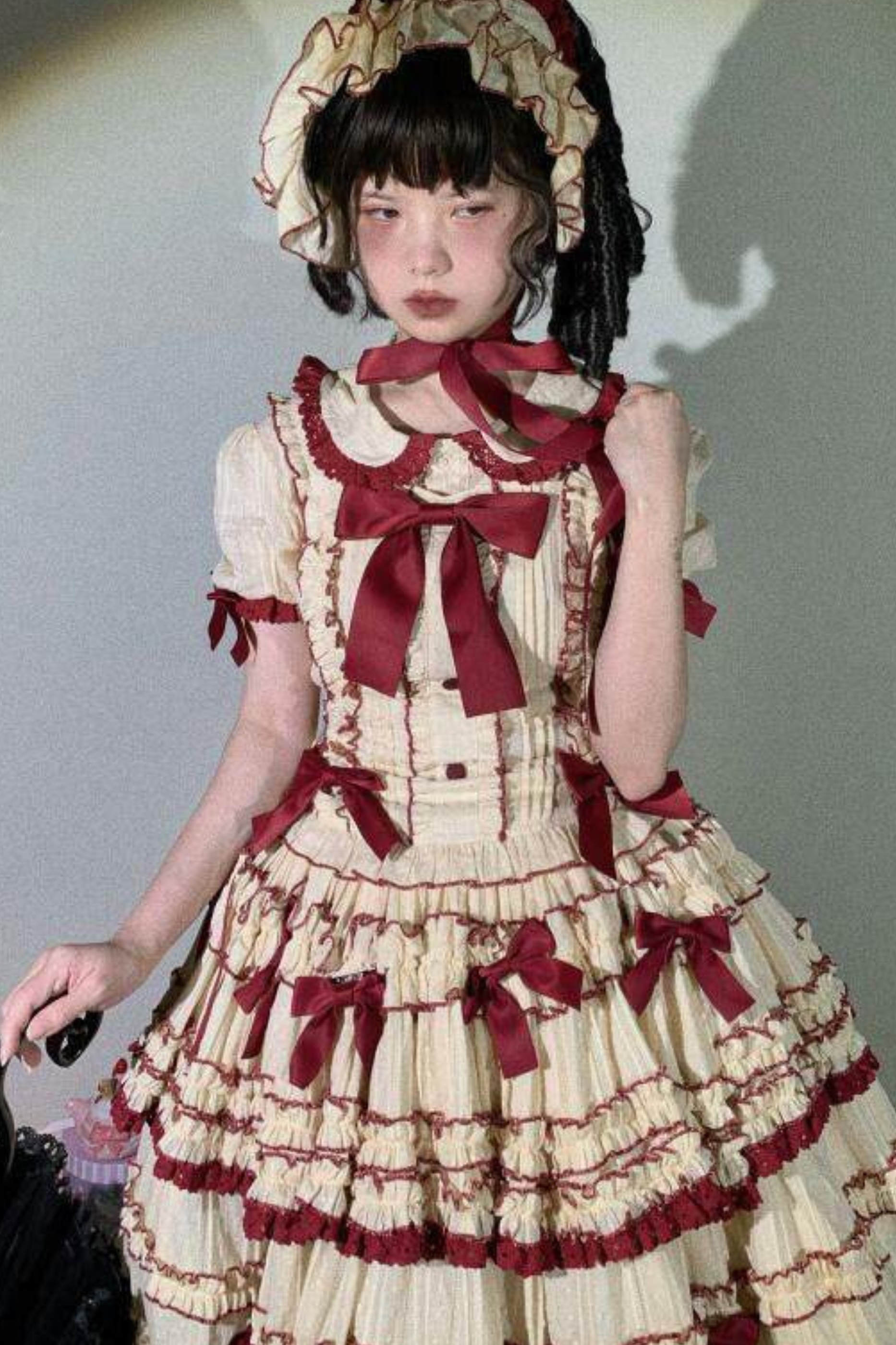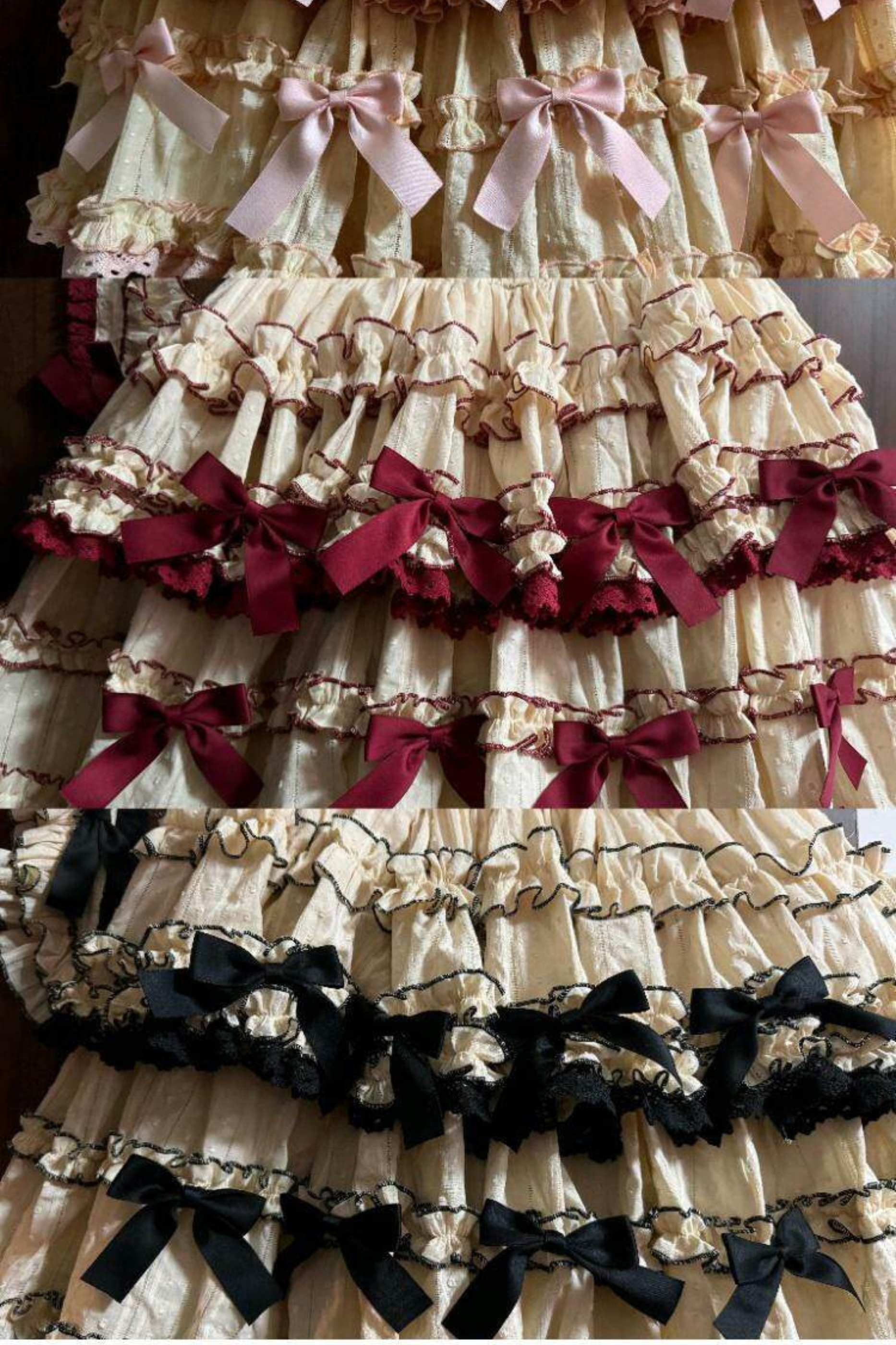 ピュアガールリボンロリータスカート+インナー+ベスト+ヘアバンド+スリーブ