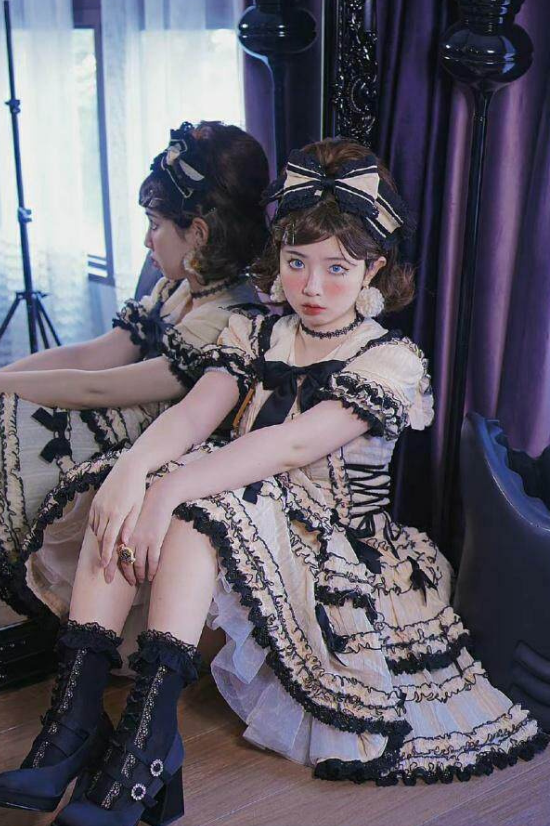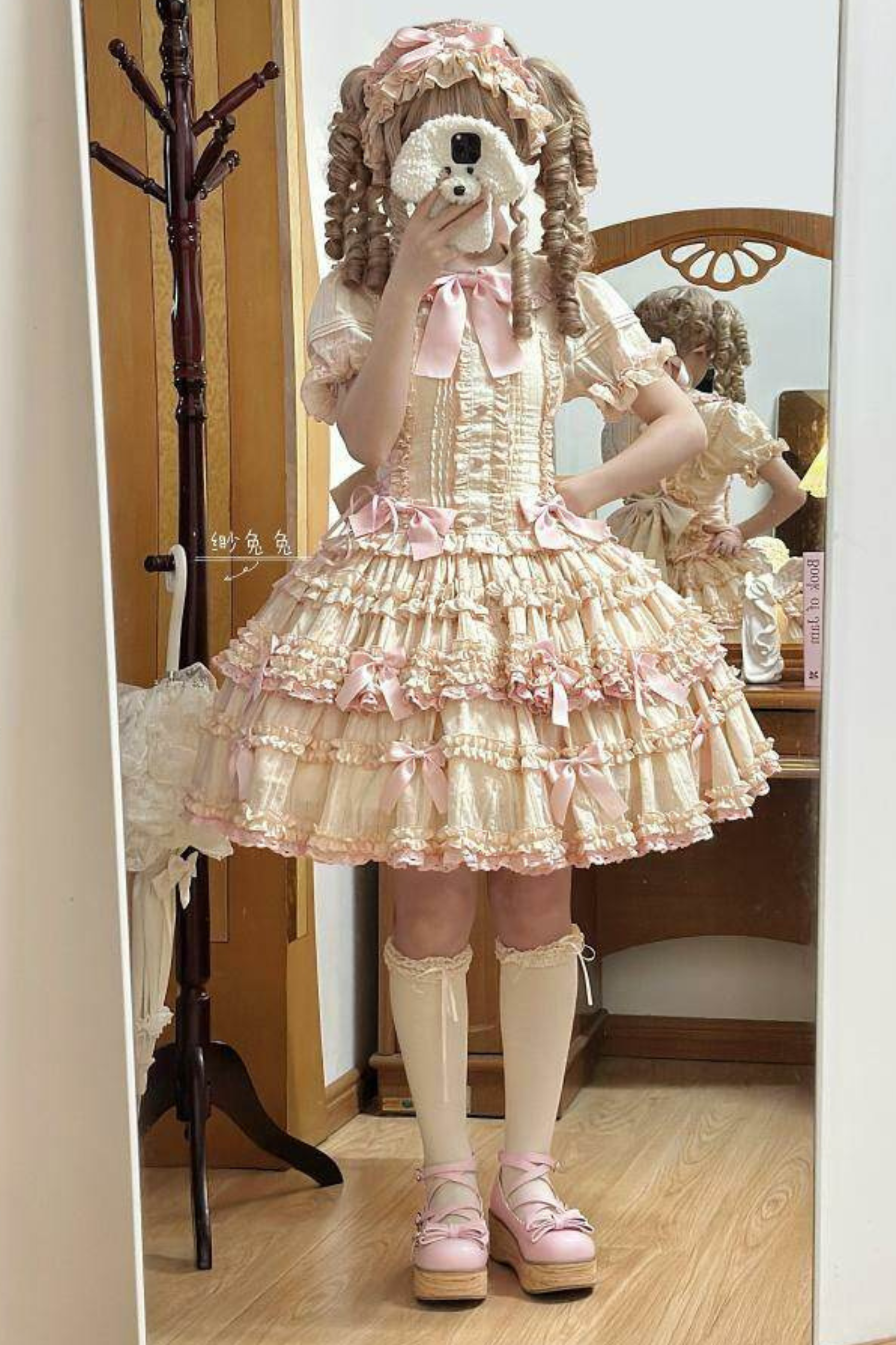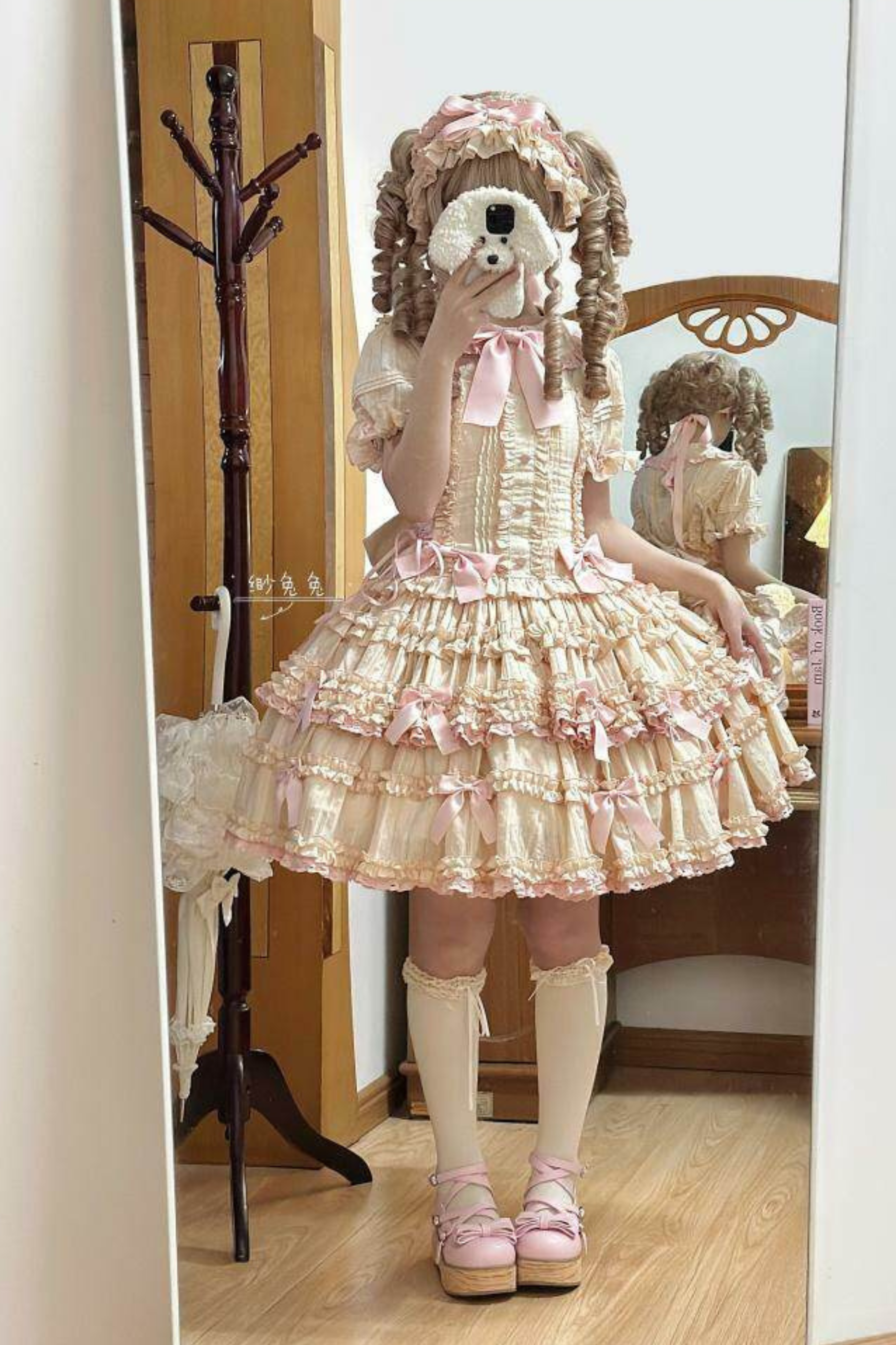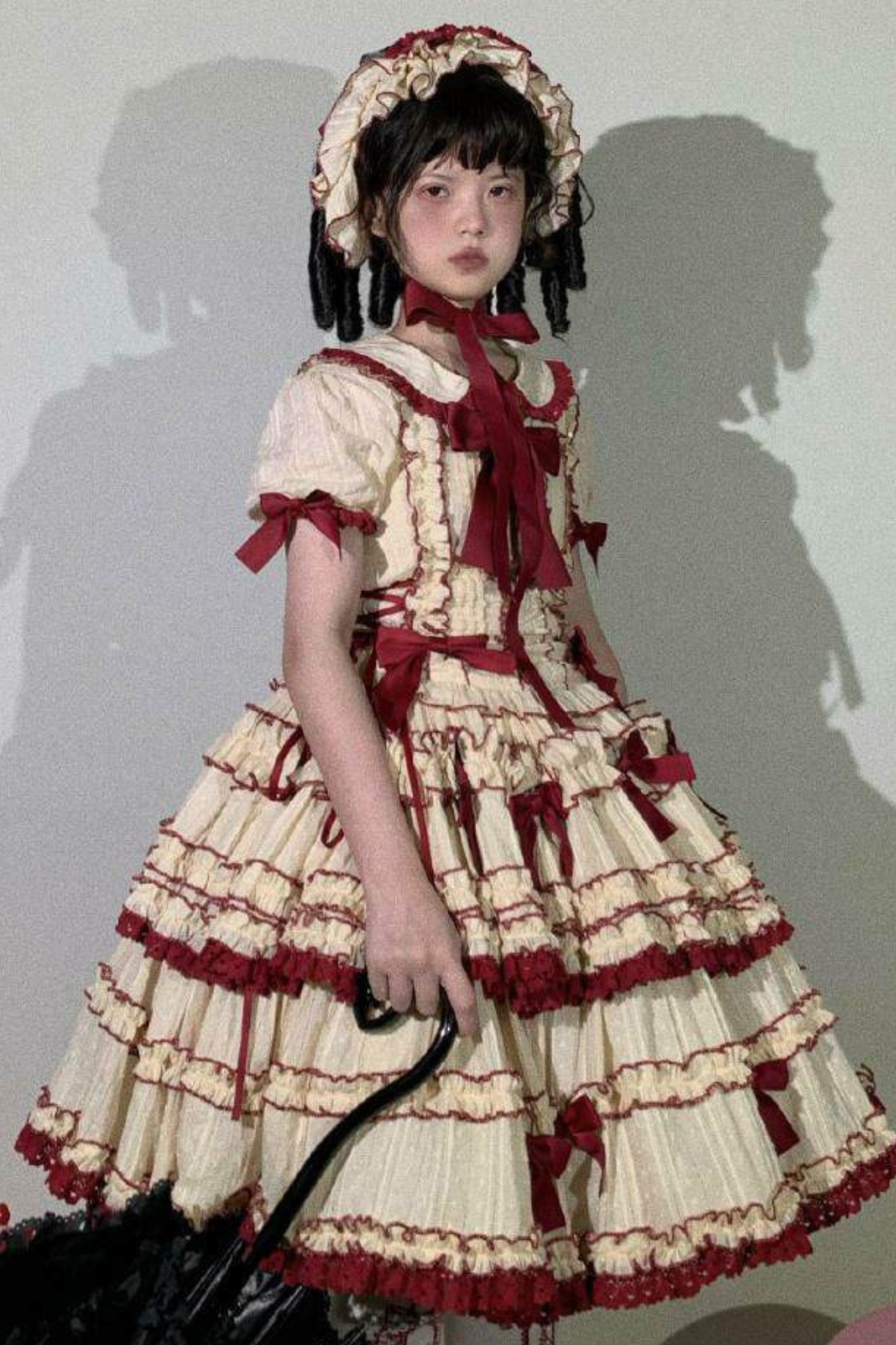 ピュアガールリボンロリータスカート+インナー+ベスト+ヘアバンド+スリーブ