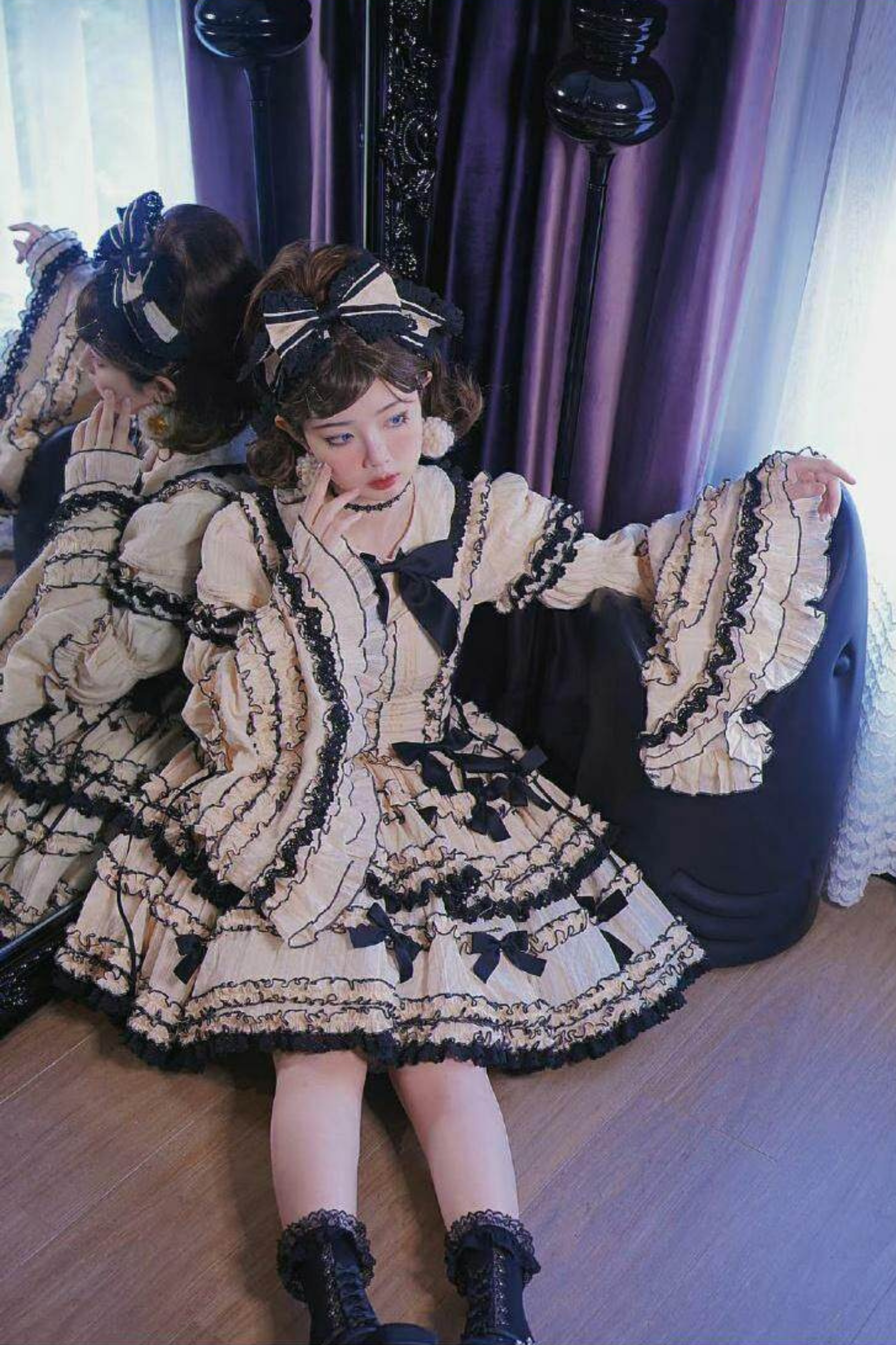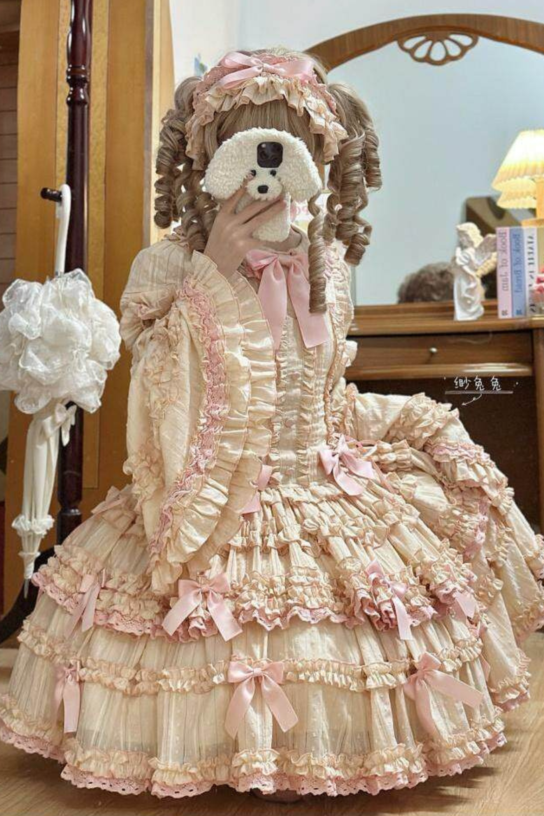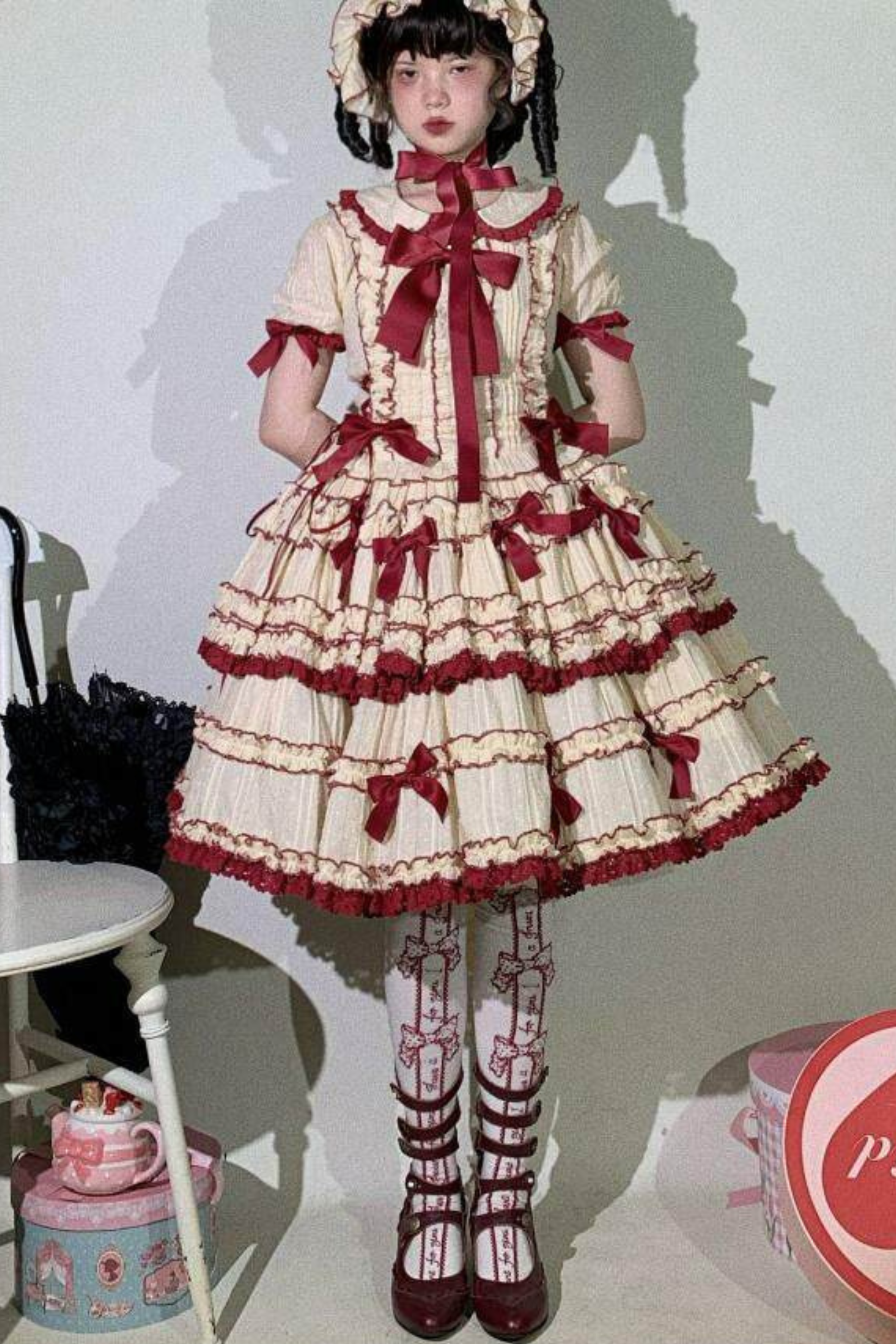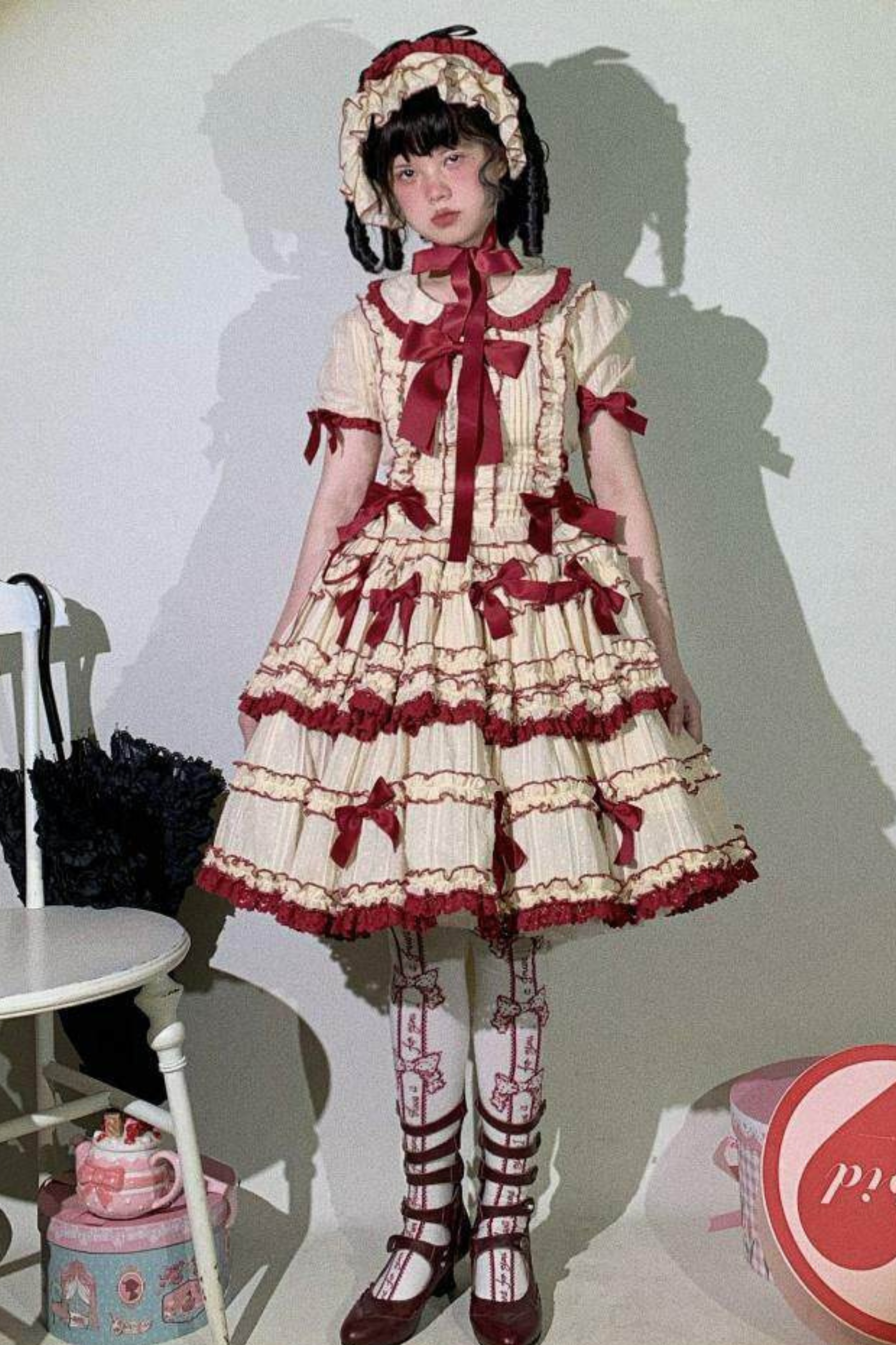 ピュアガールリボンロリータスカート+インナー+ベスト+ヘアバンド+スリーブ
