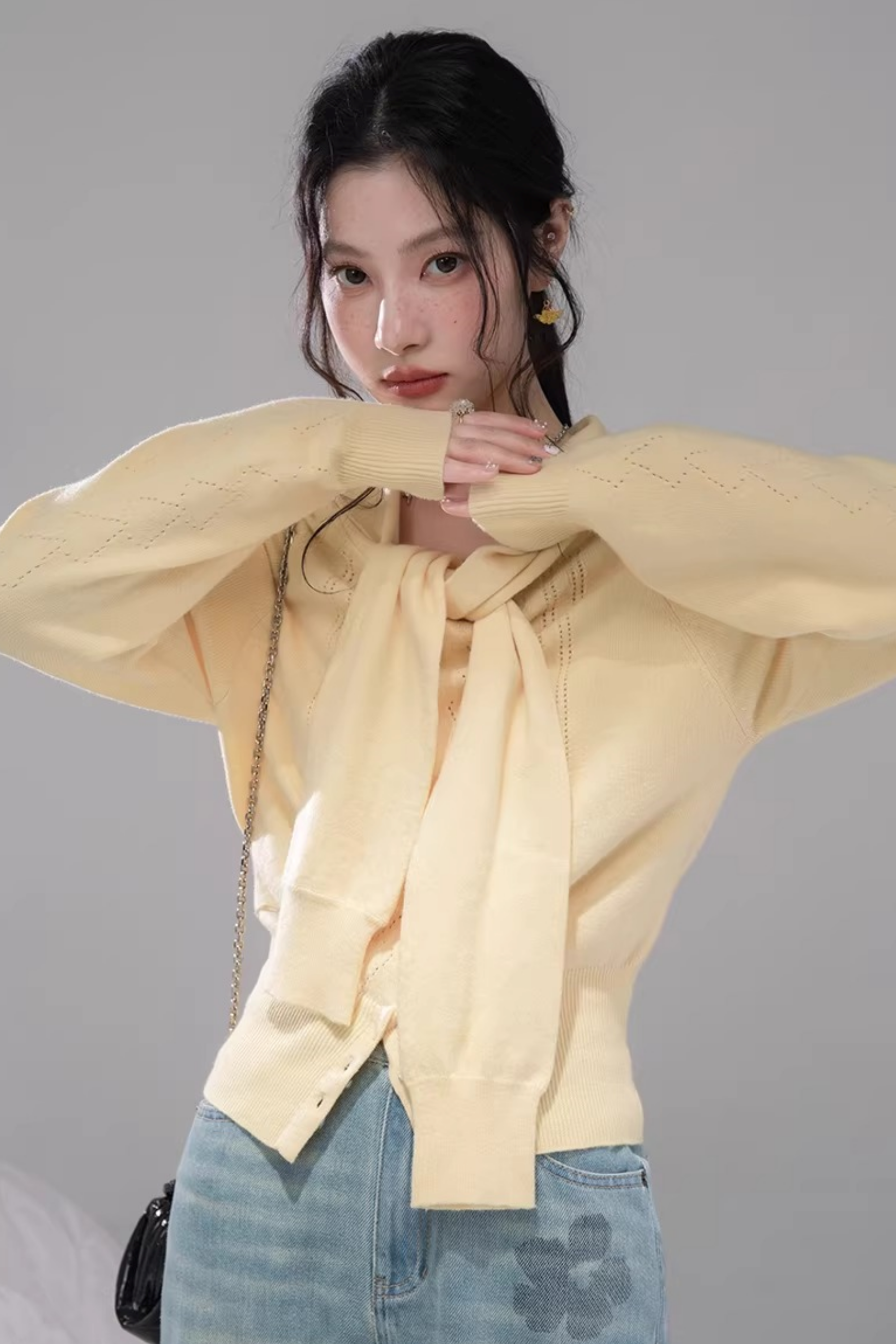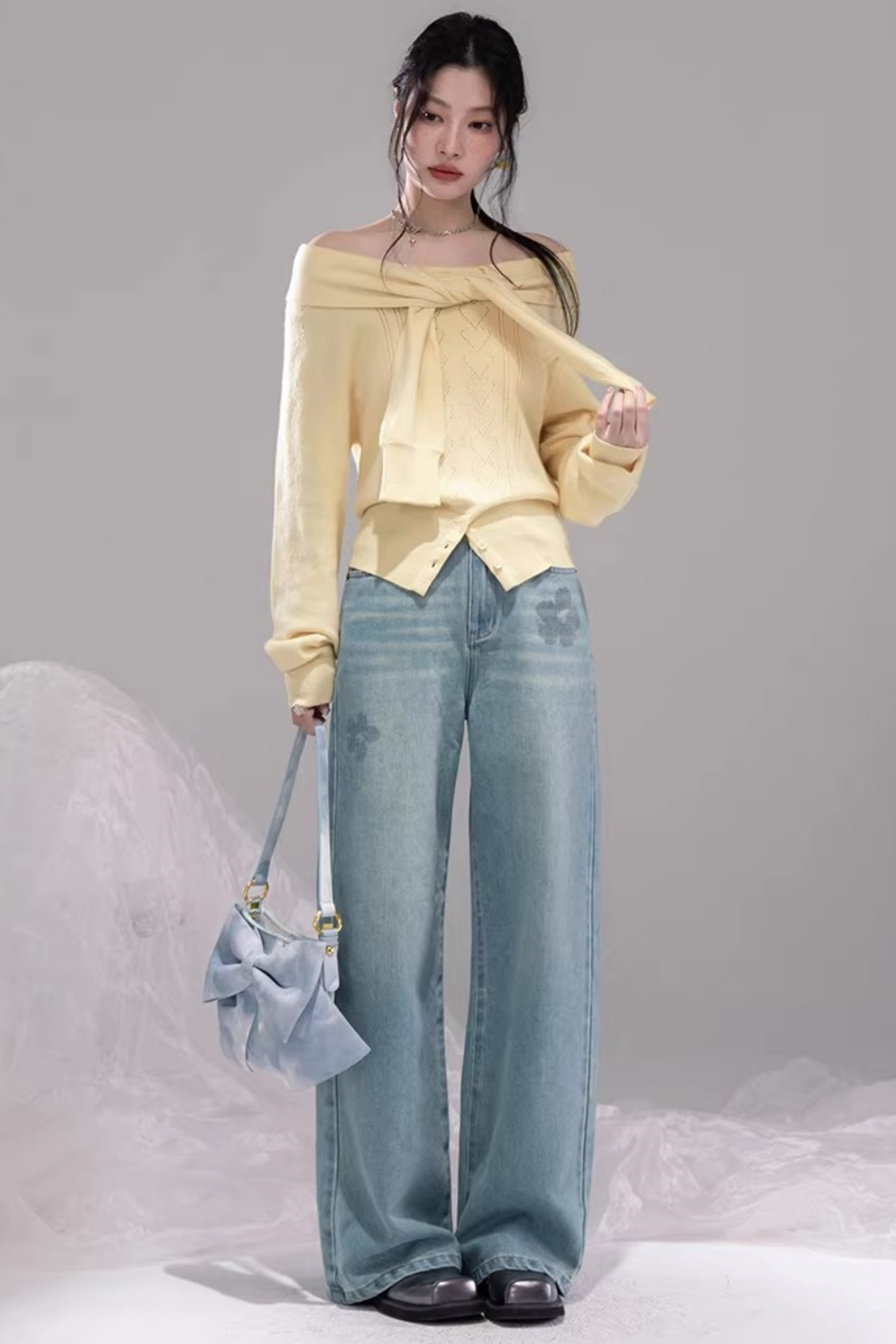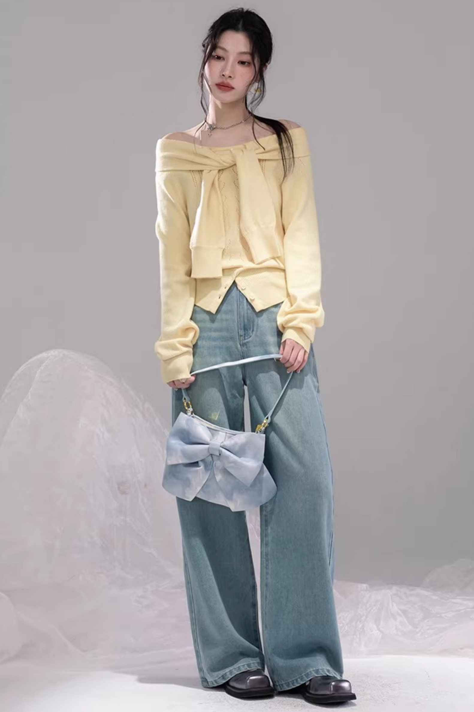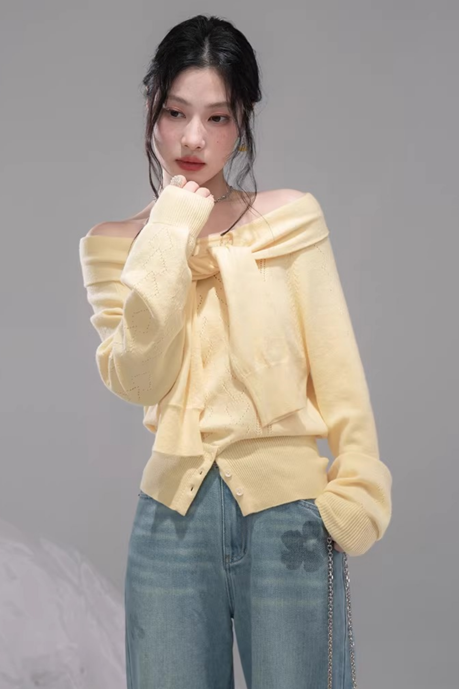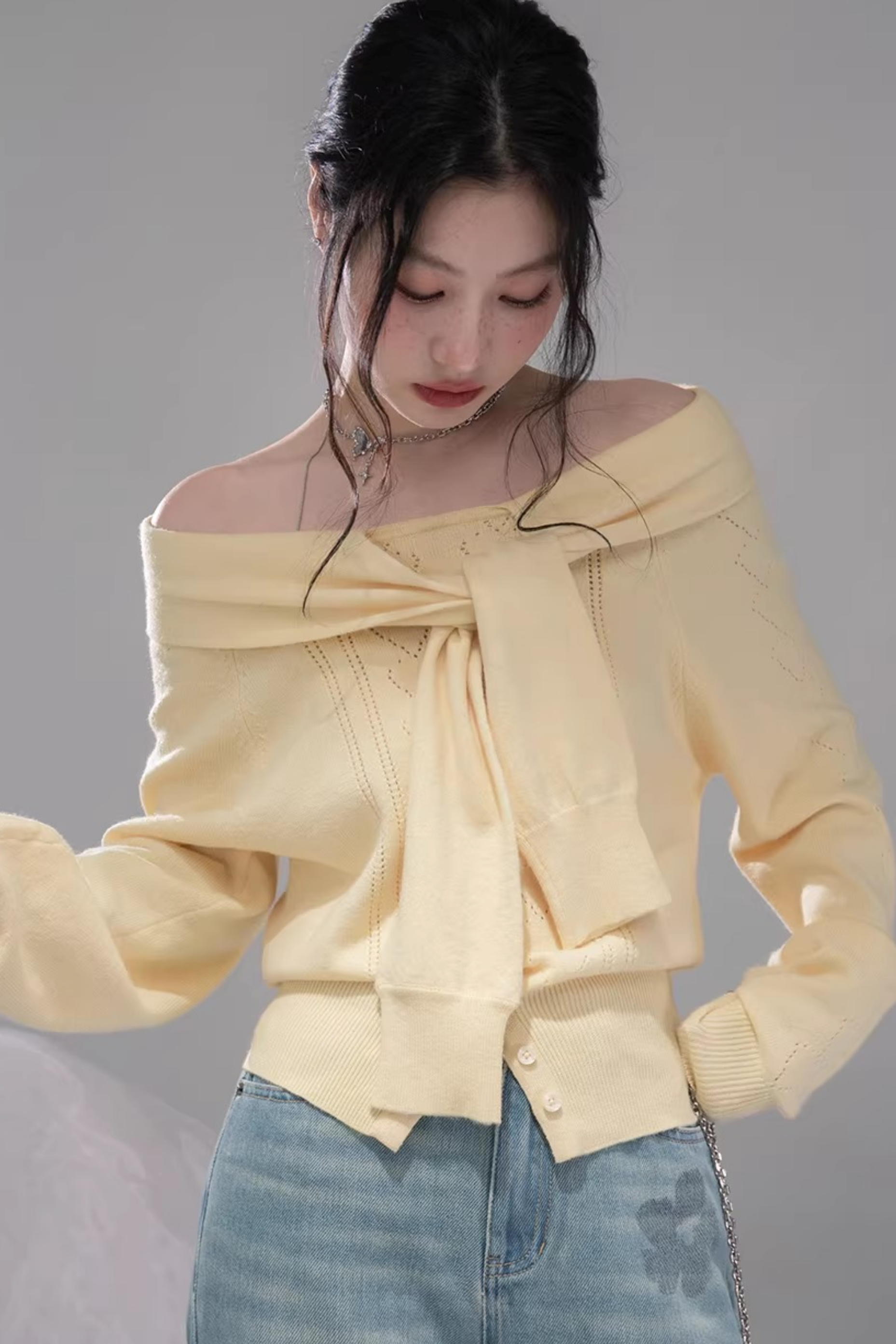 ミルキーイエローワンラインショルダートップス
