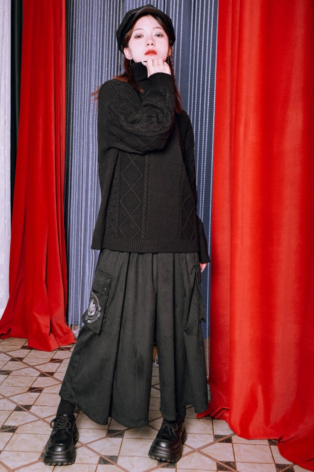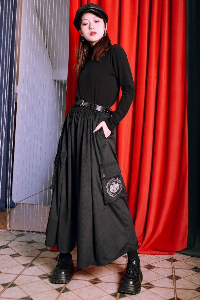 ブラックコーデュロイワイドパンツ
