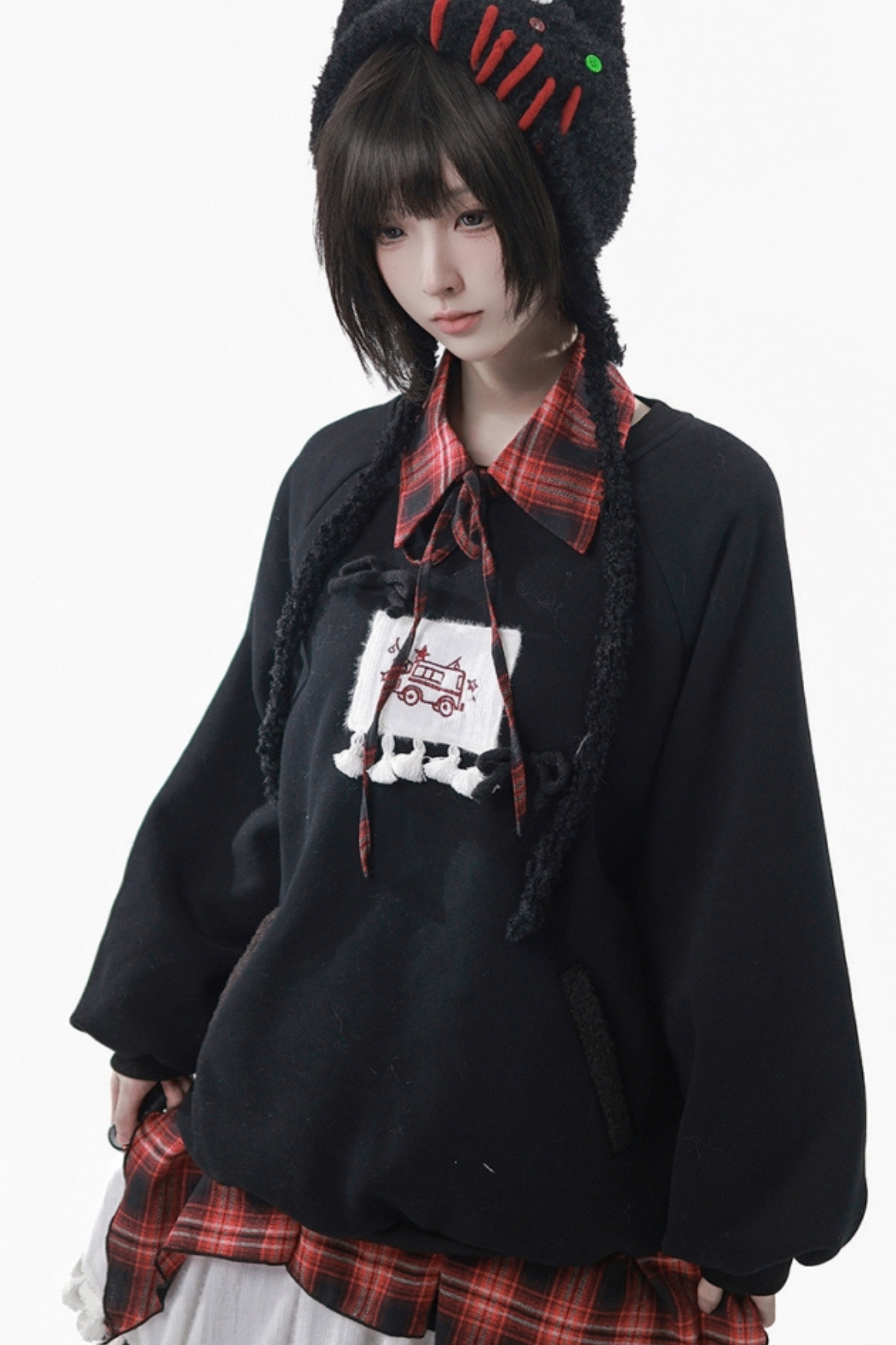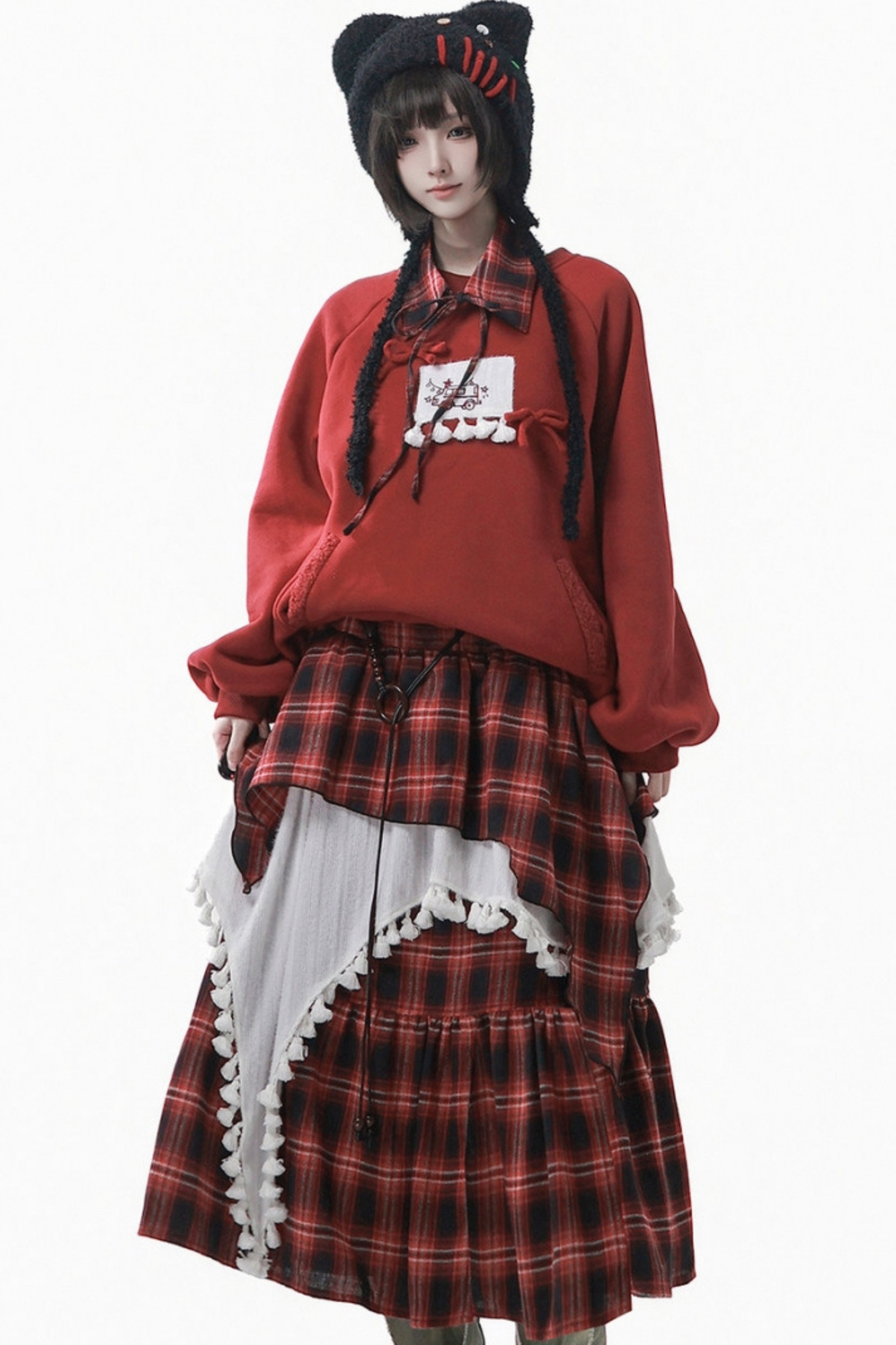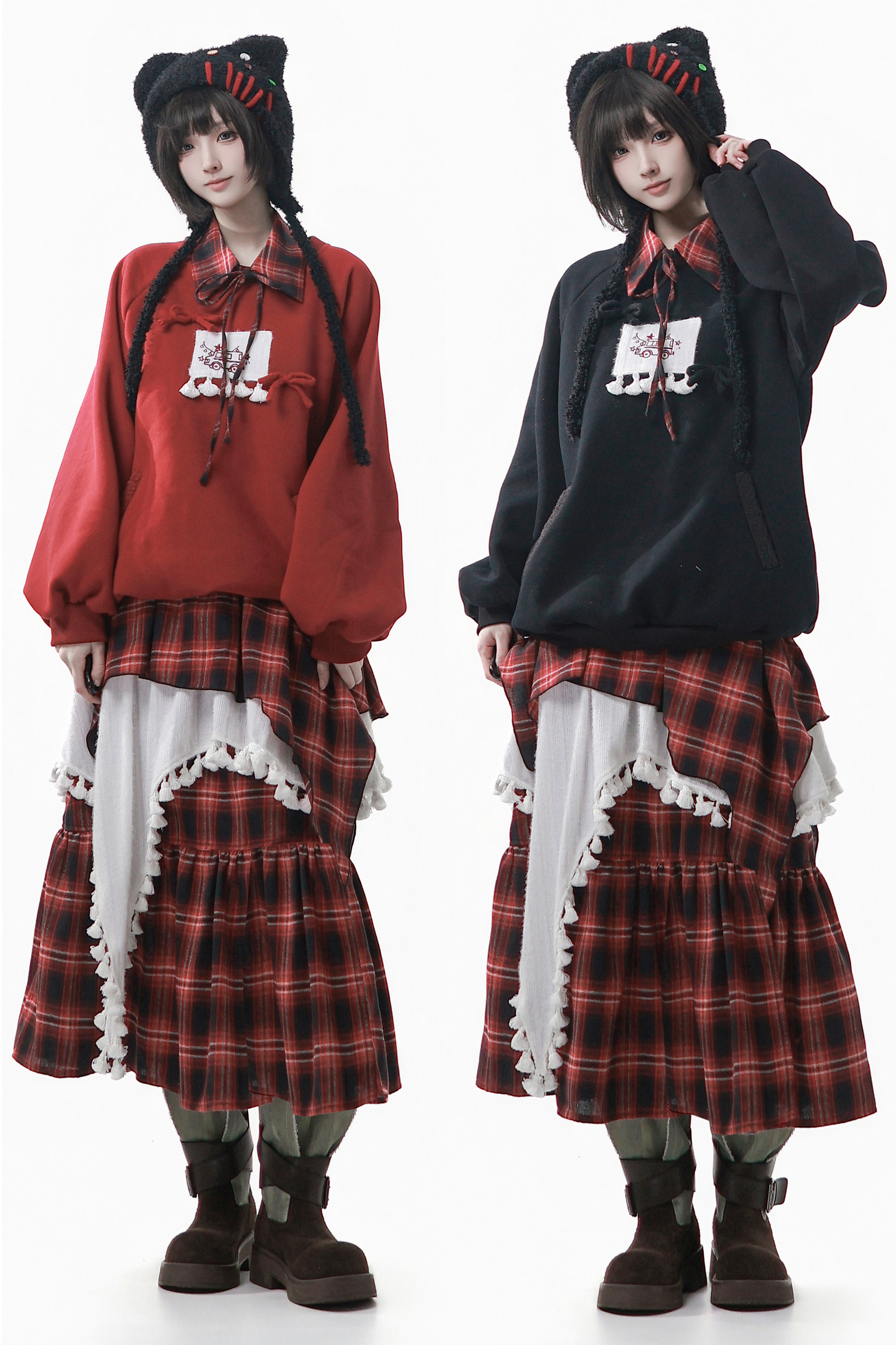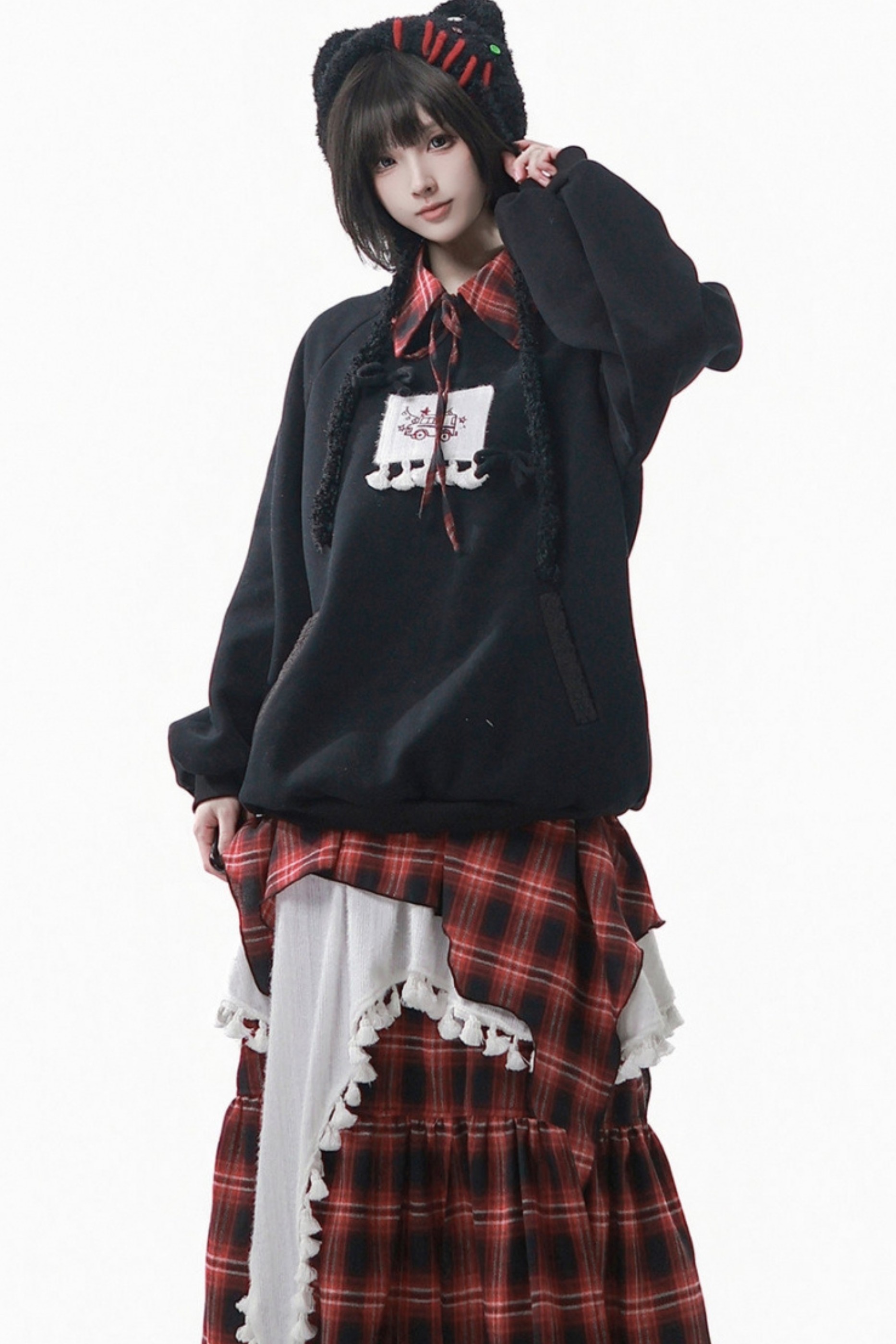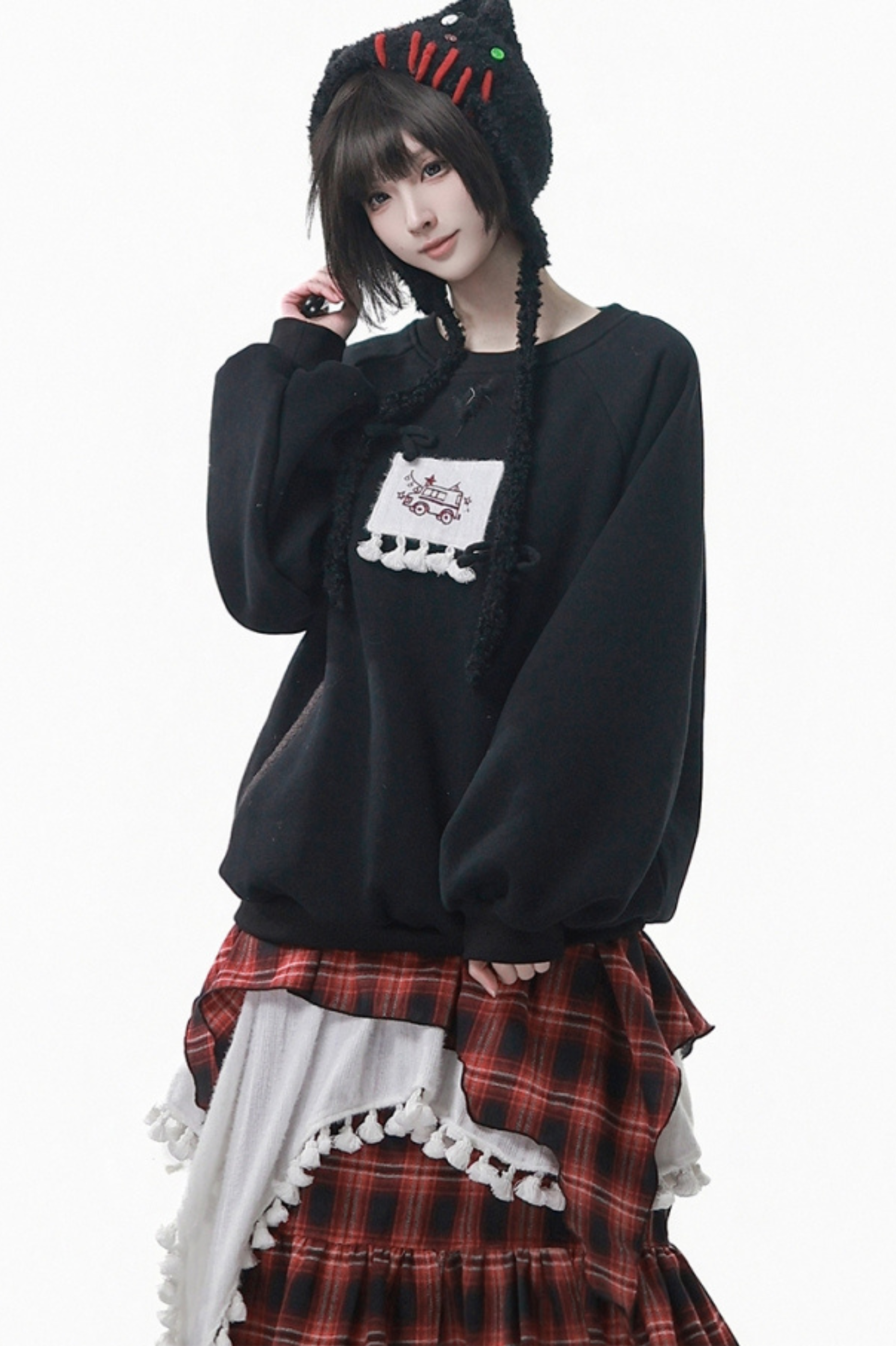 ルーズフリーススウェット+チェックスカート