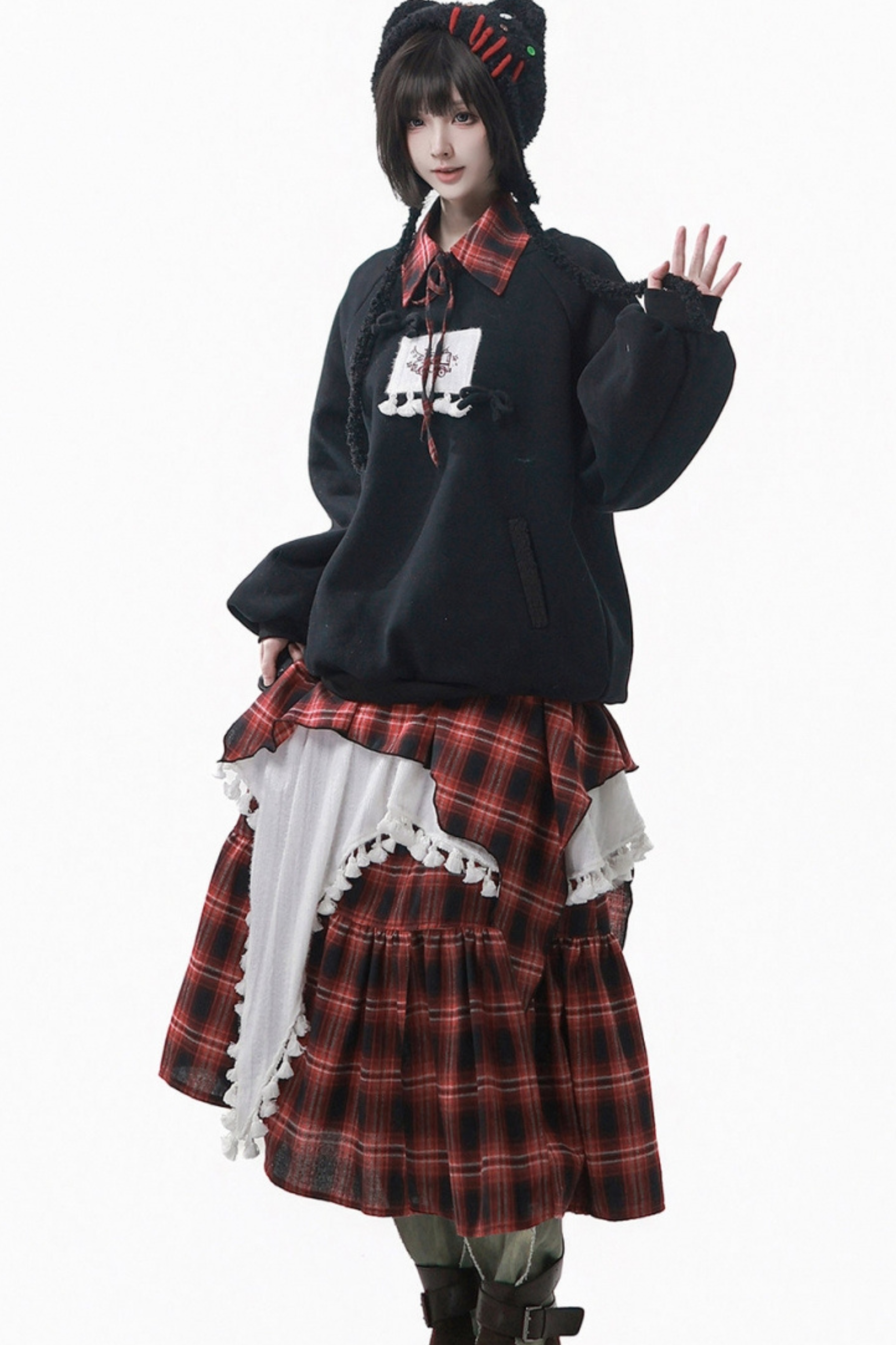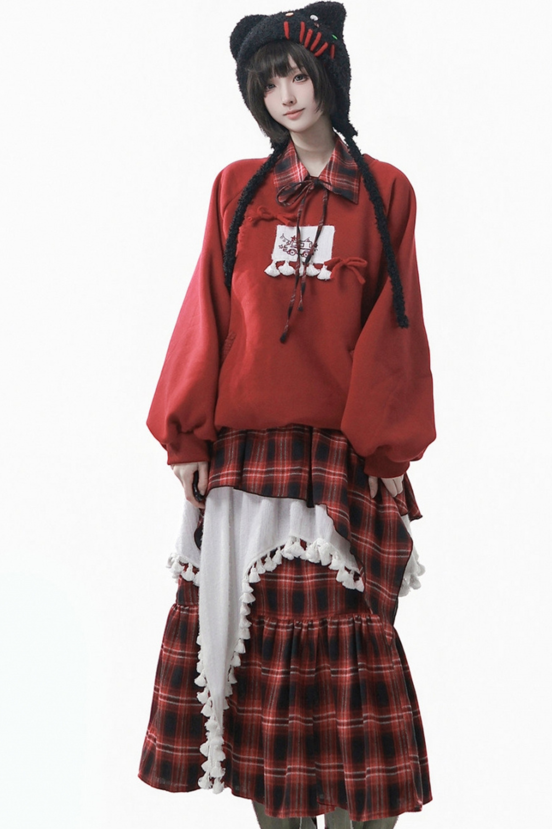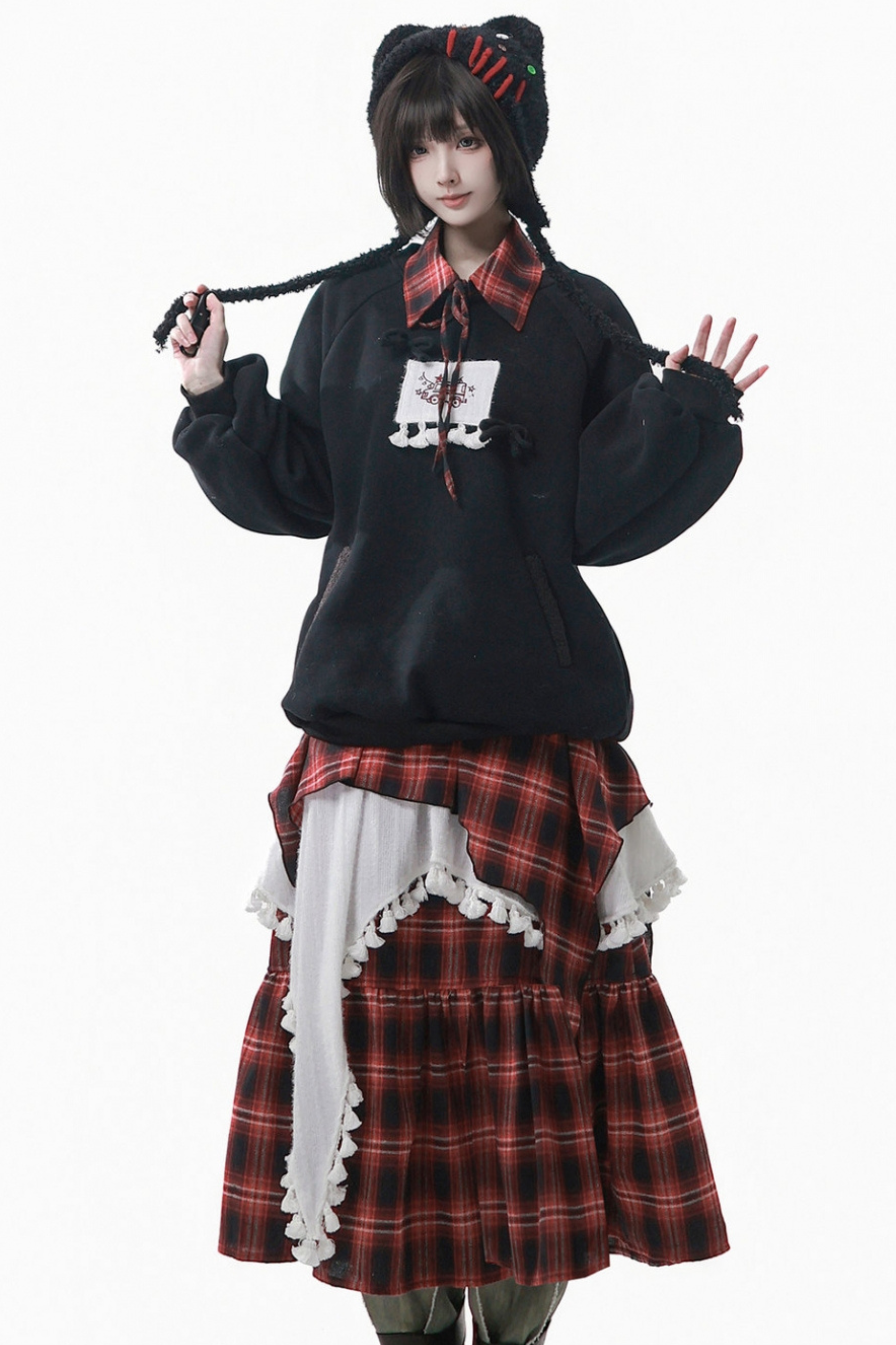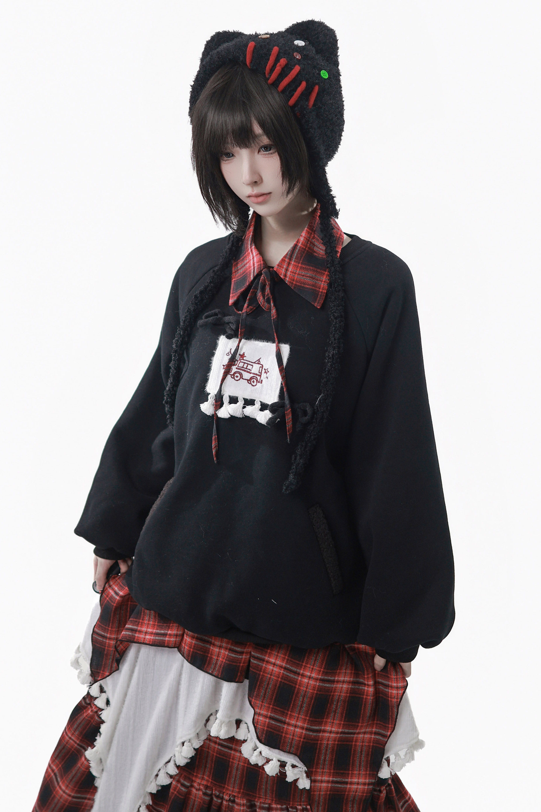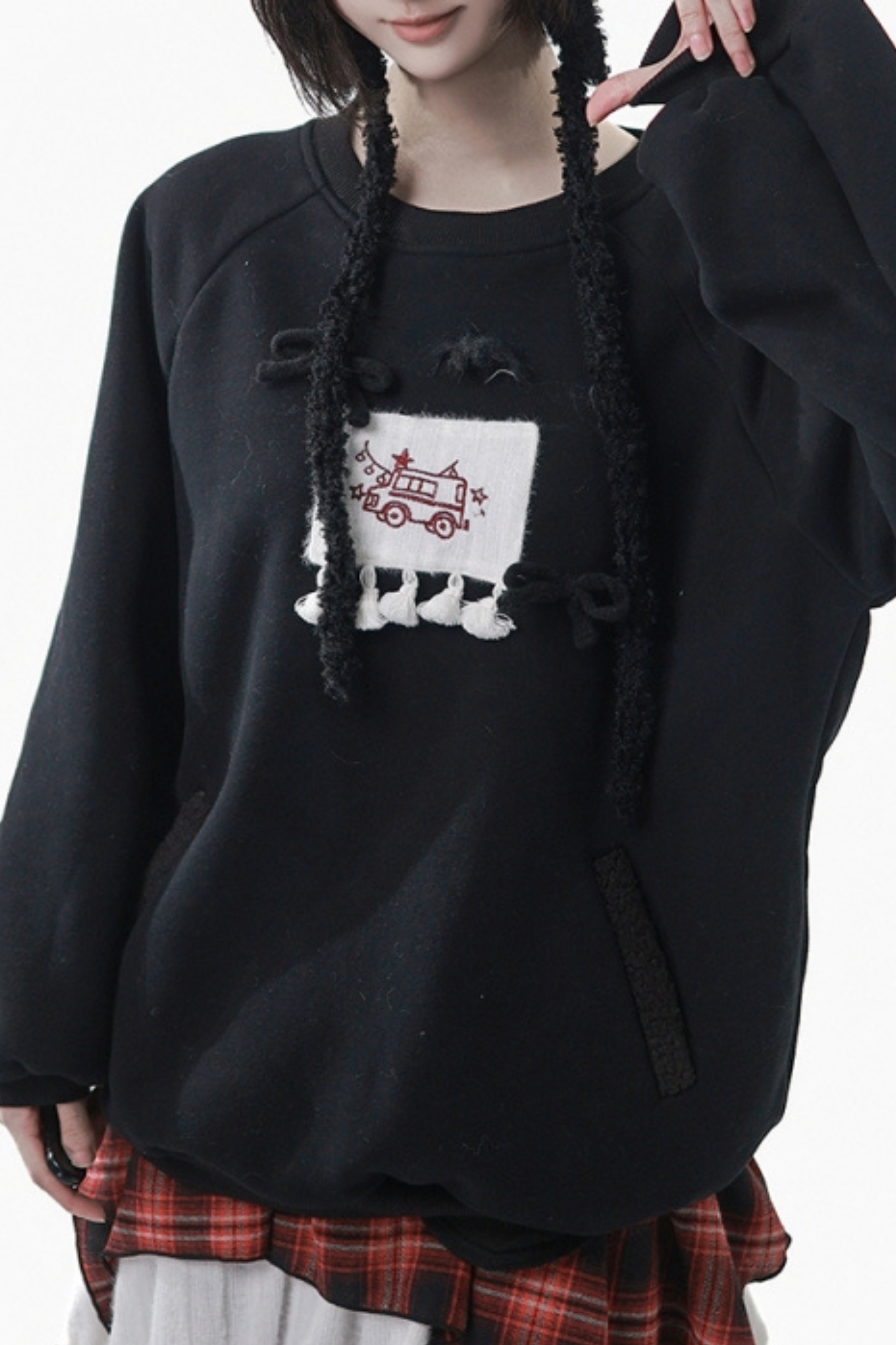 ルーズフリーススウェット+チェックスカート