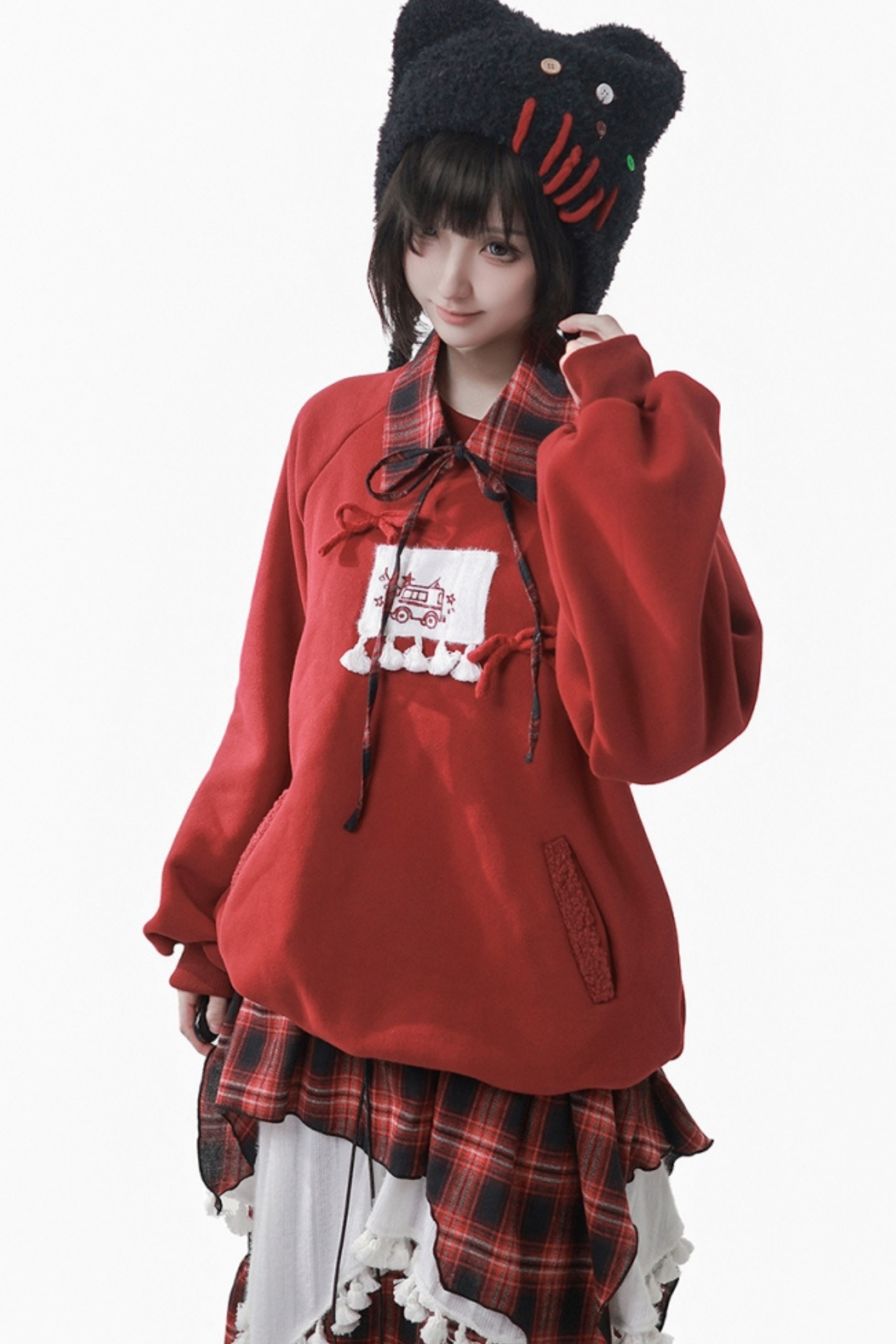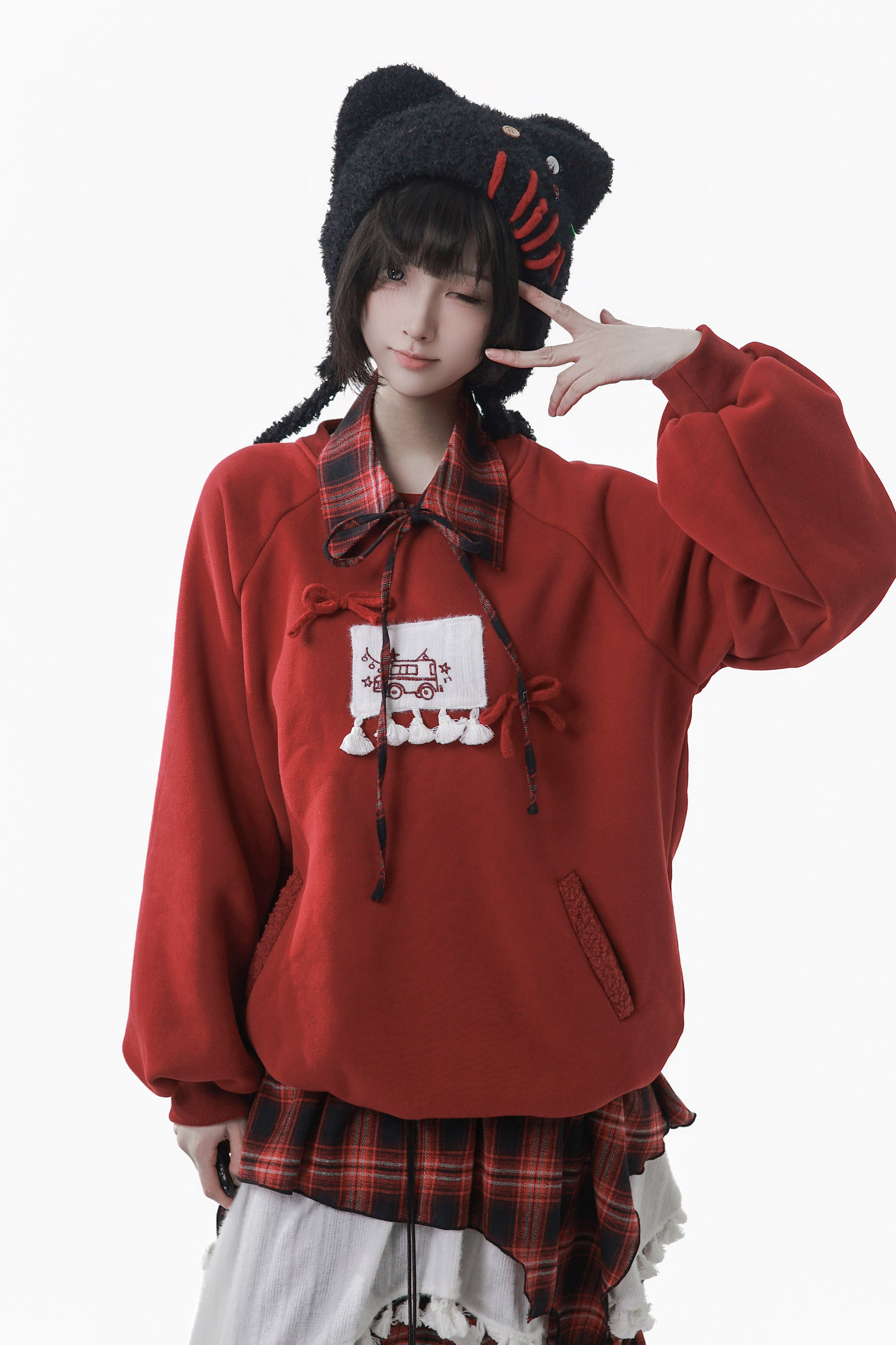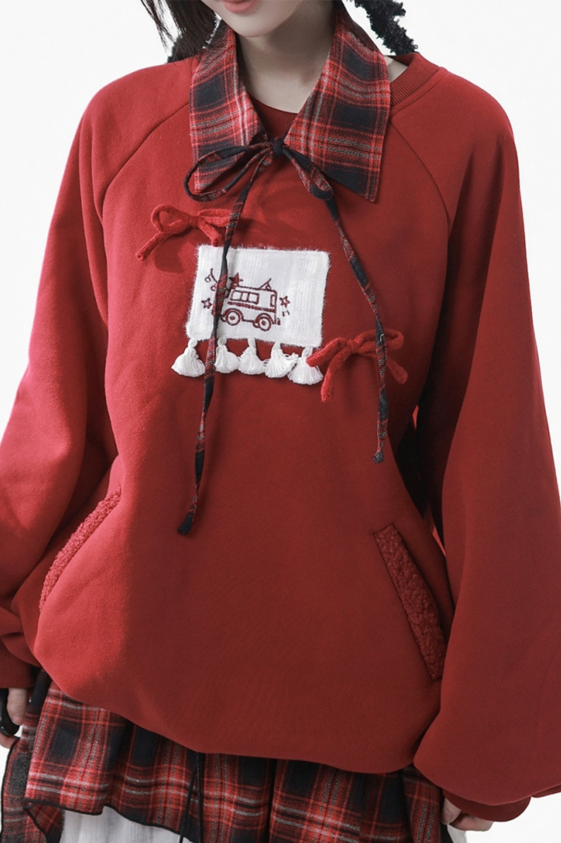 ❤ルーズフリーススウェット+チェックスカート❤