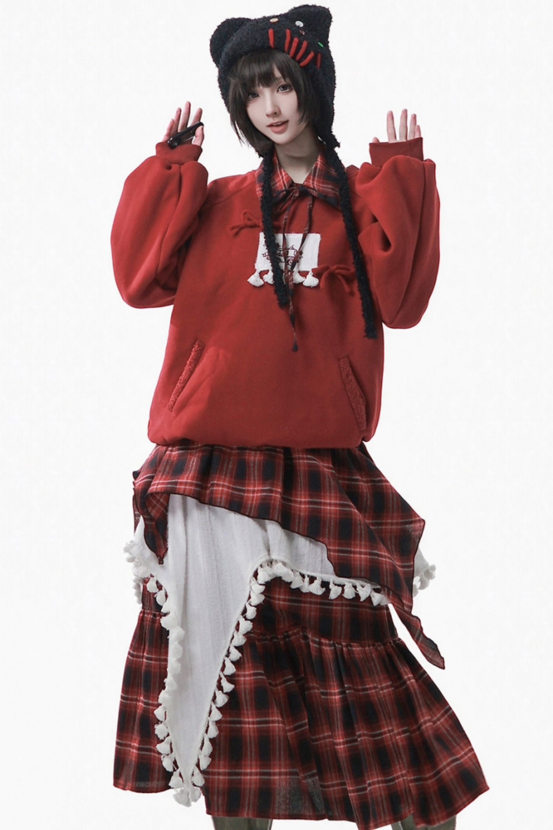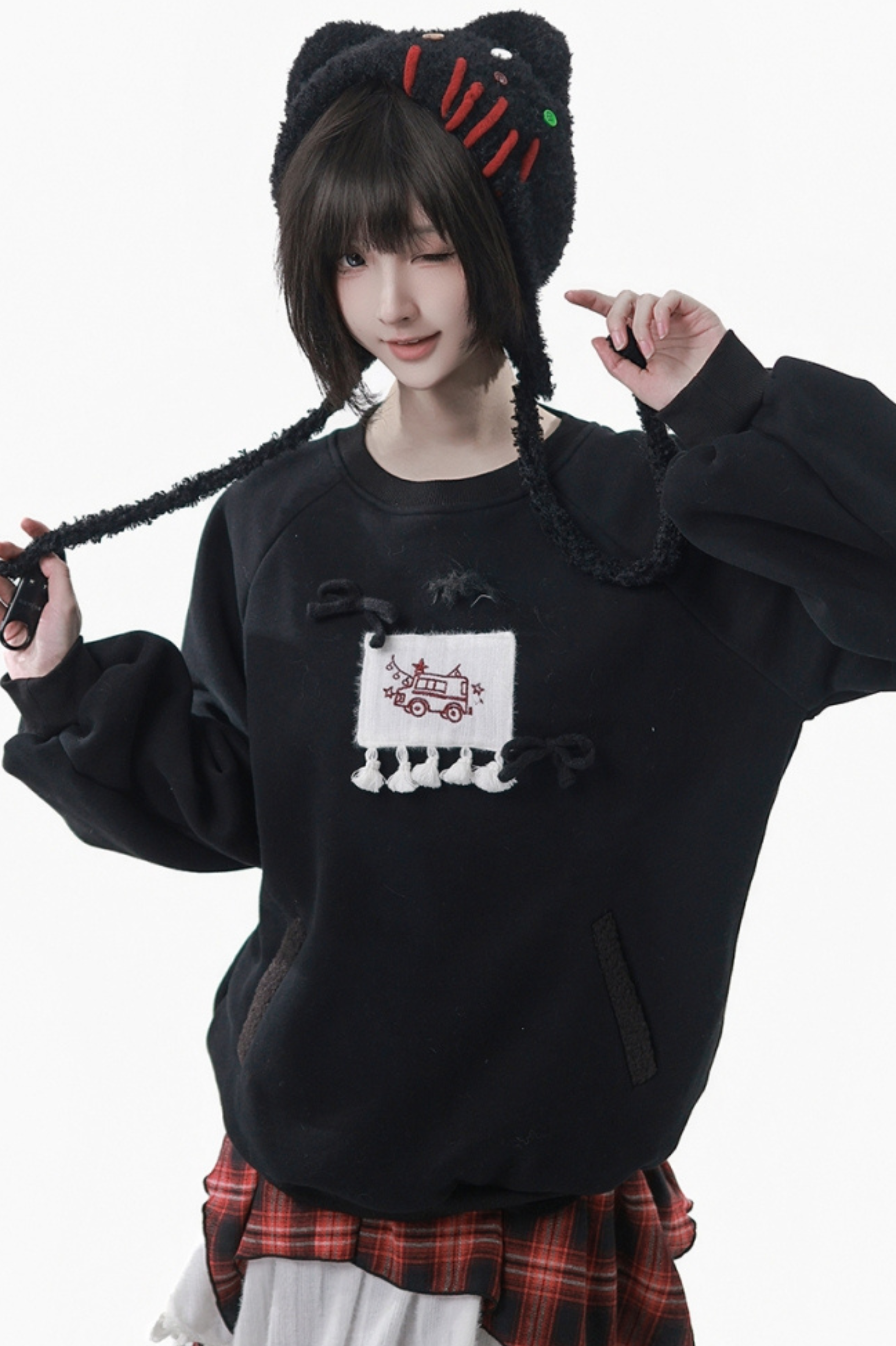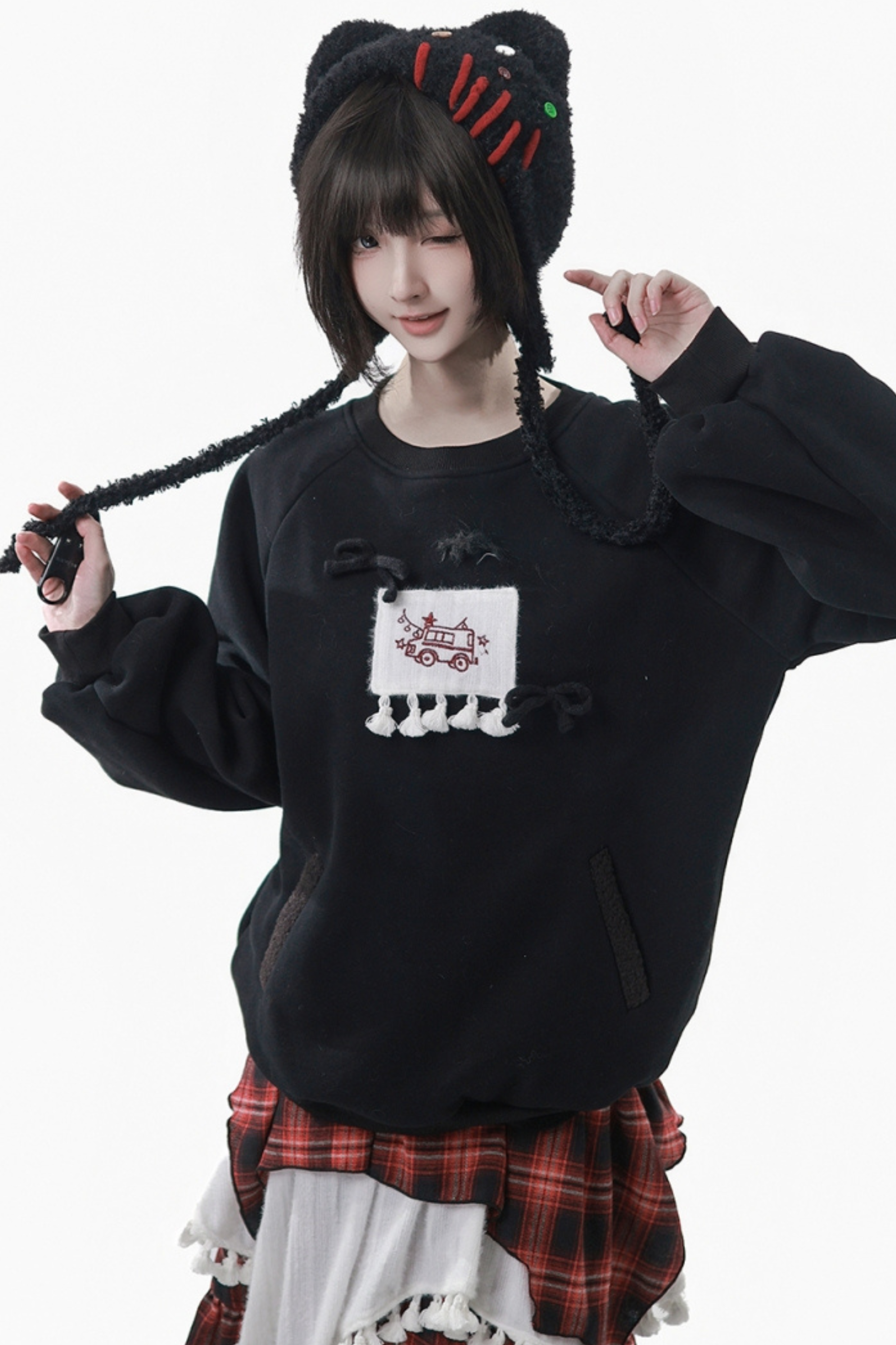 ❤ルーズフリーススウェット+チェックスカート❤