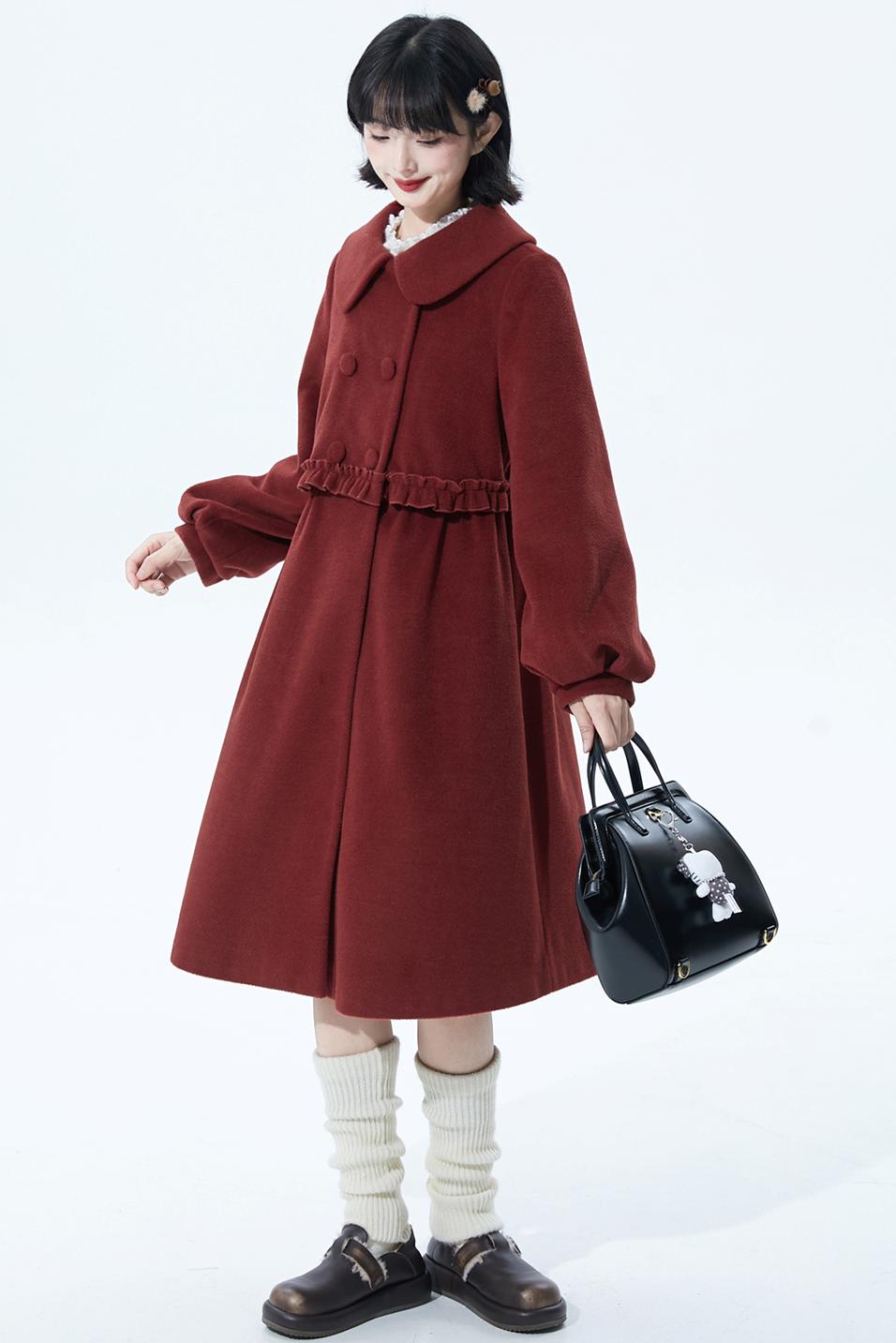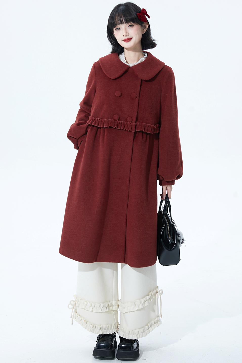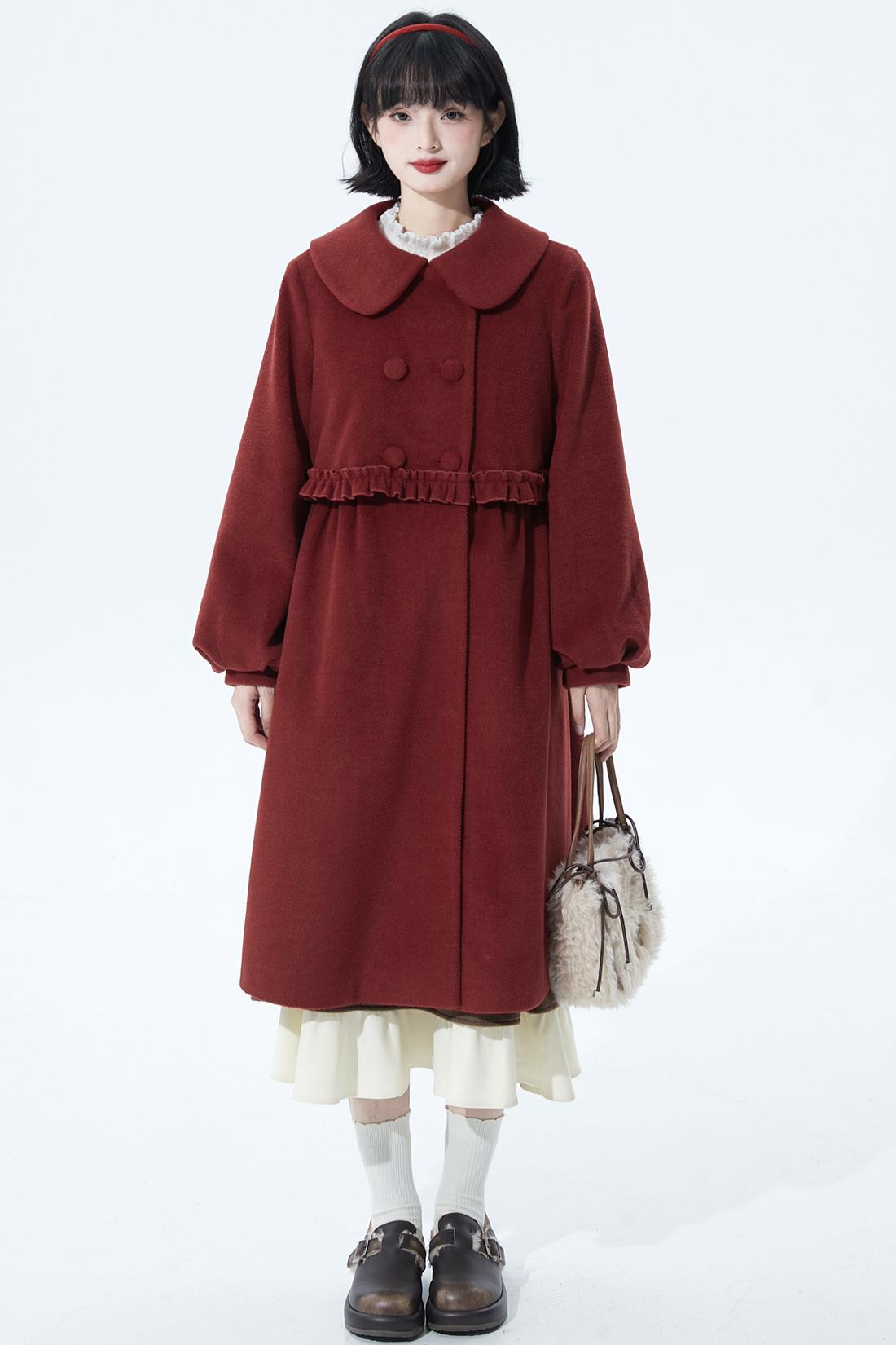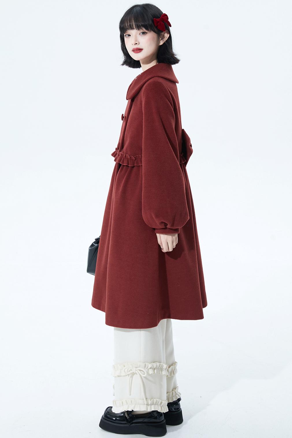 レッドラッフルウールコート