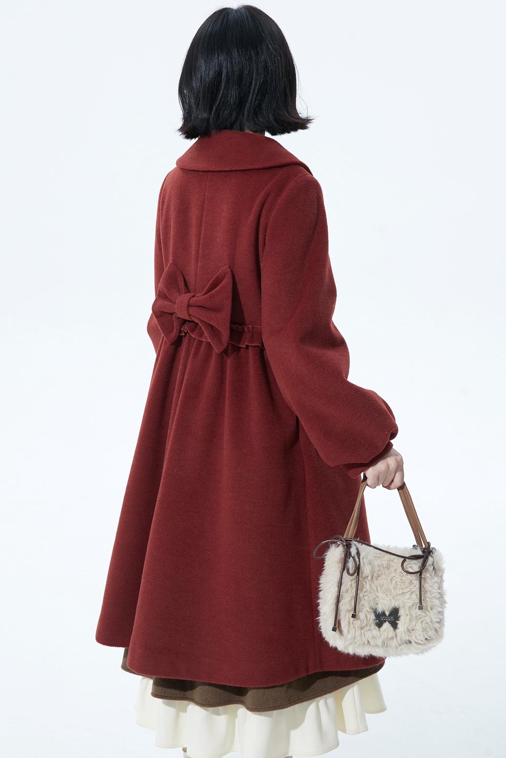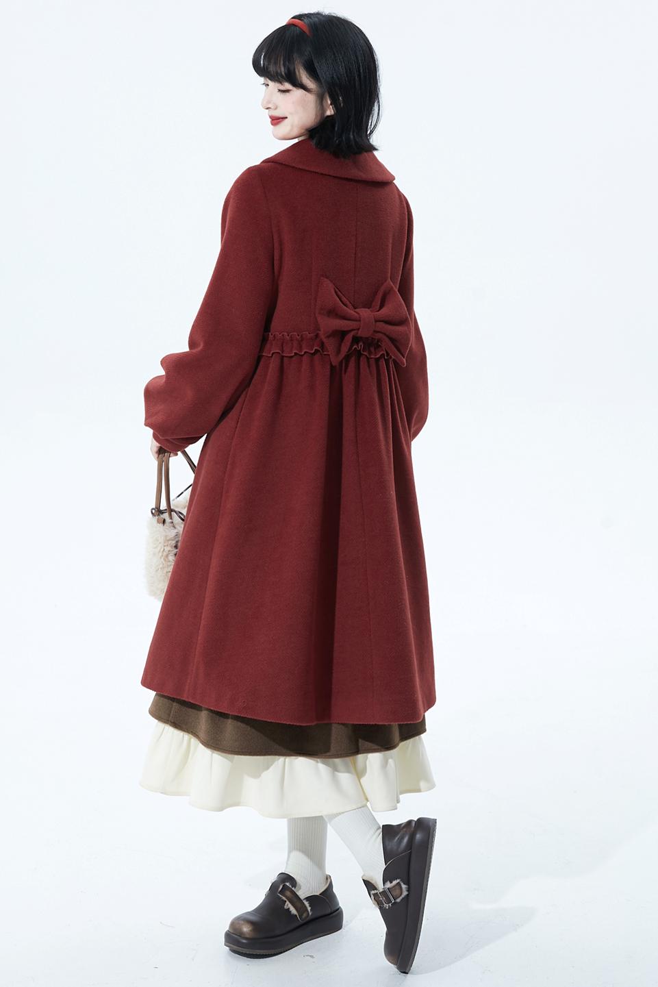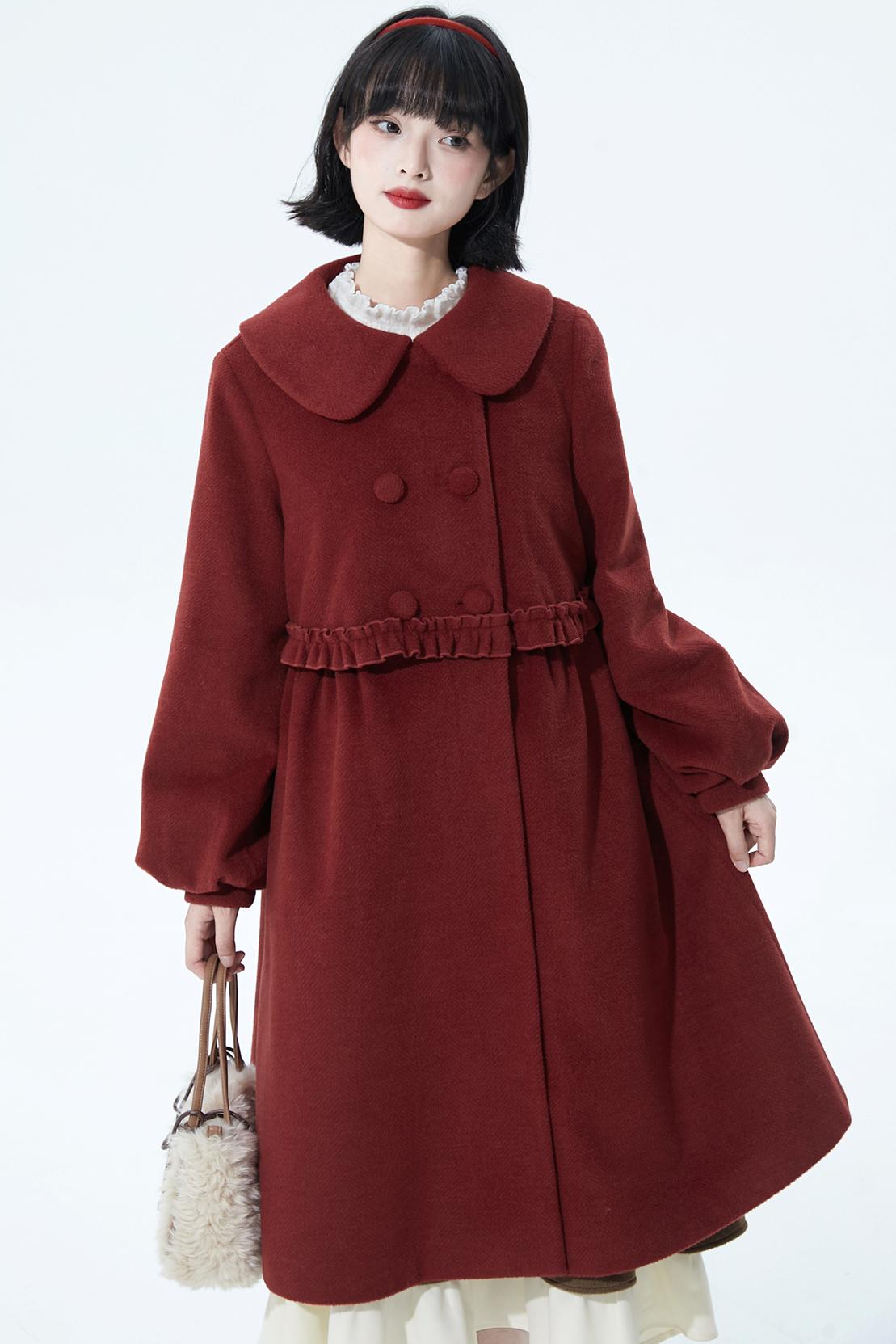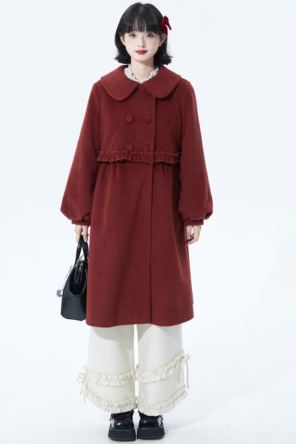 レッドラッフルウールコート
