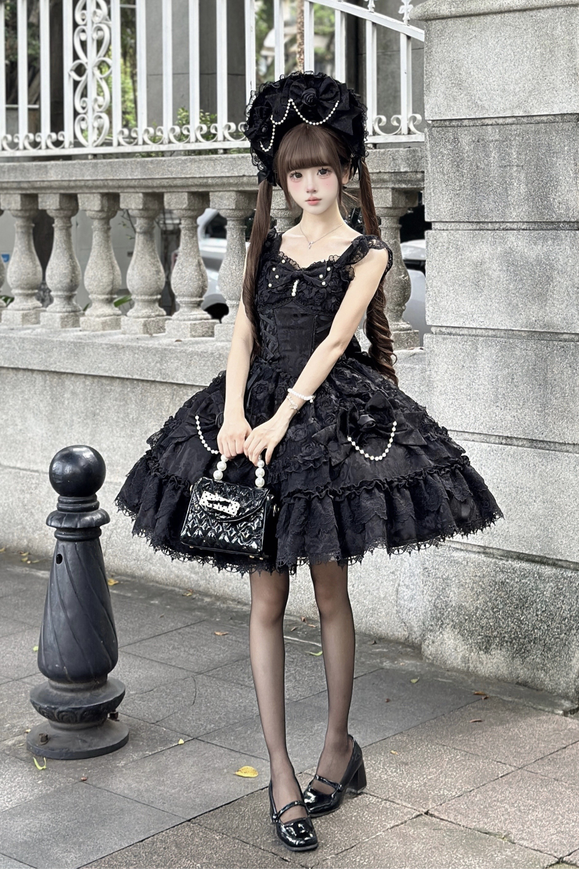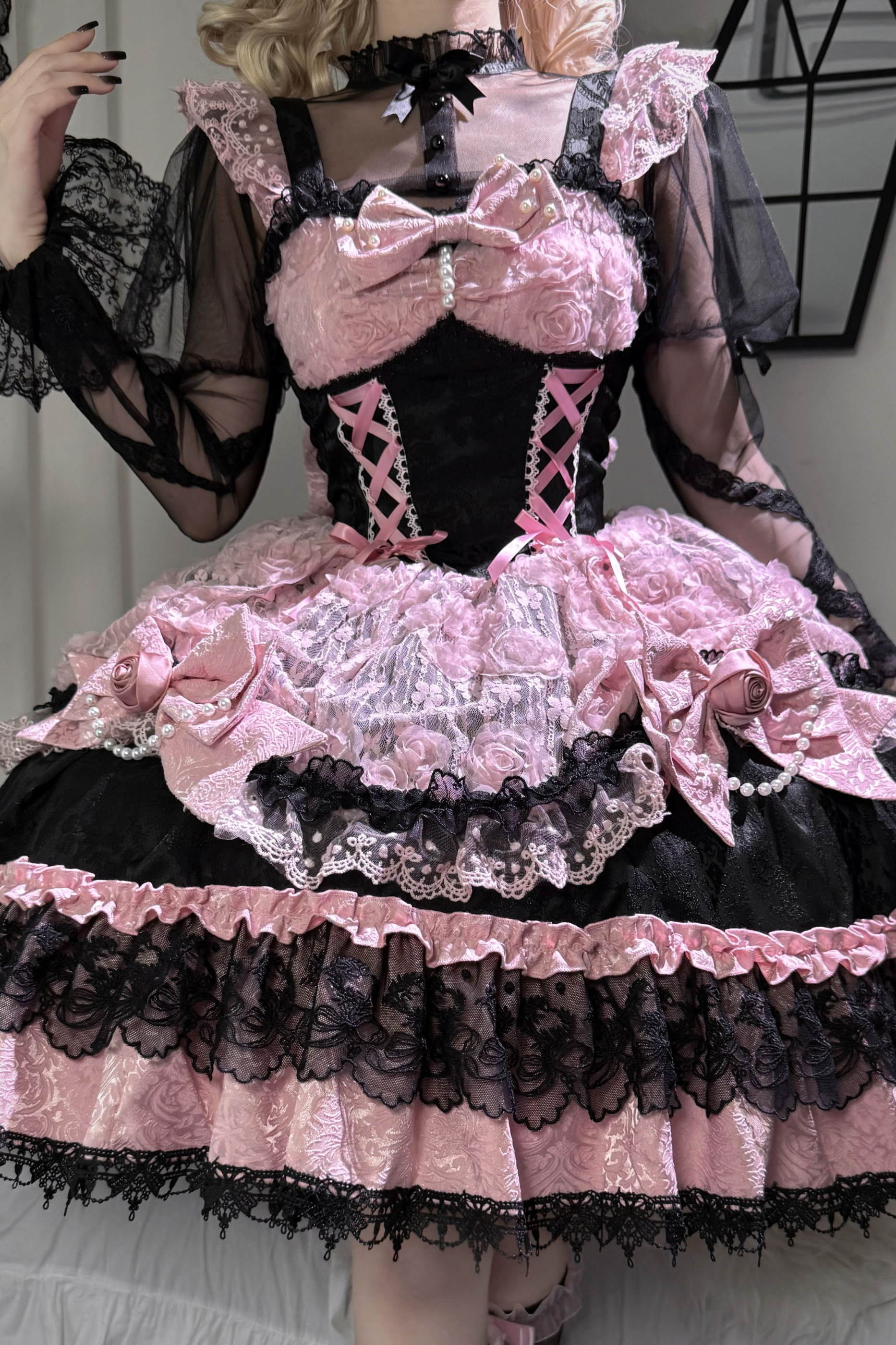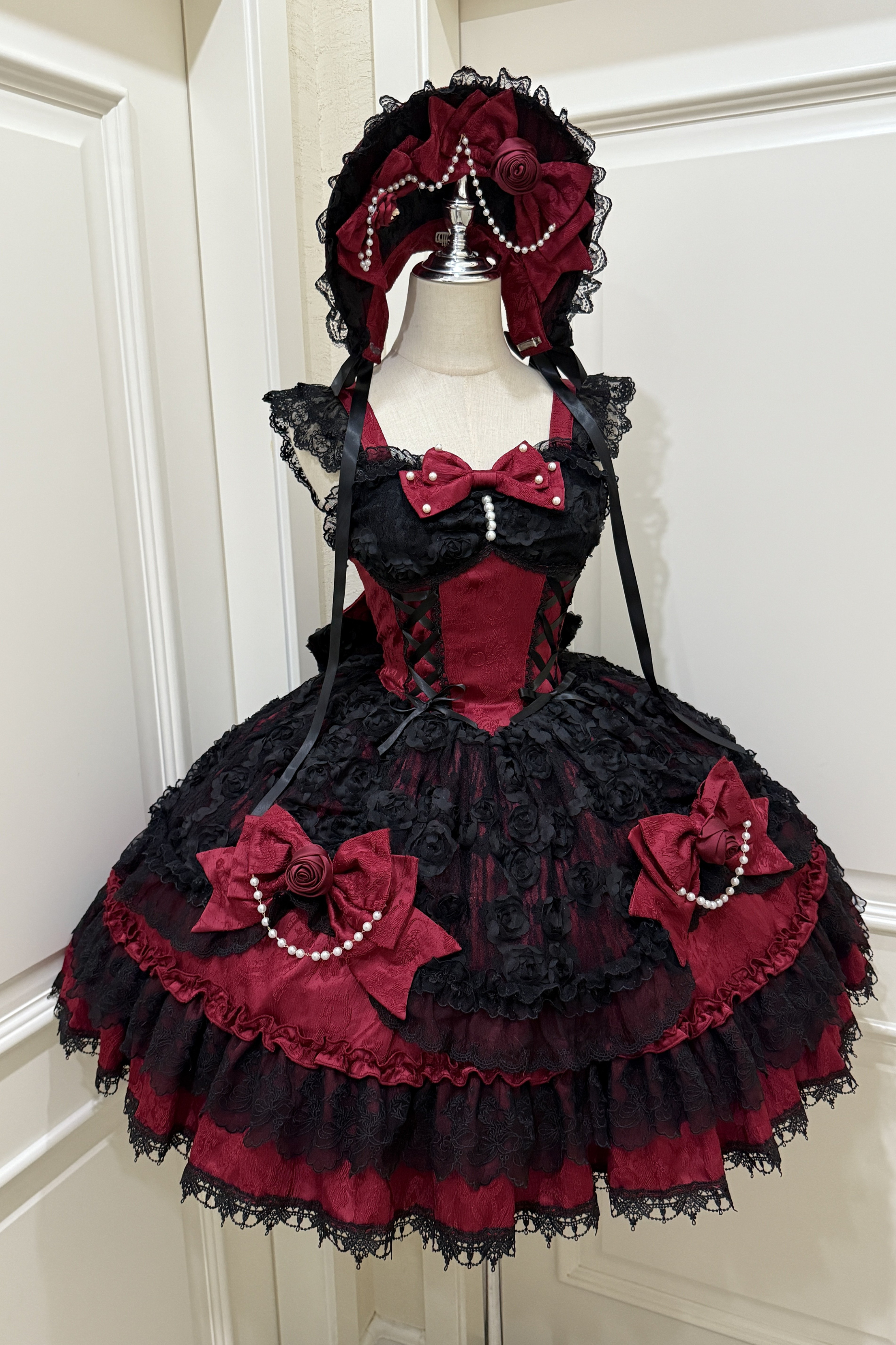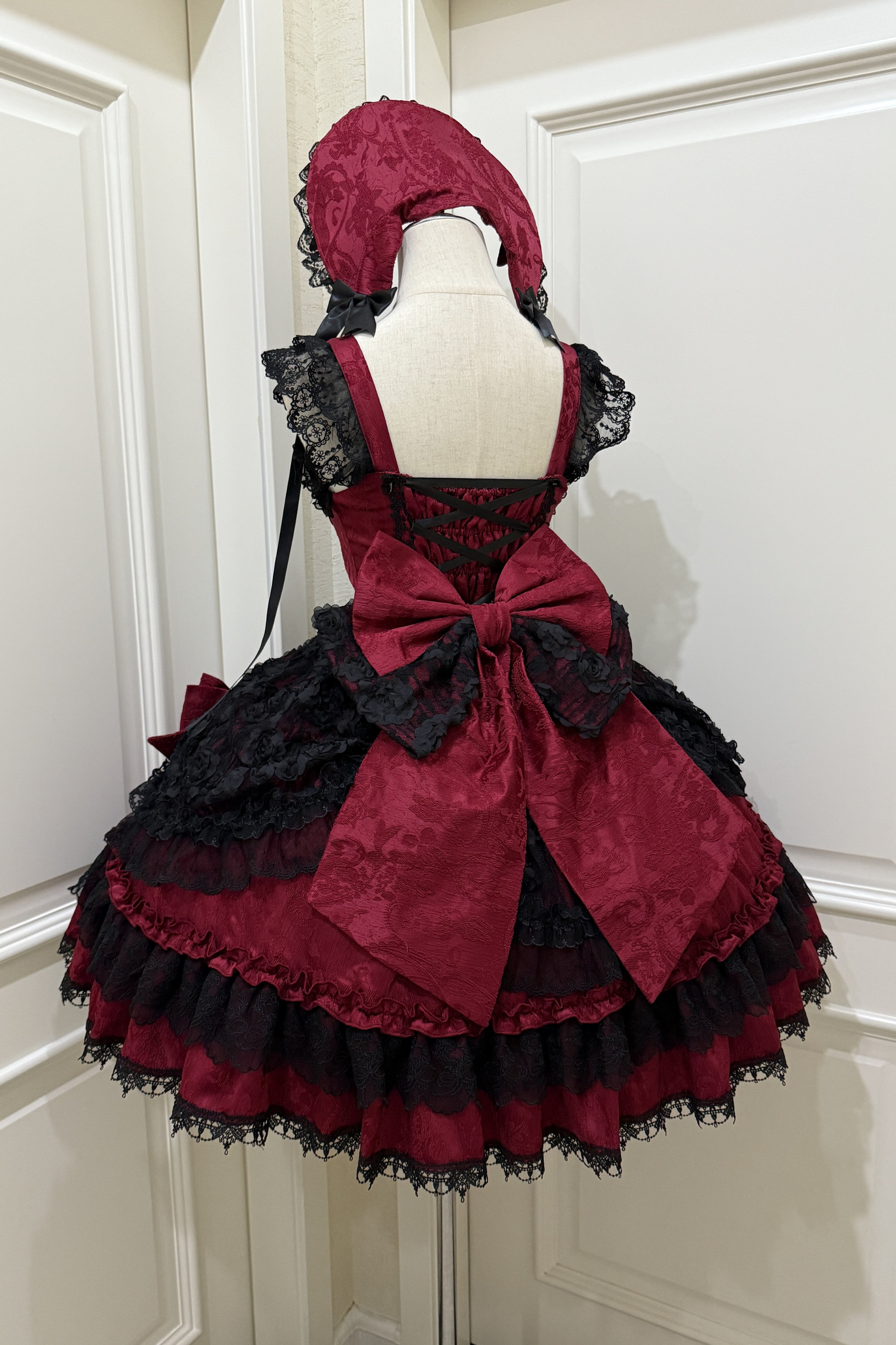ローズフリルプリンセスジャンパースカート+バッグリボン+ボンネット