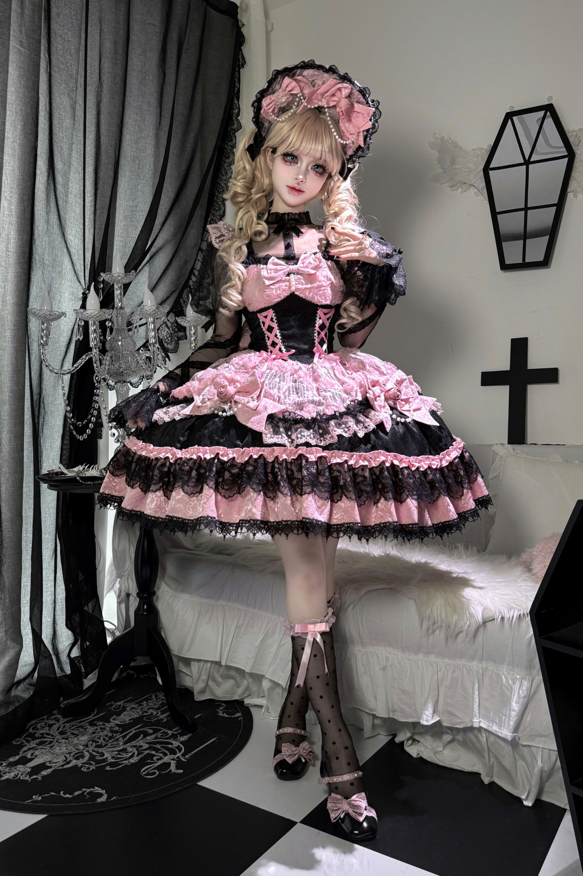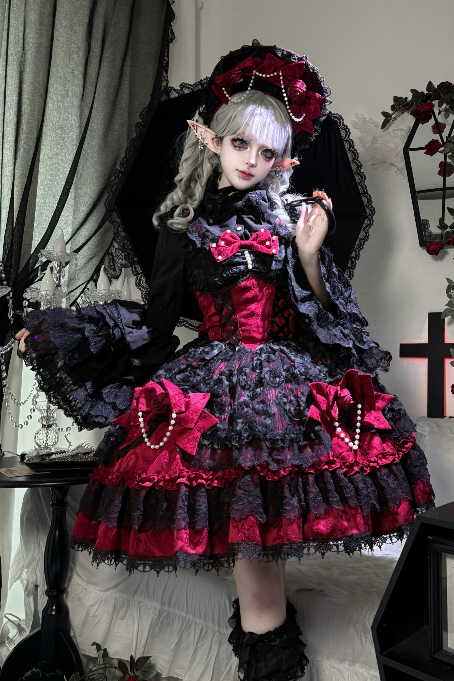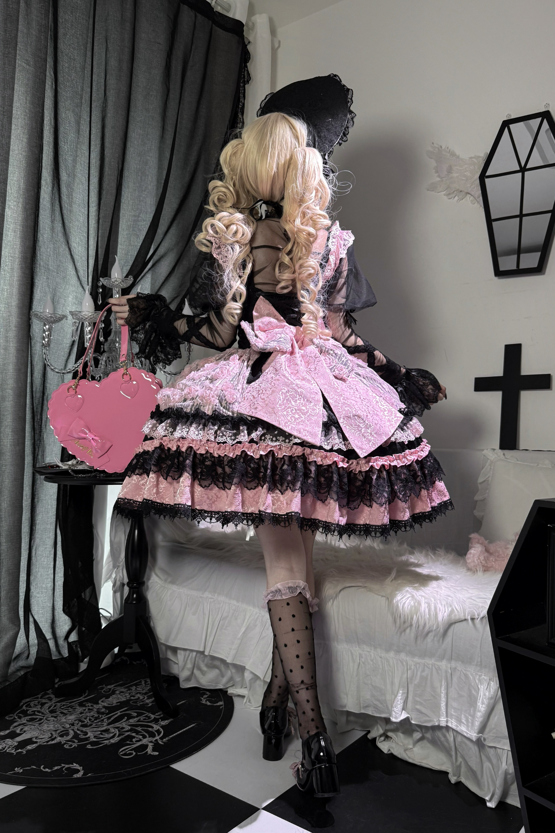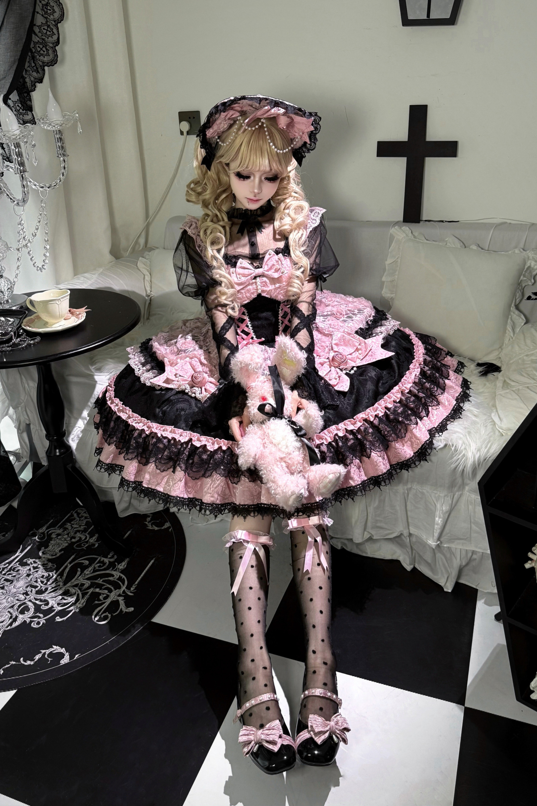 ローズフリルプリンセスジャンパースカート+バッグリボン+ボンネット