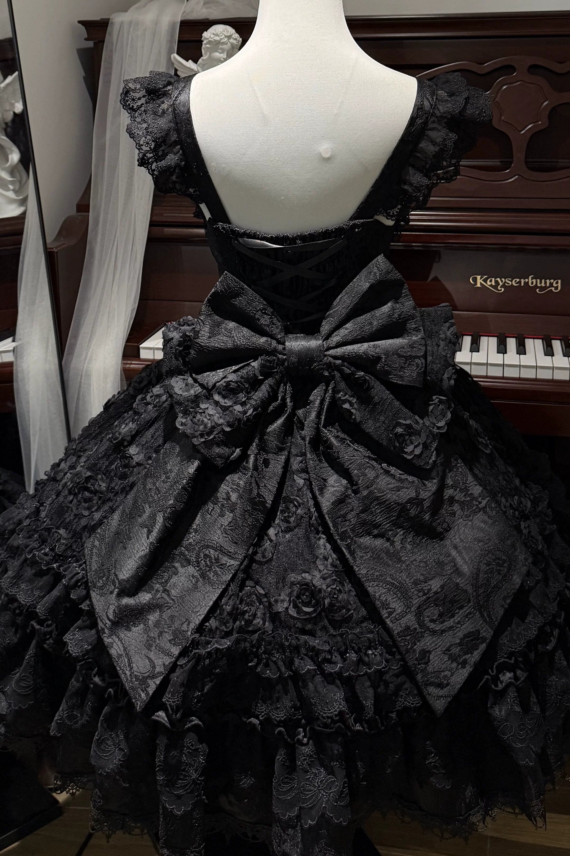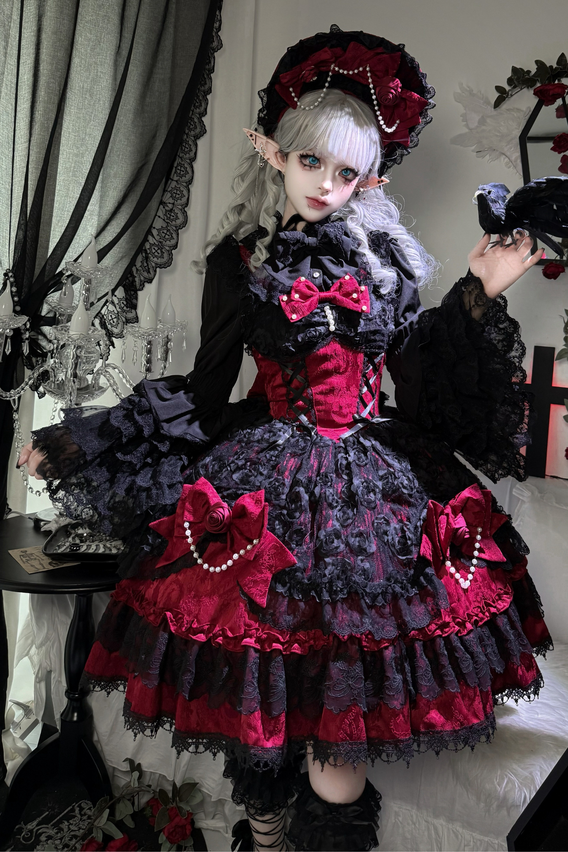 ❤ローズフリルプリンセスジャンパースカート+バッグリボン+ボンネット❤