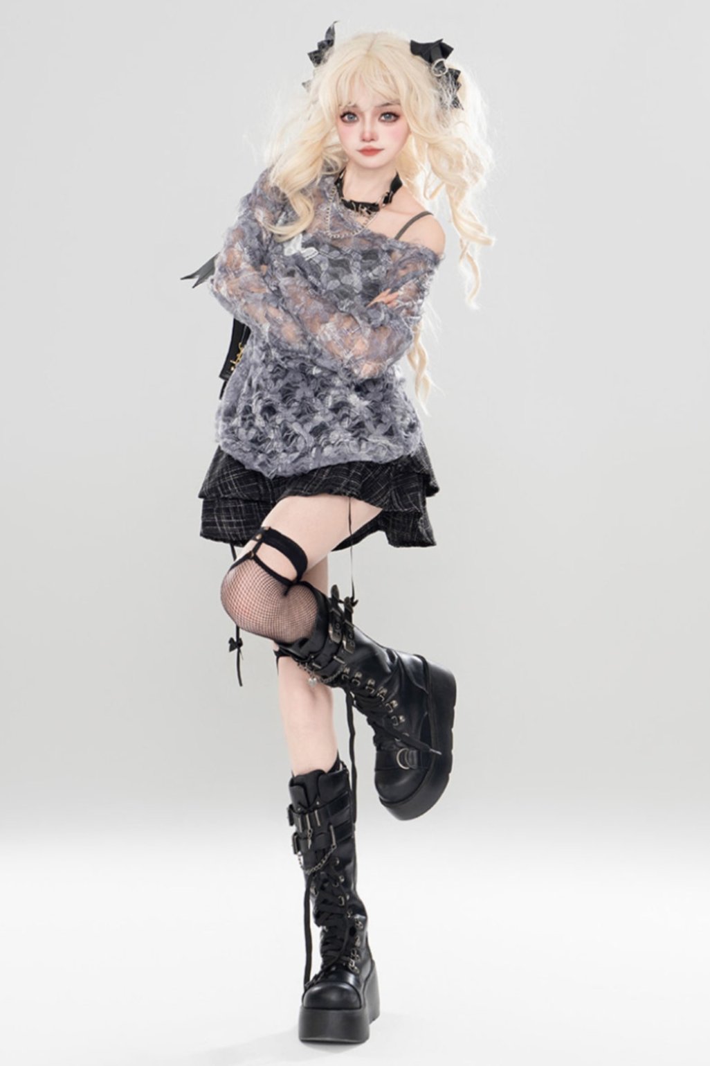 パンクオフショルダーツーピースセット