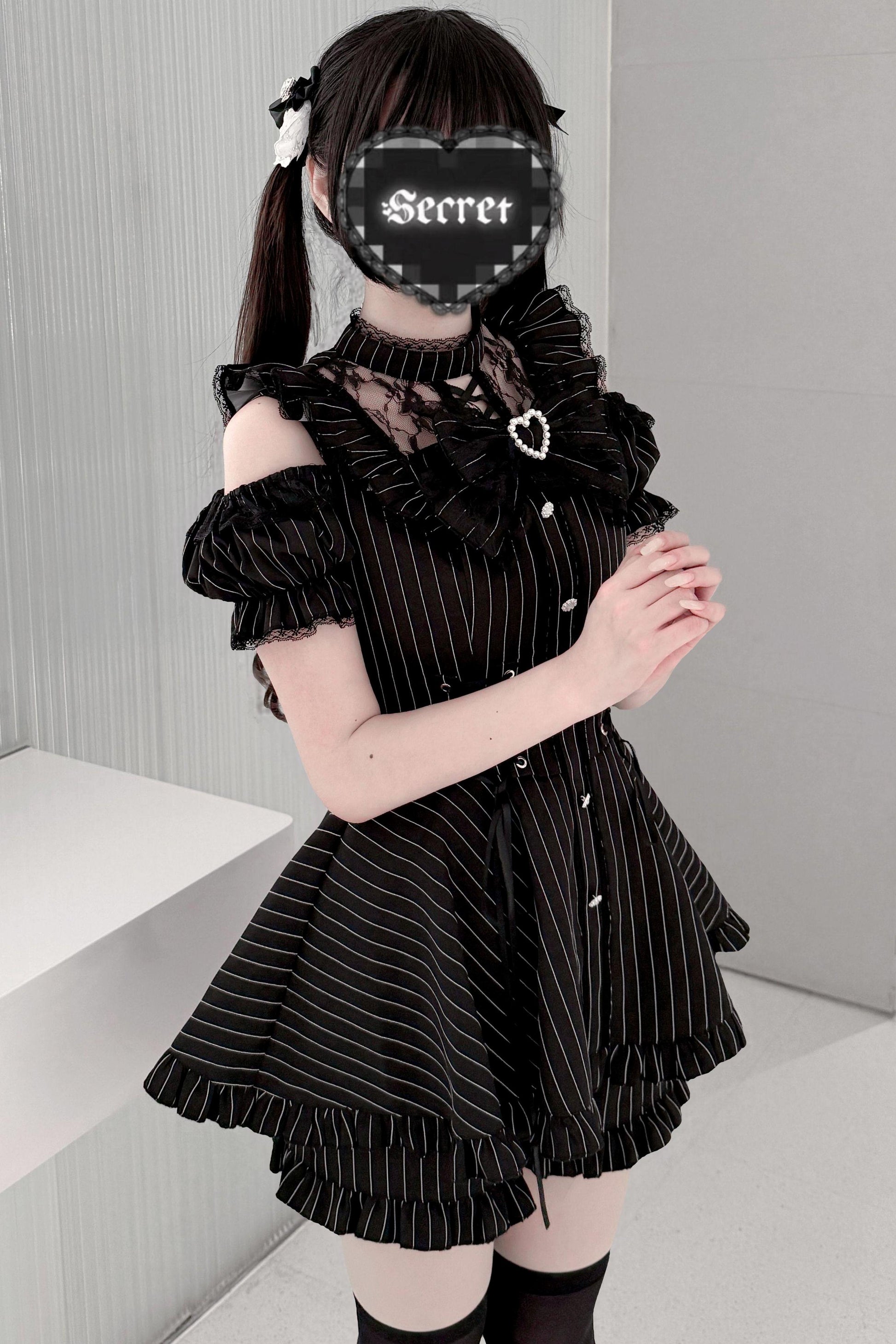 ❤ブラック/ストライプゴシックレースリボンドレスセットアップ❤