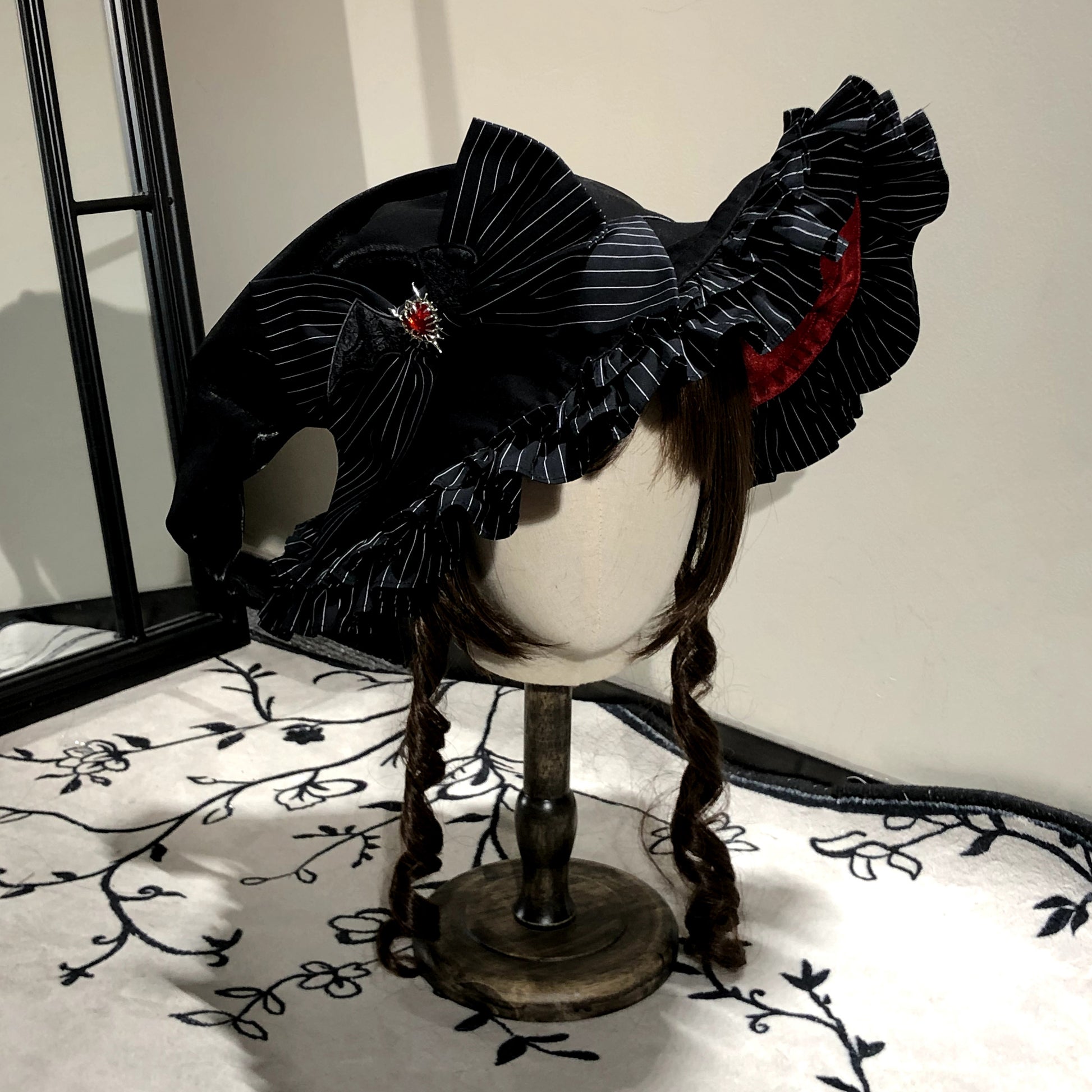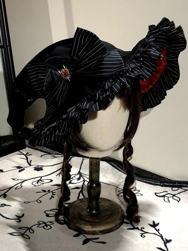 ■Size chart ロングテールジュエルバットリボンストライプフリルウィッチハット