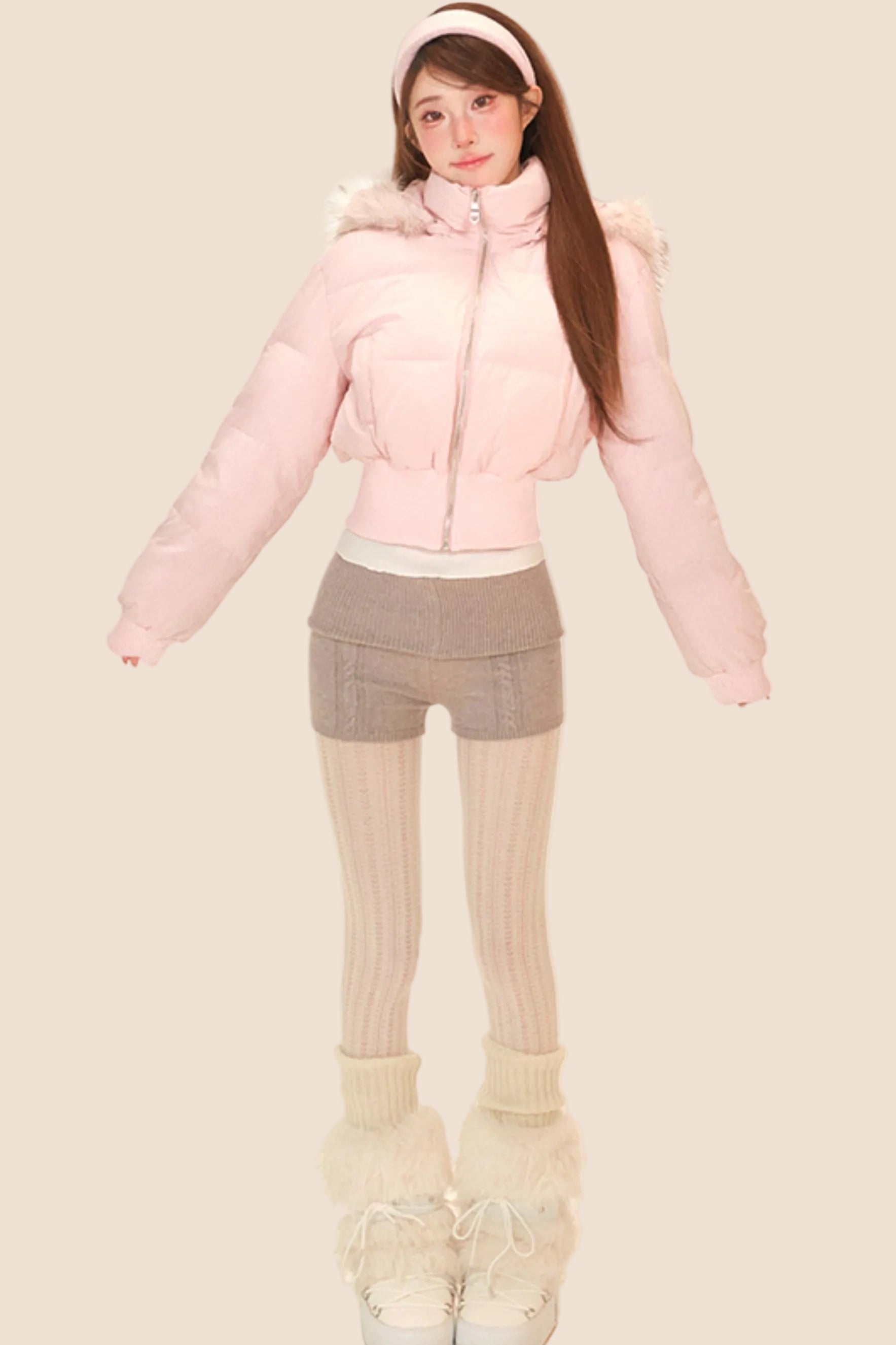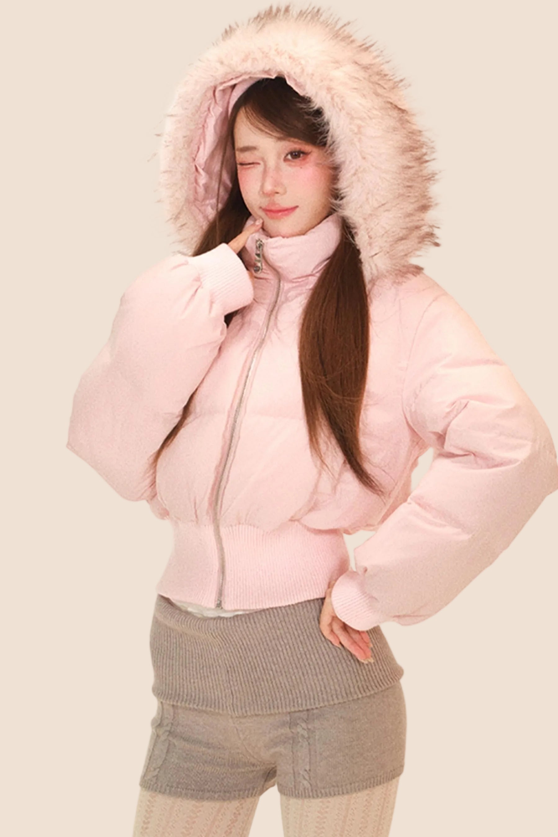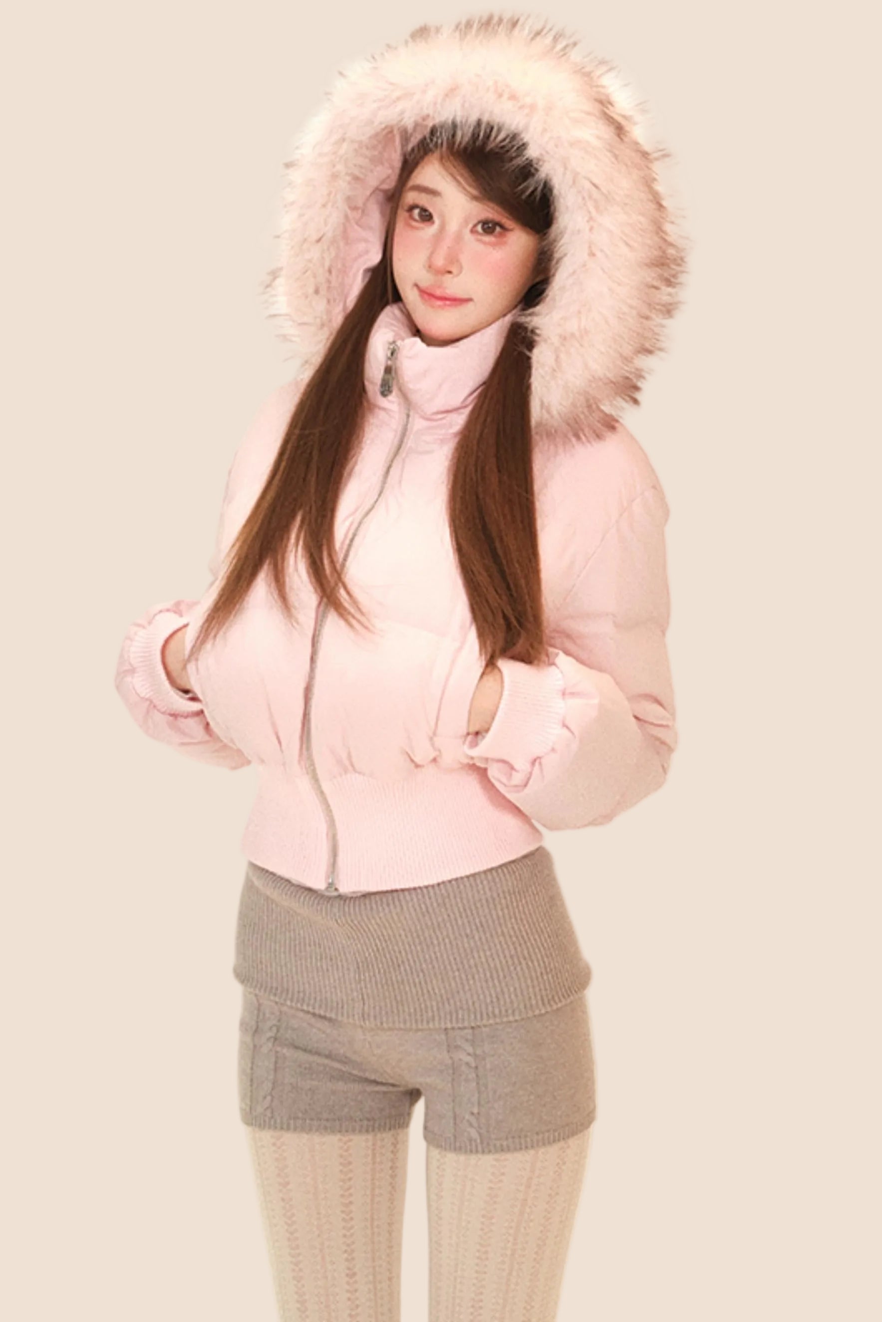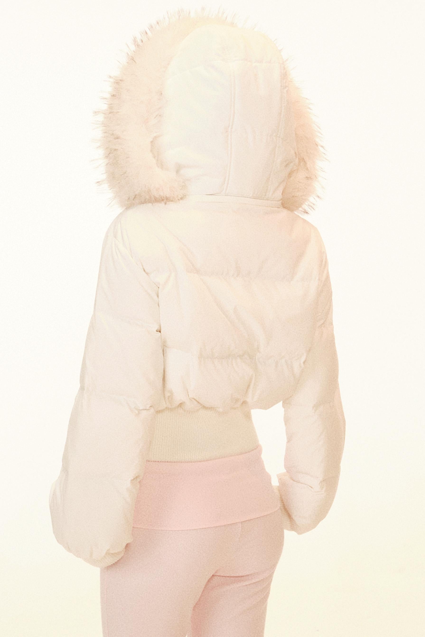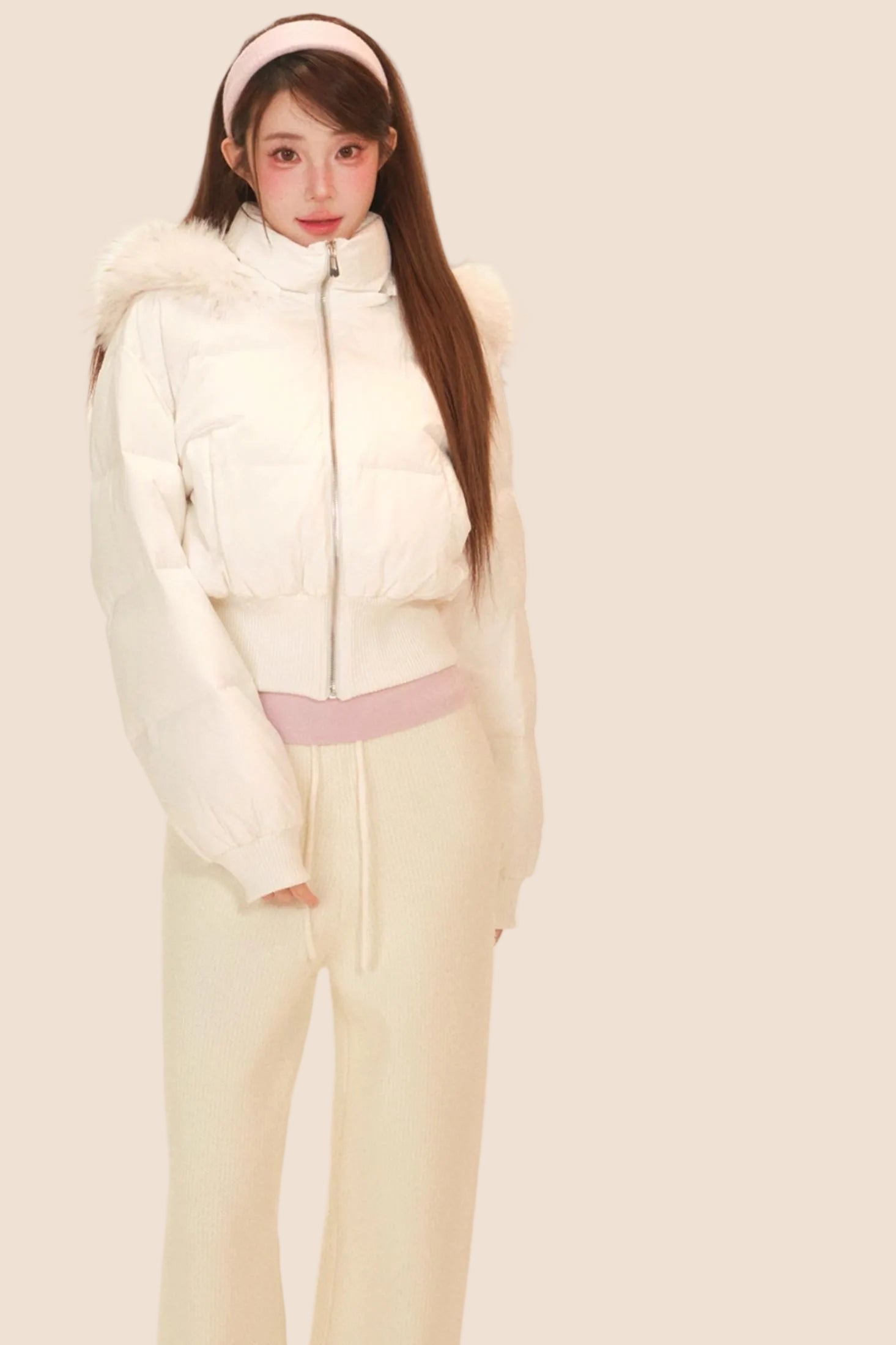 ❤スノーベルベットフェザーフーデッドダウンジャケット❤