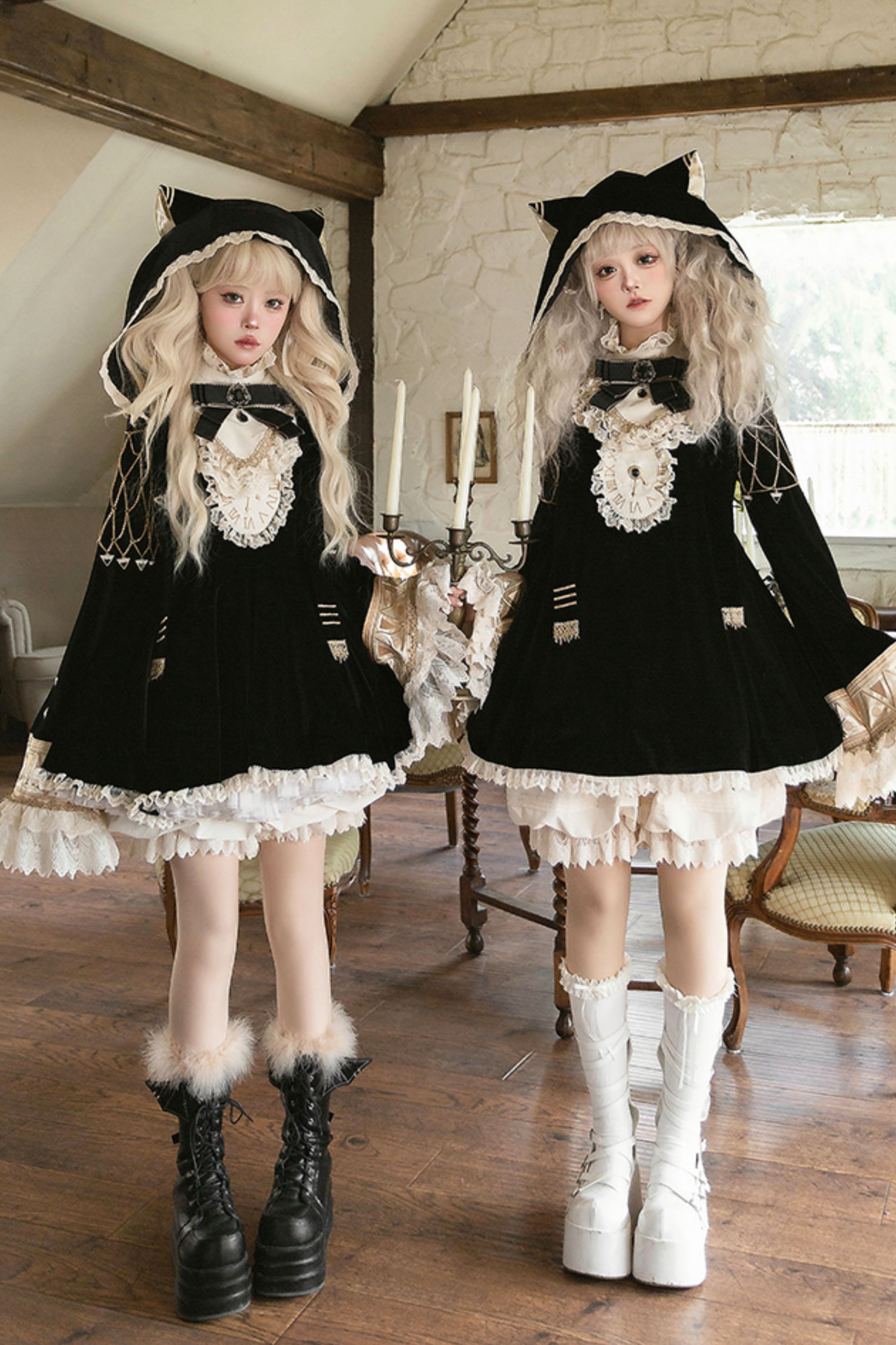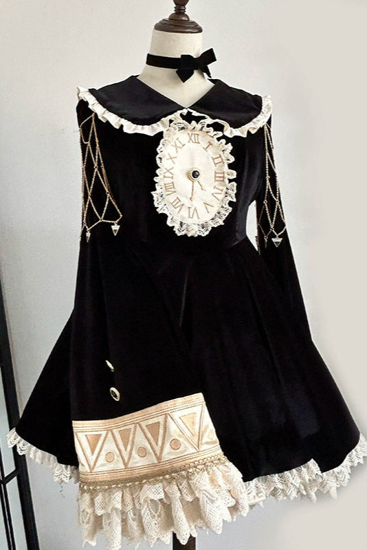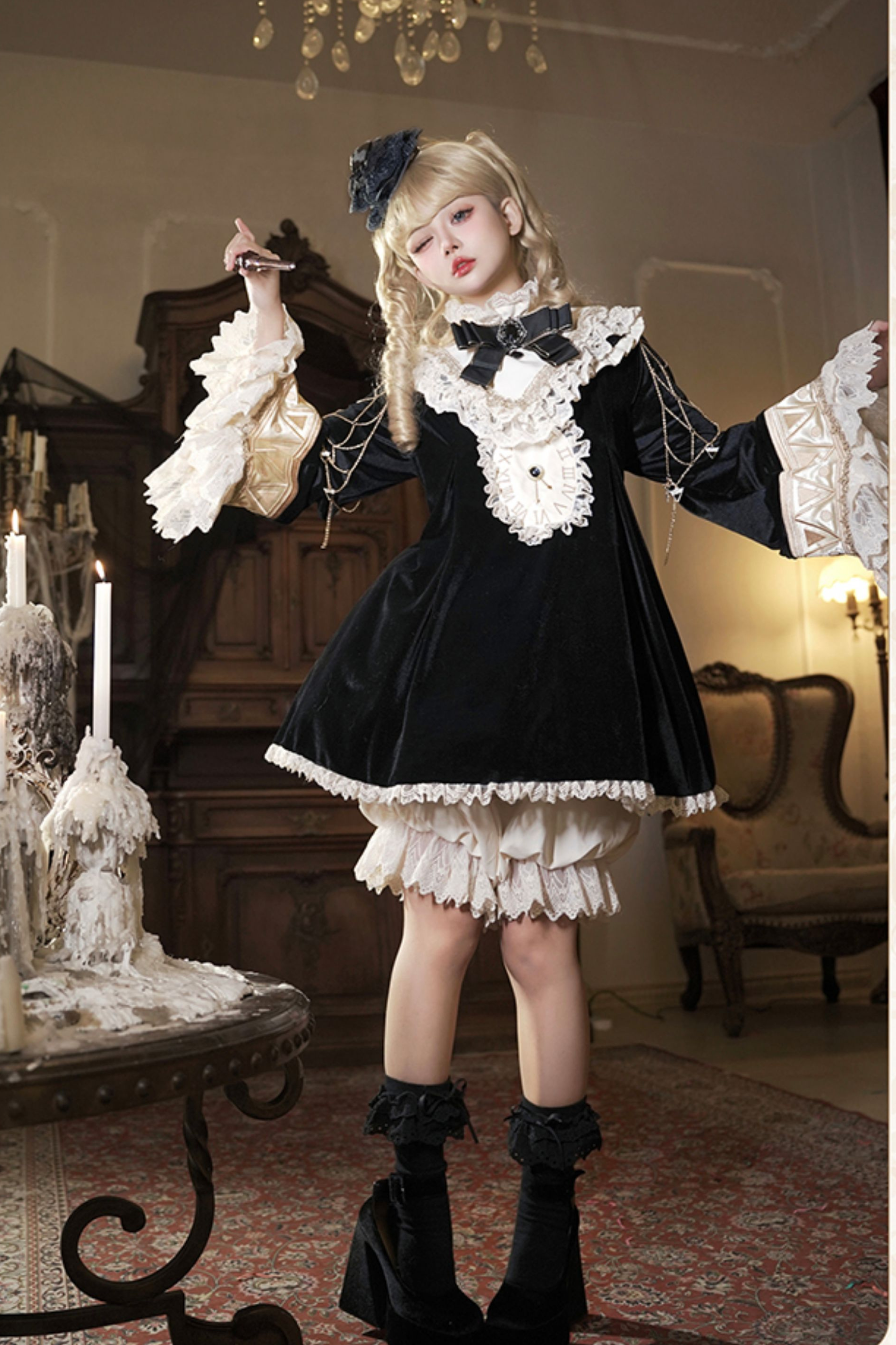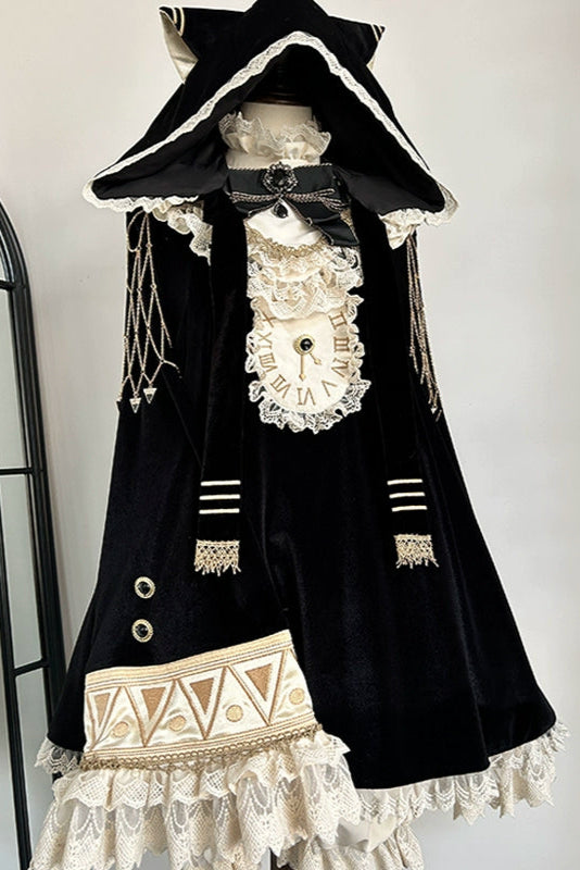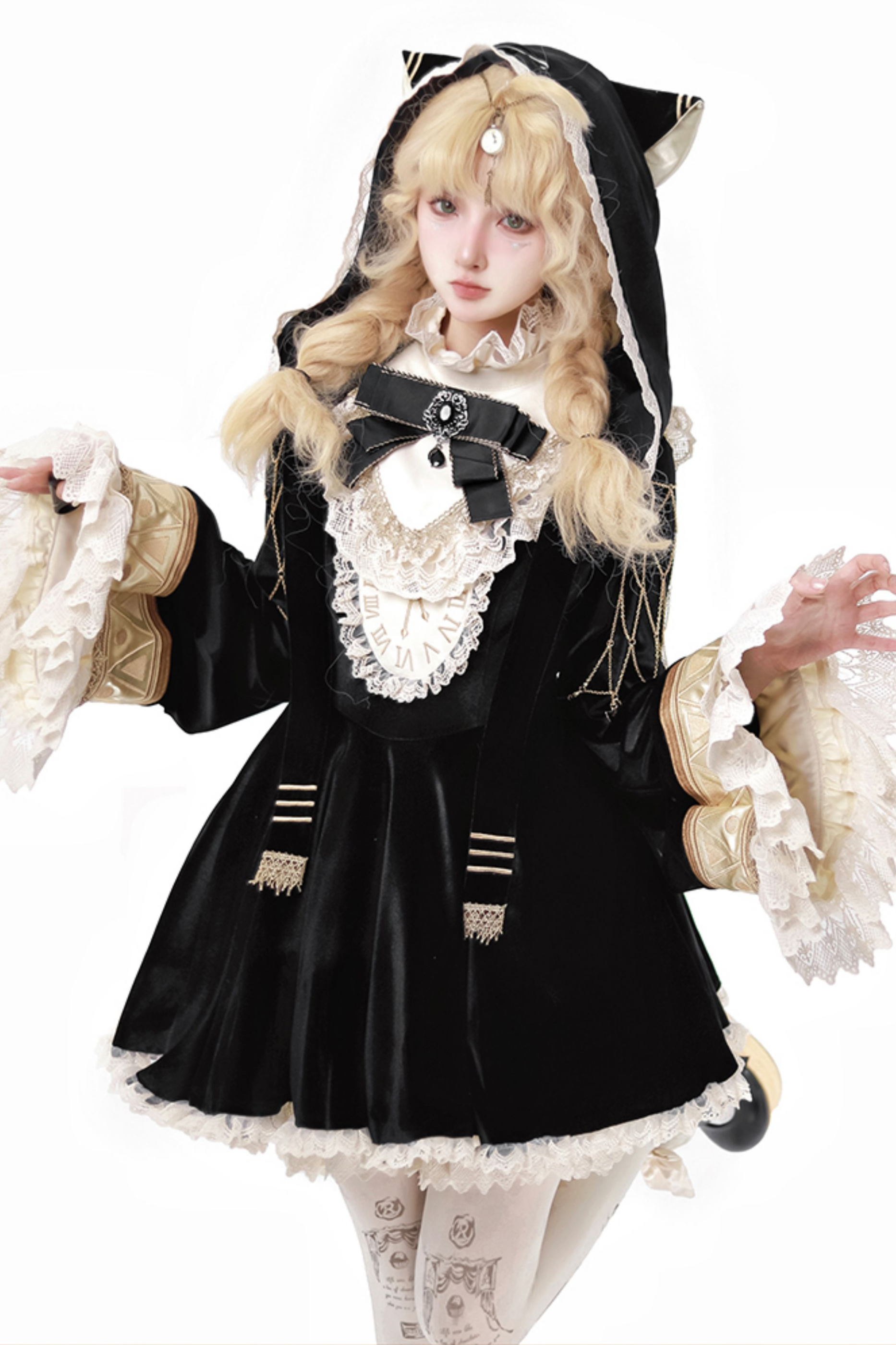 黒猫フリルクロックロリータドレス+パンプキンパンツ