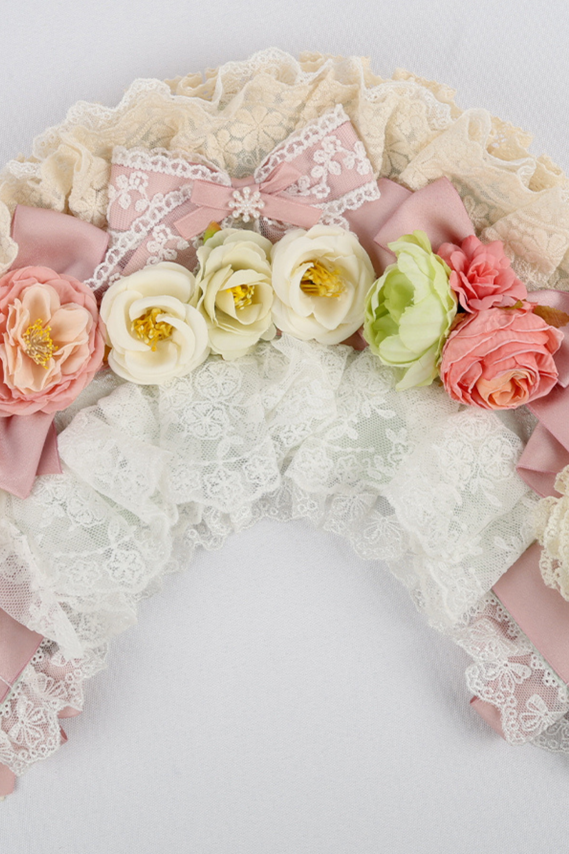 カントリーブーケロリータボンネット+フラットハット+クリップハット+ヘアバンド