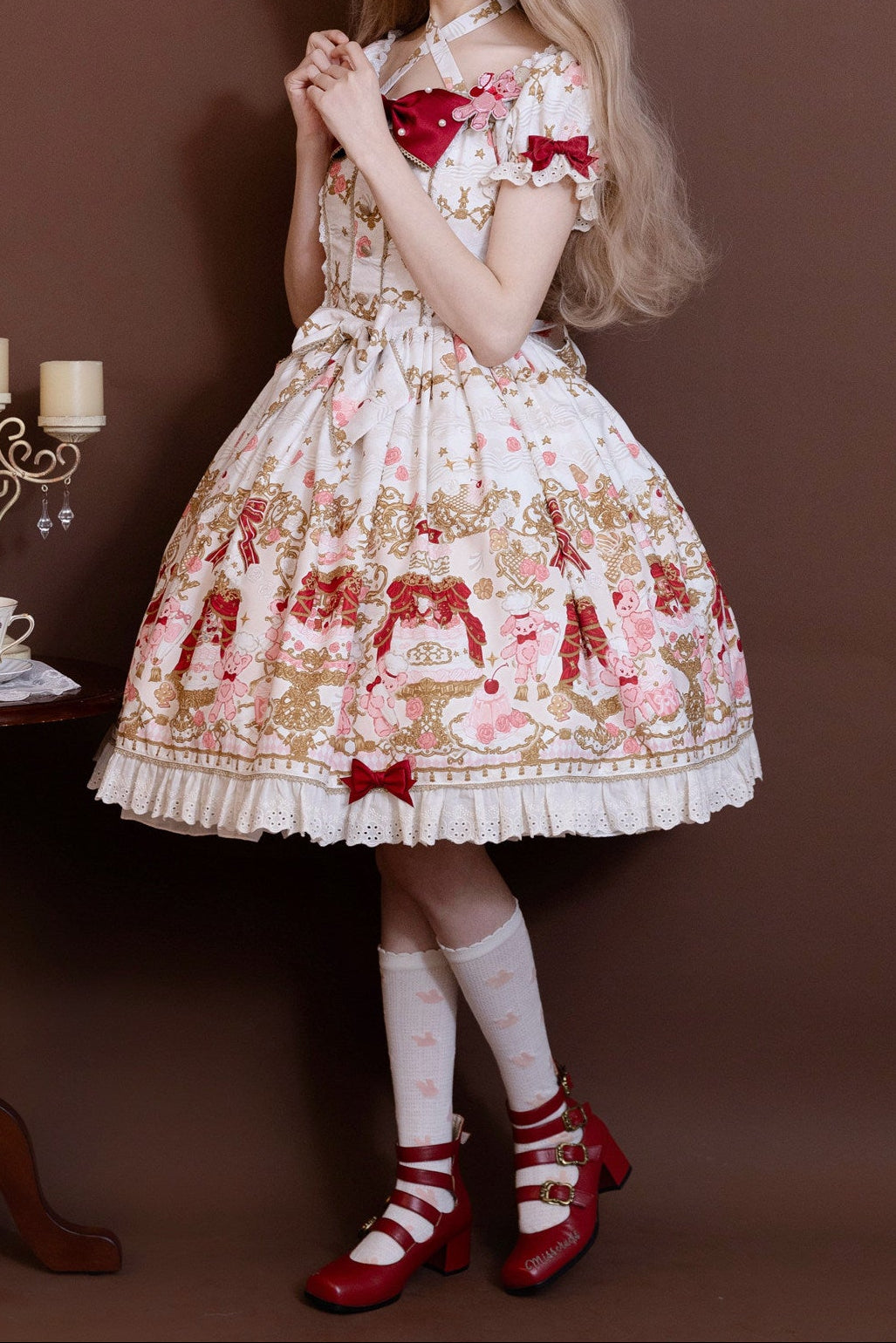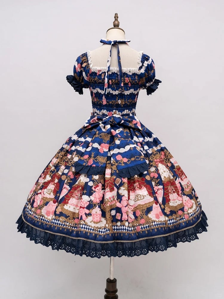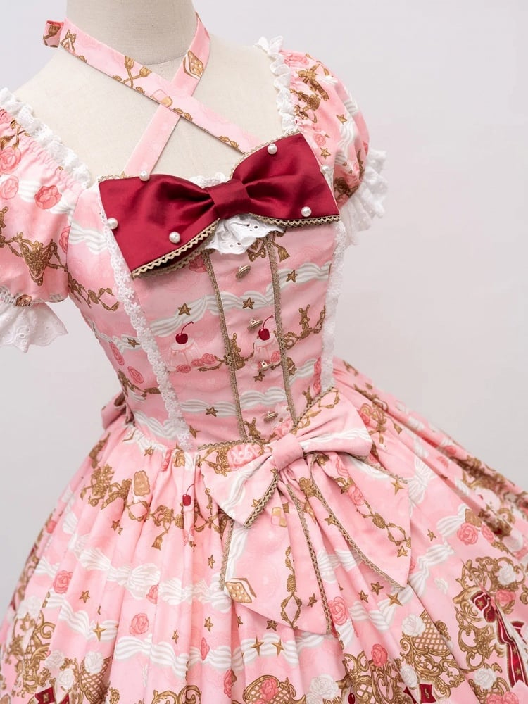 【4月26日予約締切】レトロロマンスイートロリータリボンケーキプリントホルターネックドレス