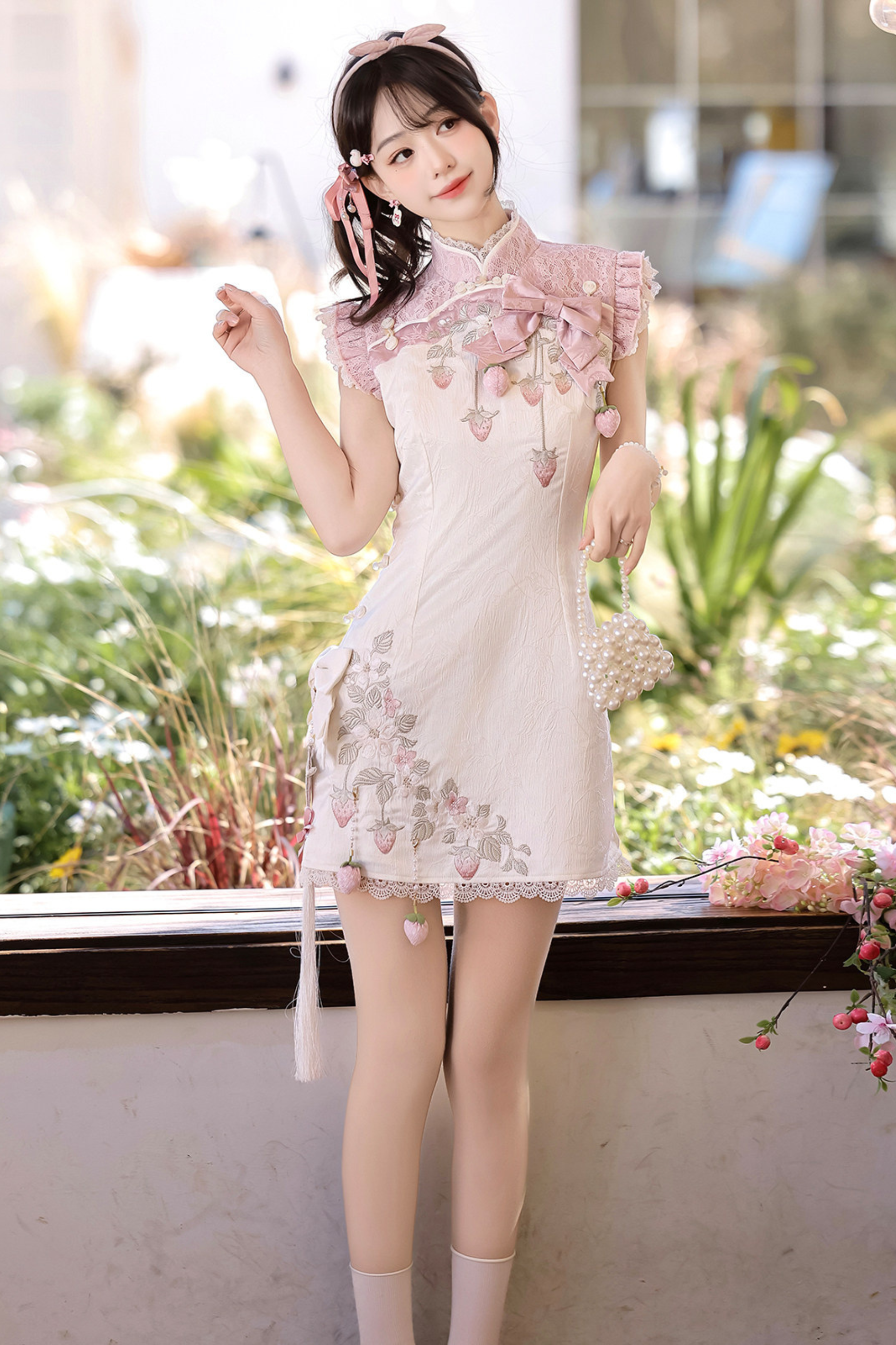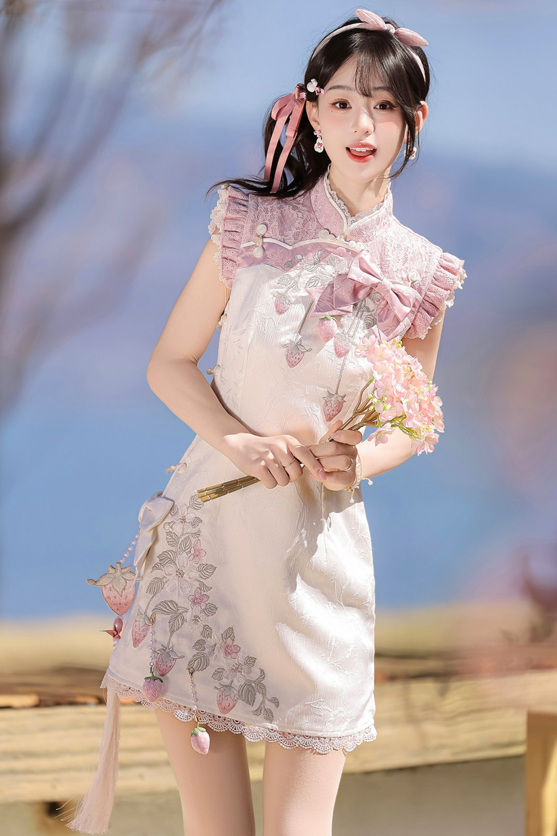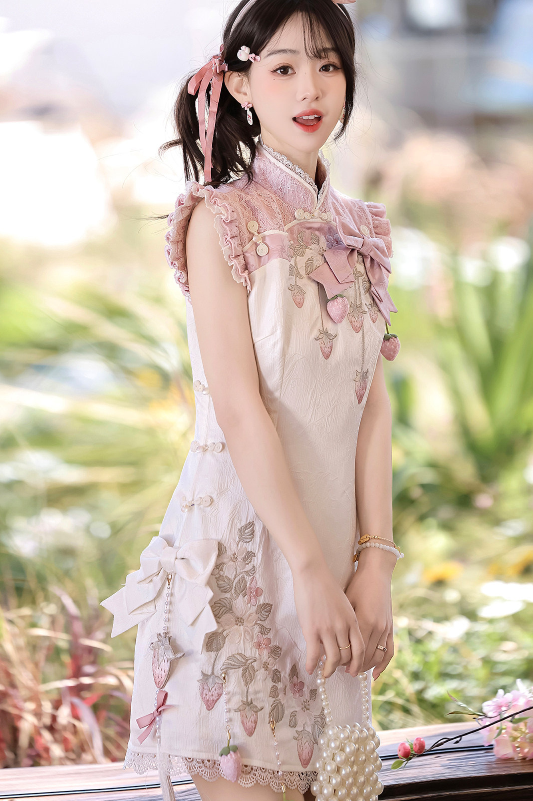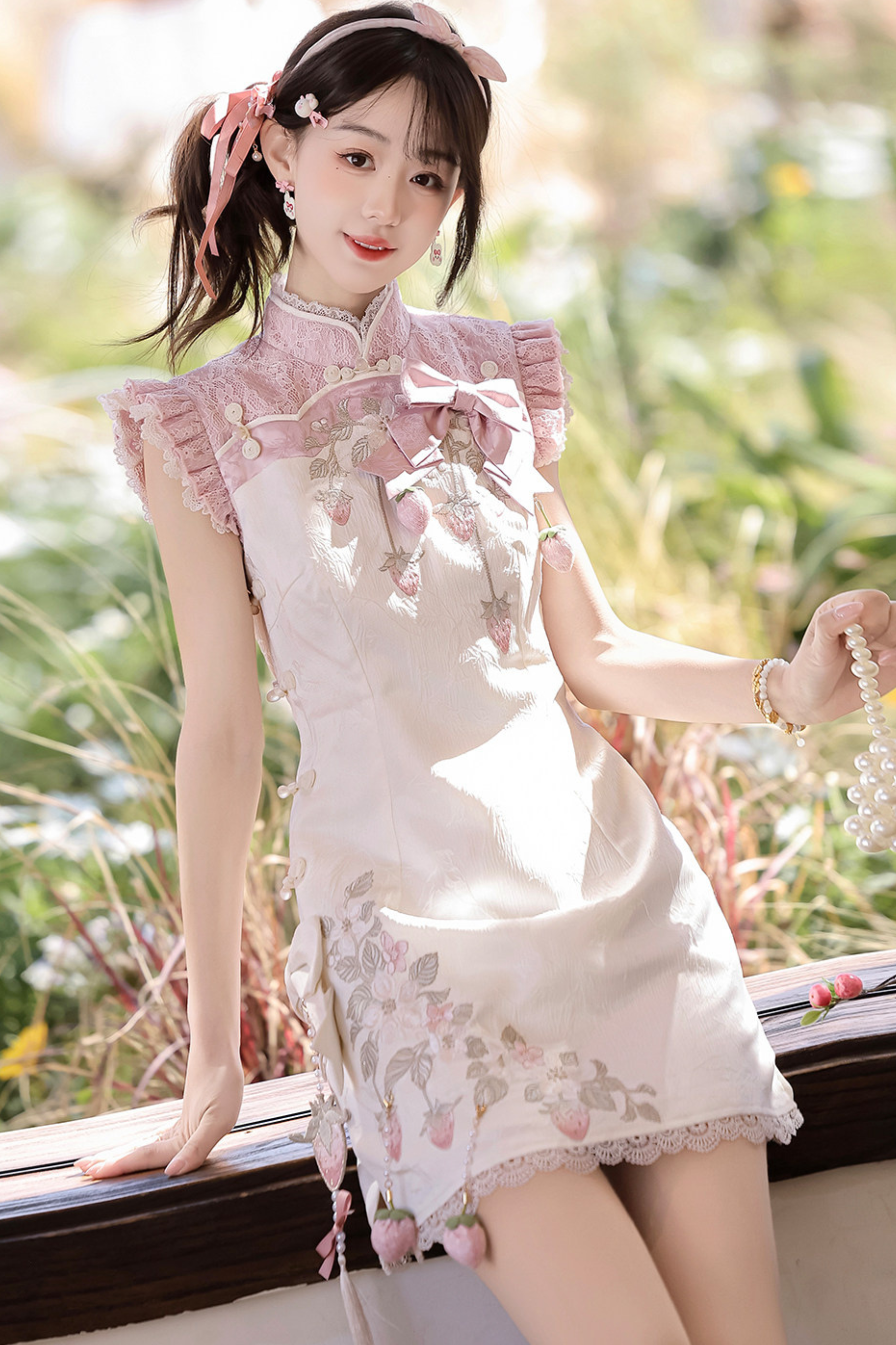 ストロベリースイートチャイナノースリーブドレス