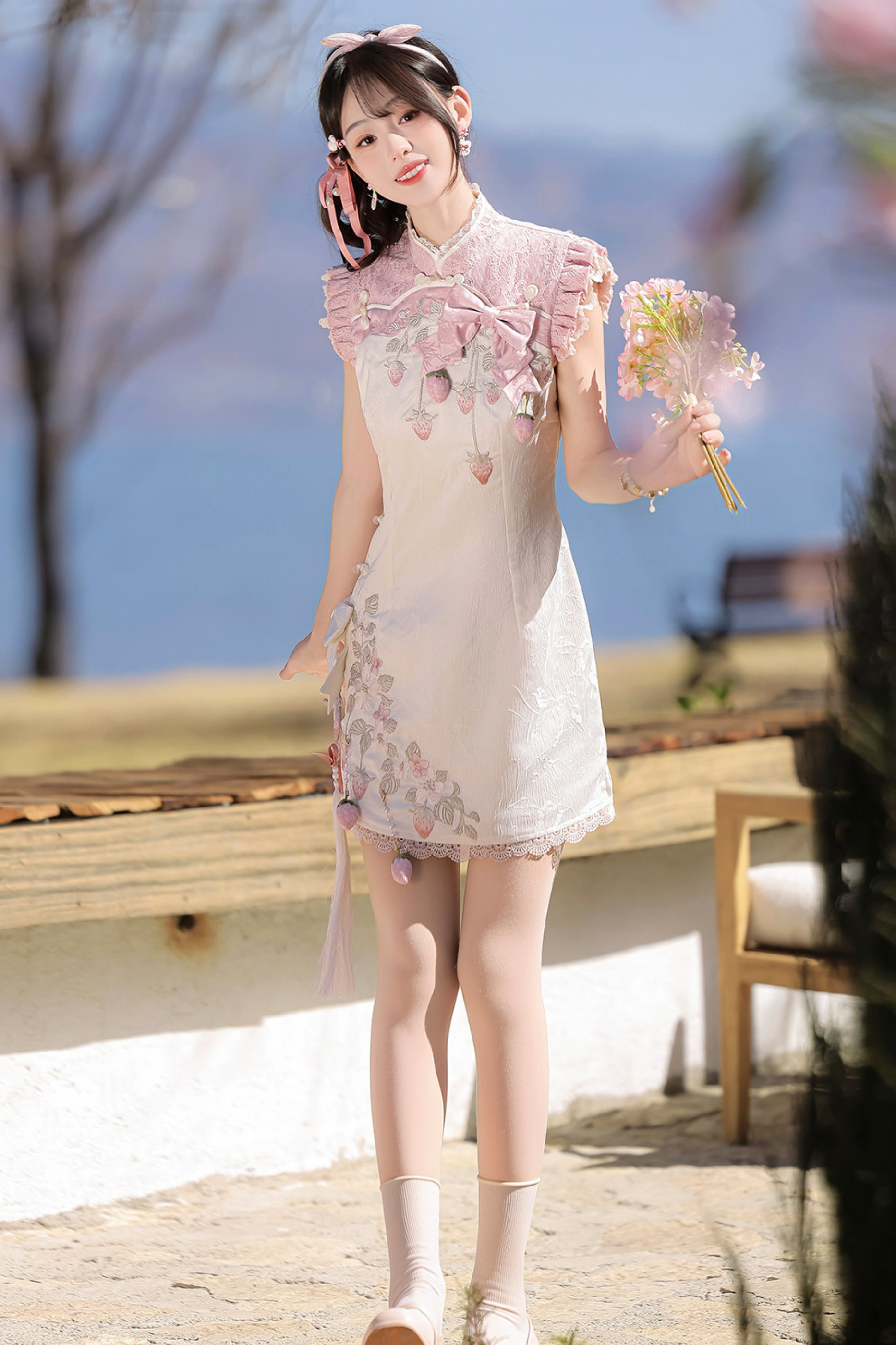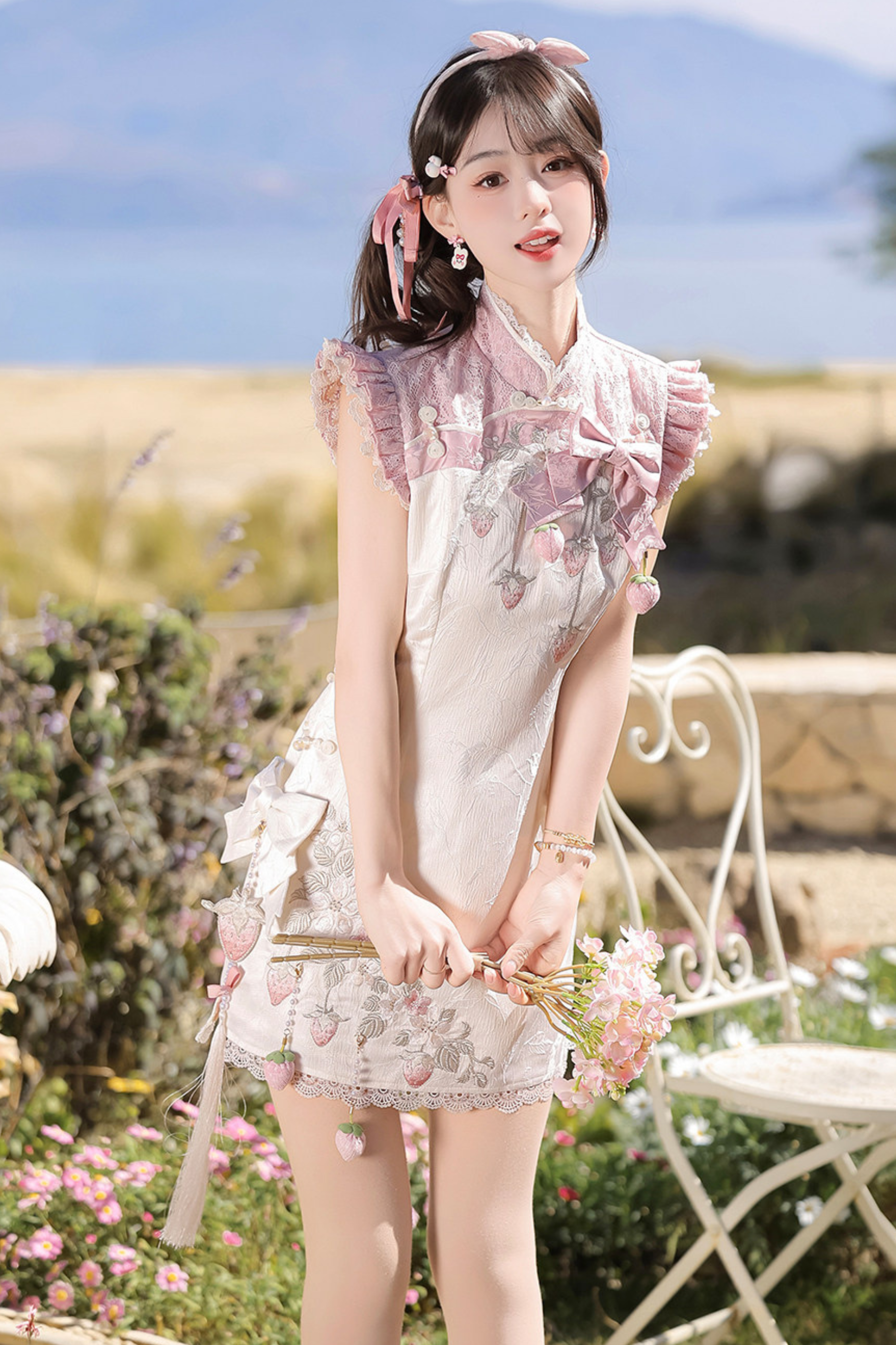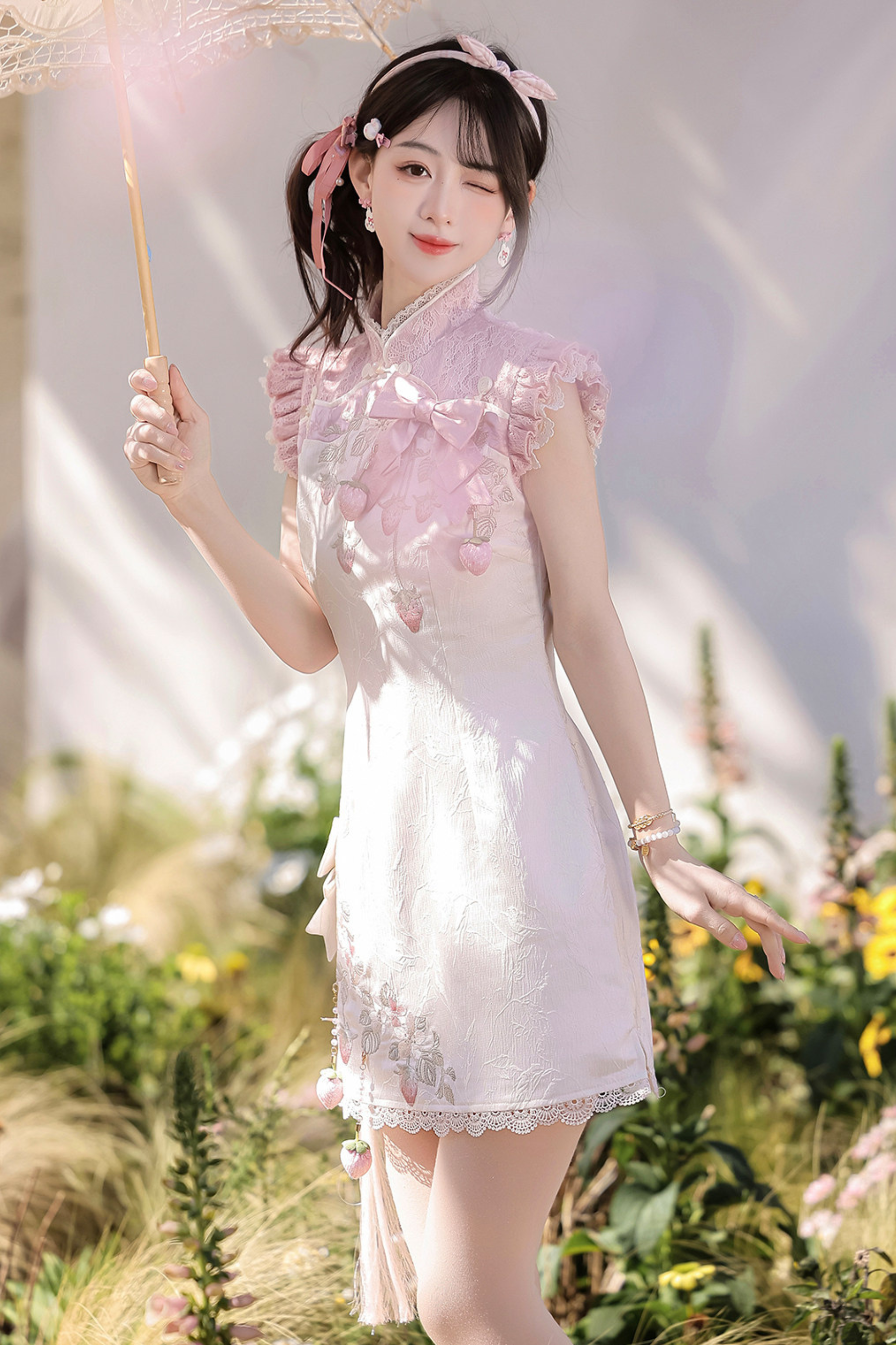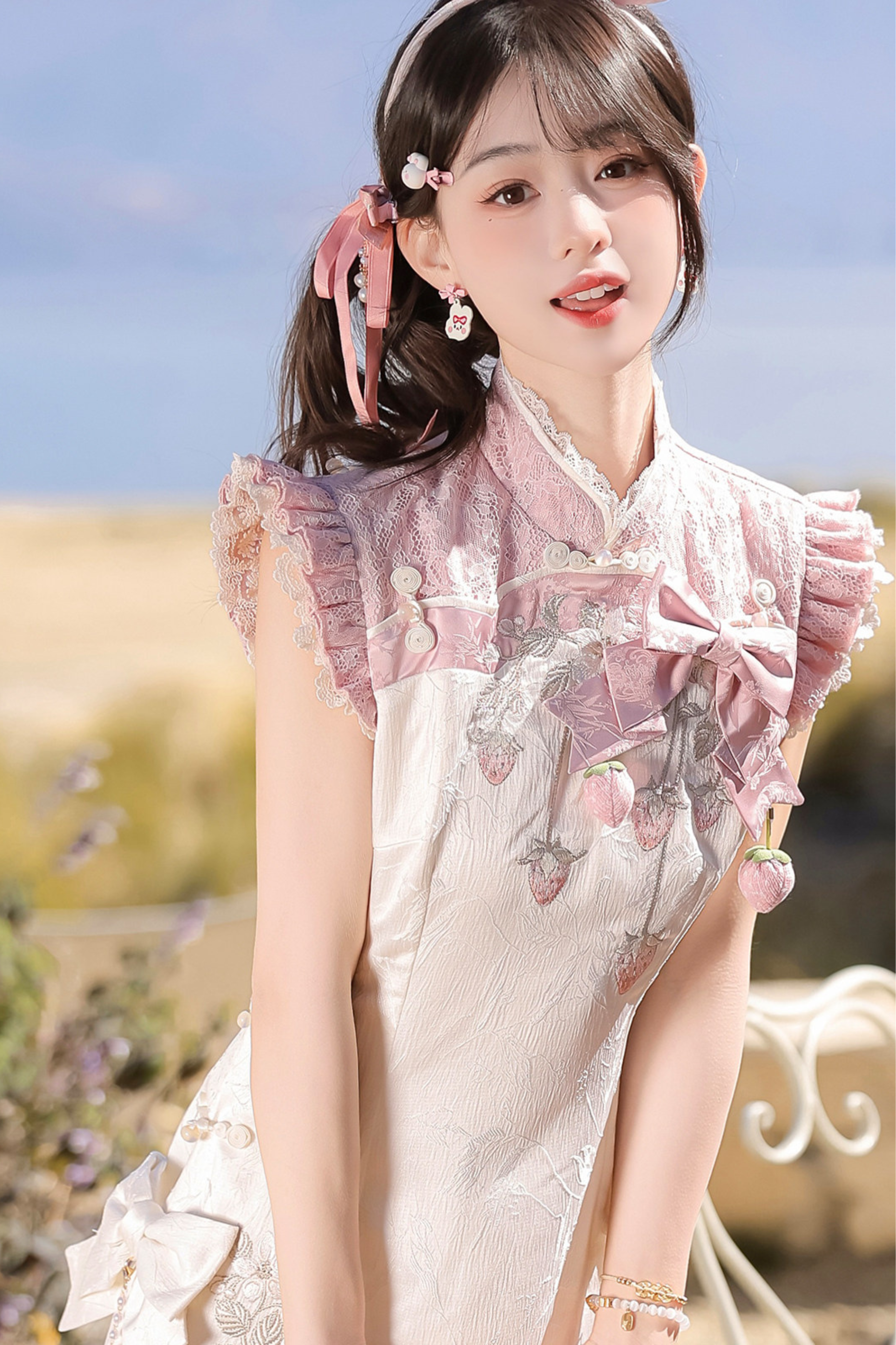 ストロベリースイートチャイナノースリーブドレス