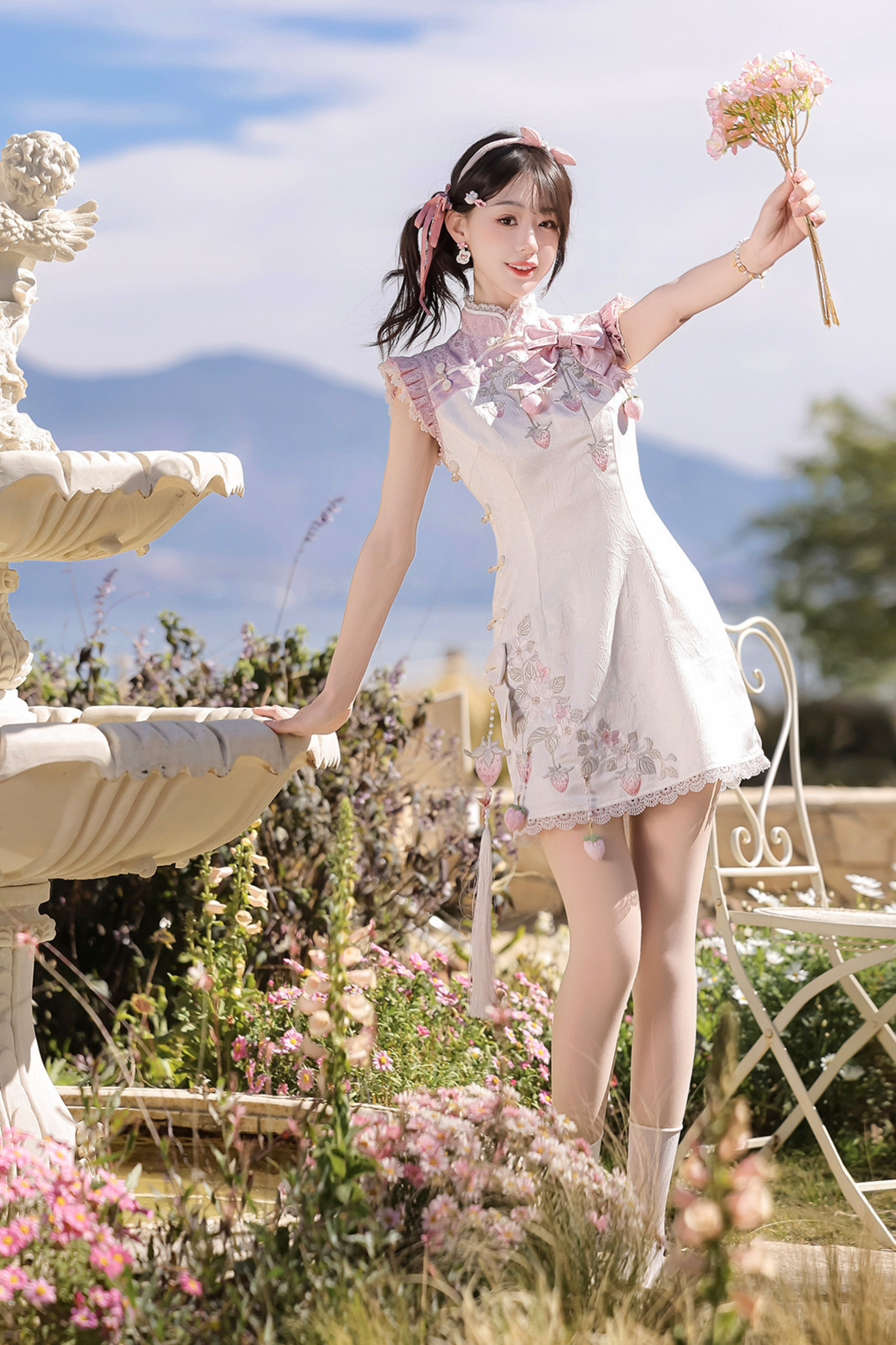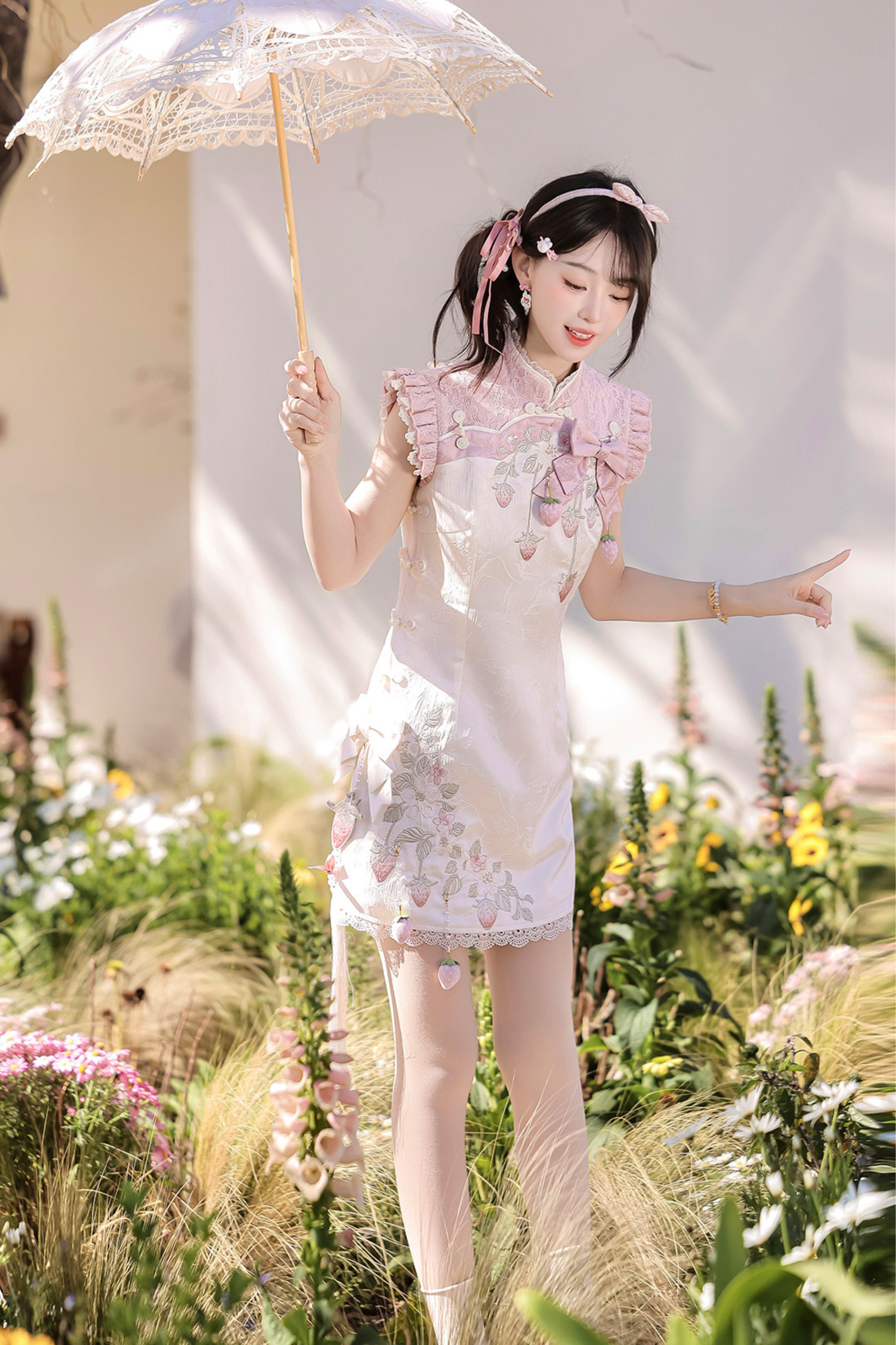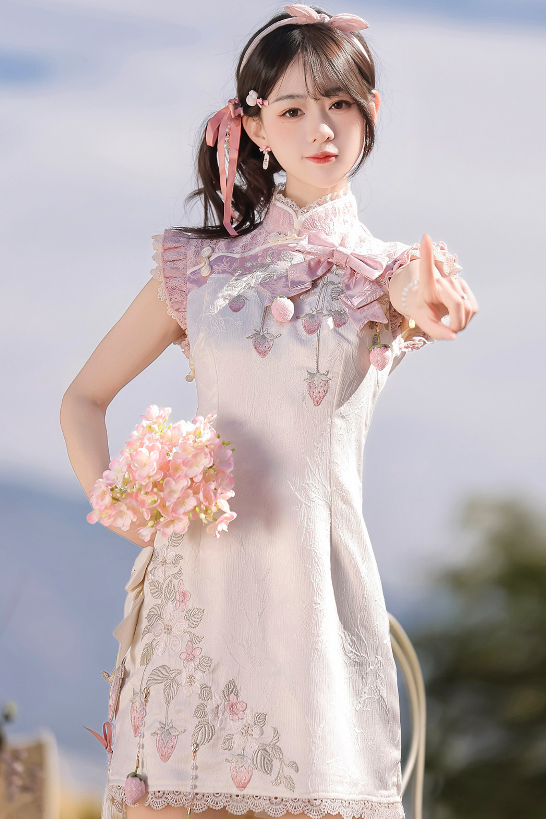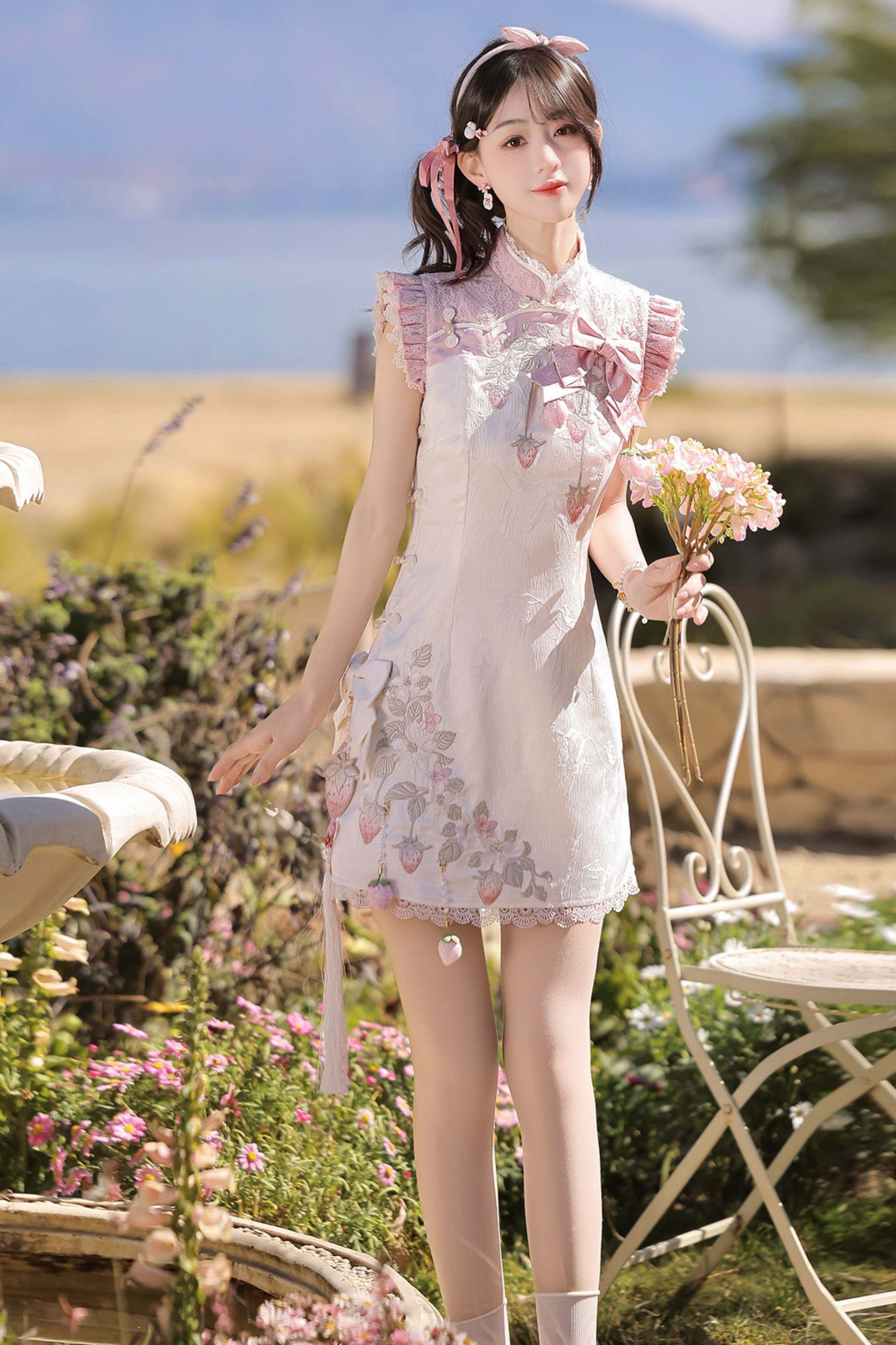 ストロベリースイートチャイナノースリーブドレス