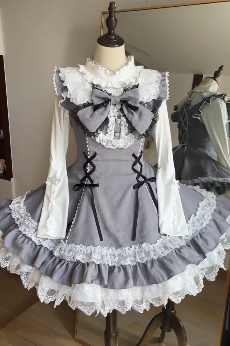 スイートロリータストライプジャンパースカートス+ラビットハット