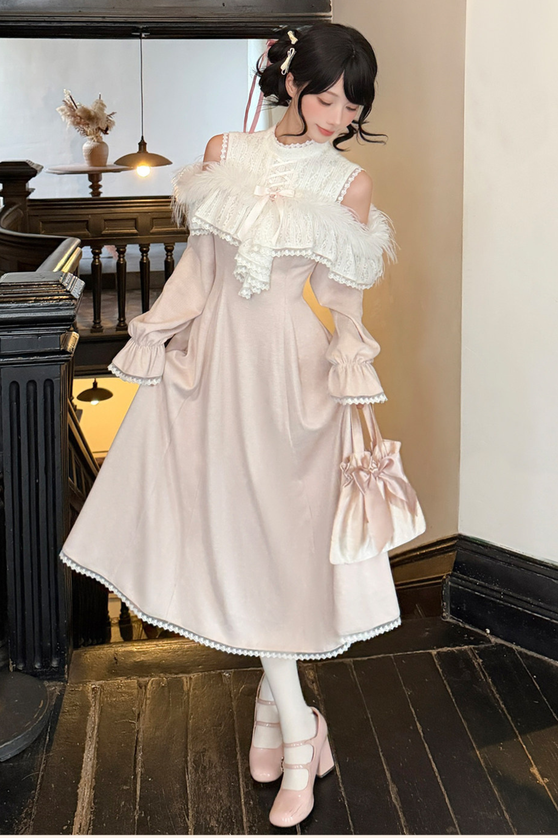 スウィートオフショルダーガーリードレス