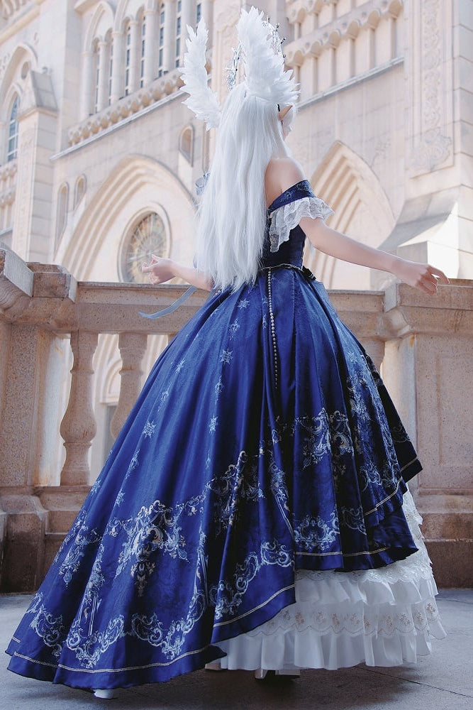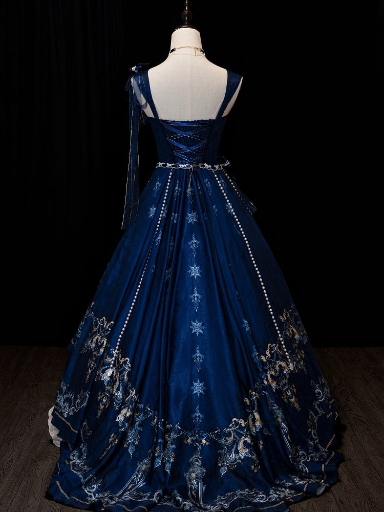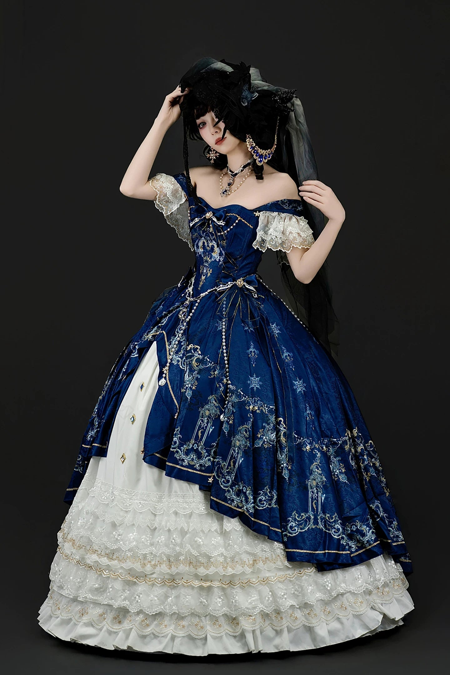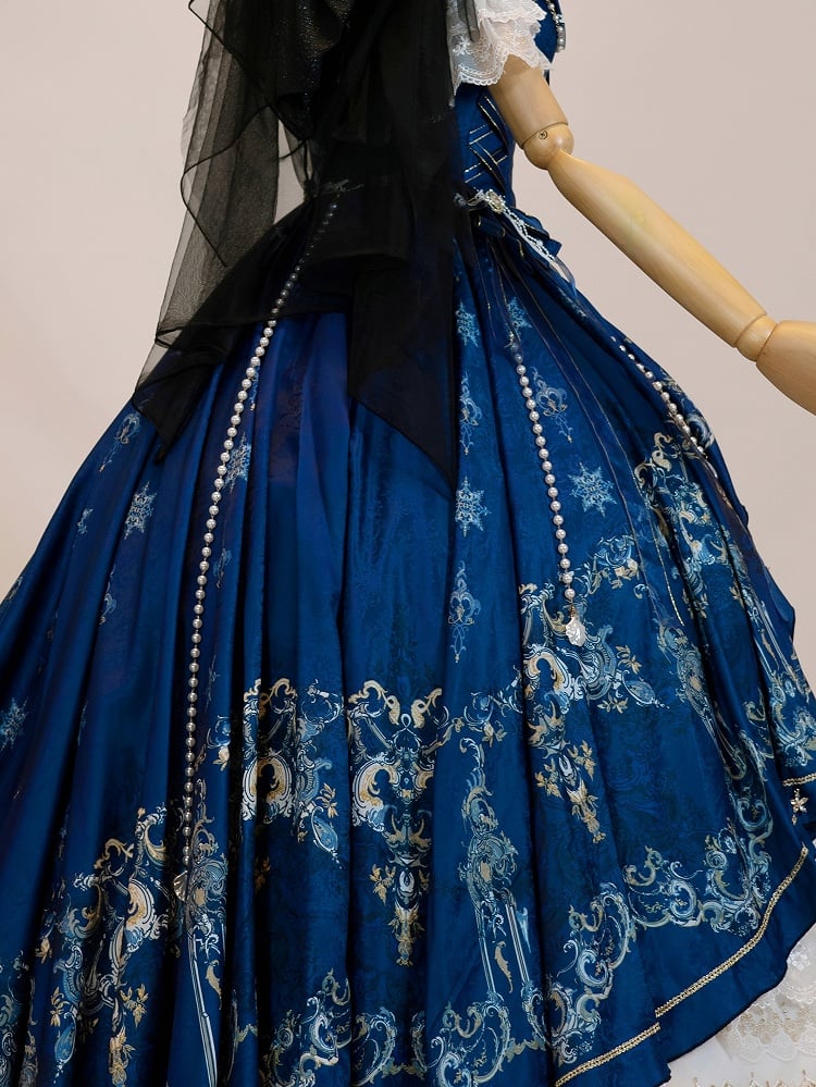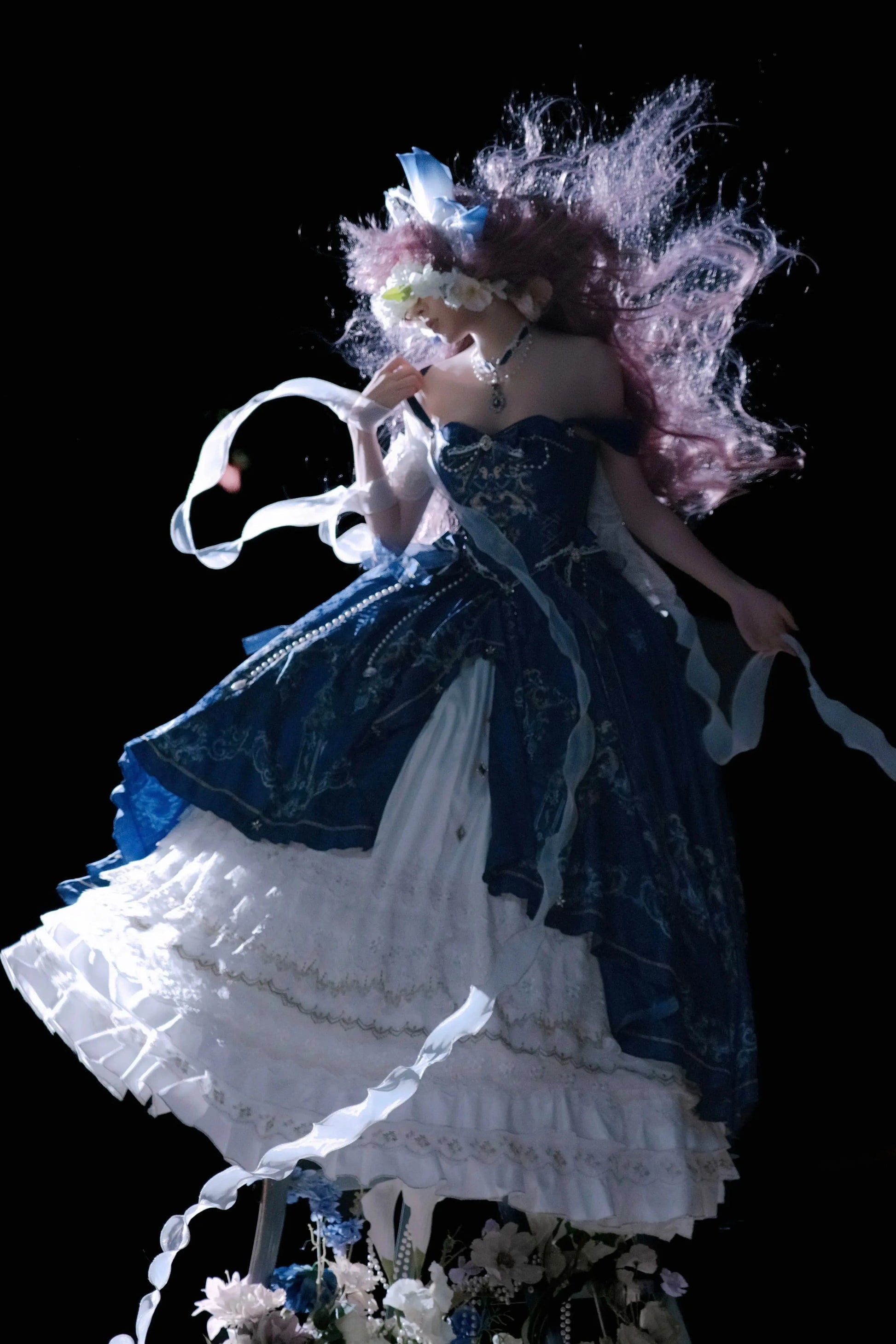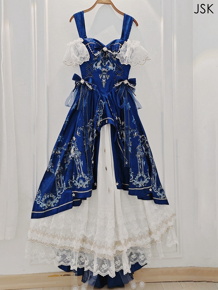 【5月3日予約締切】ダークブルーホワイトコルセットレースリボンロリータJKSプリンセスドレス+コンプリートセット