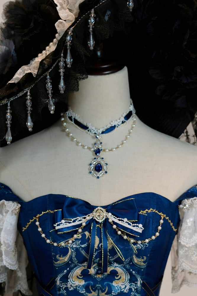 ❤︎【5月3日予約締切】ダークブルーホワイトコルセットレースリボンロリータJKSプリンセスドレス+コンプリートセット❤︎                                                ⚠️人気商品のためお届けに3-4ヶ月ほどかかってしまう場合がございます