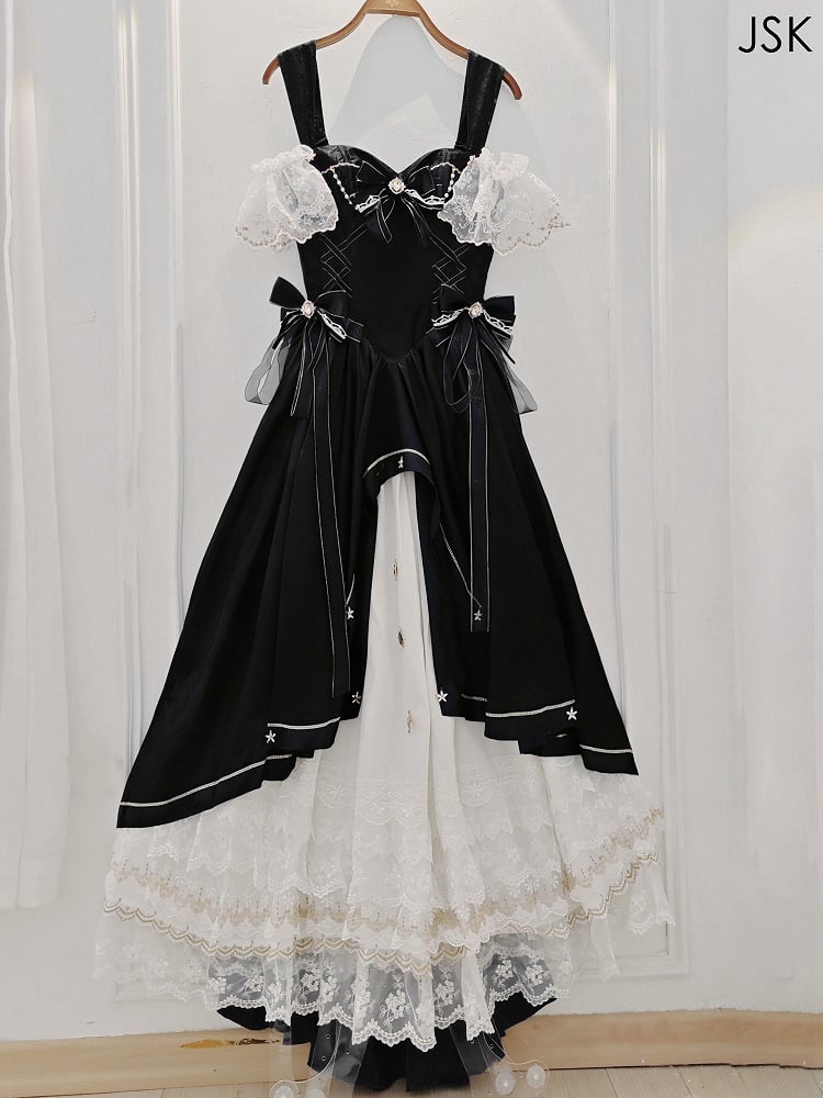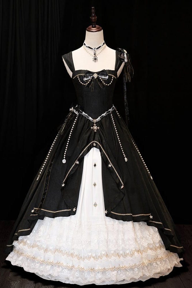 ❤︎【5月3日予約締切】ブラックホワイトコルセットレースリボンロリータJKSプリンセスドレス+コンプリートセット❤︎ ⚠️人気商品のためお届けに3-4ヶ月ほどかかってしまう場合がございます