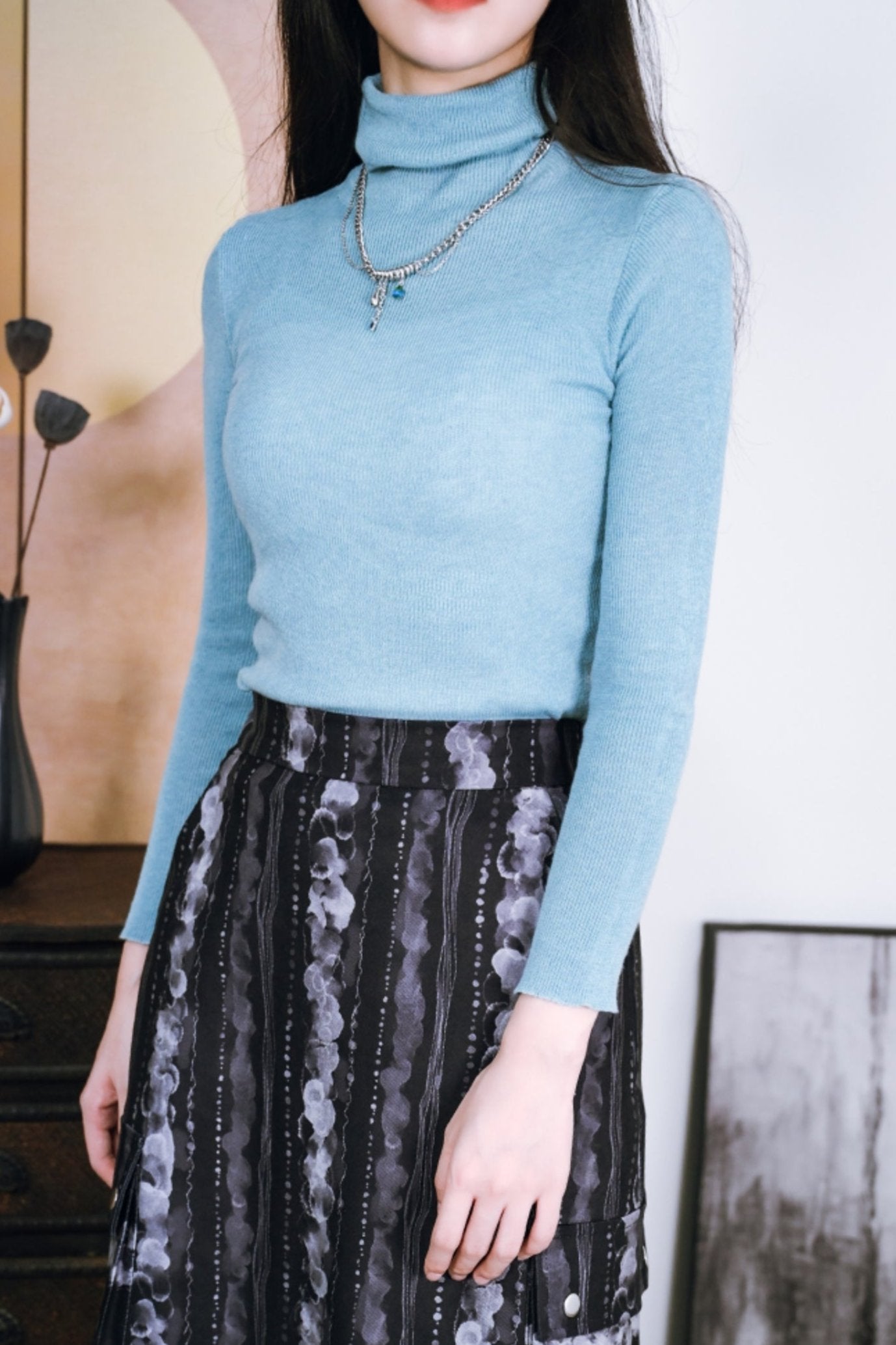 ハイネックブラックスリムロングスリーブシャツ