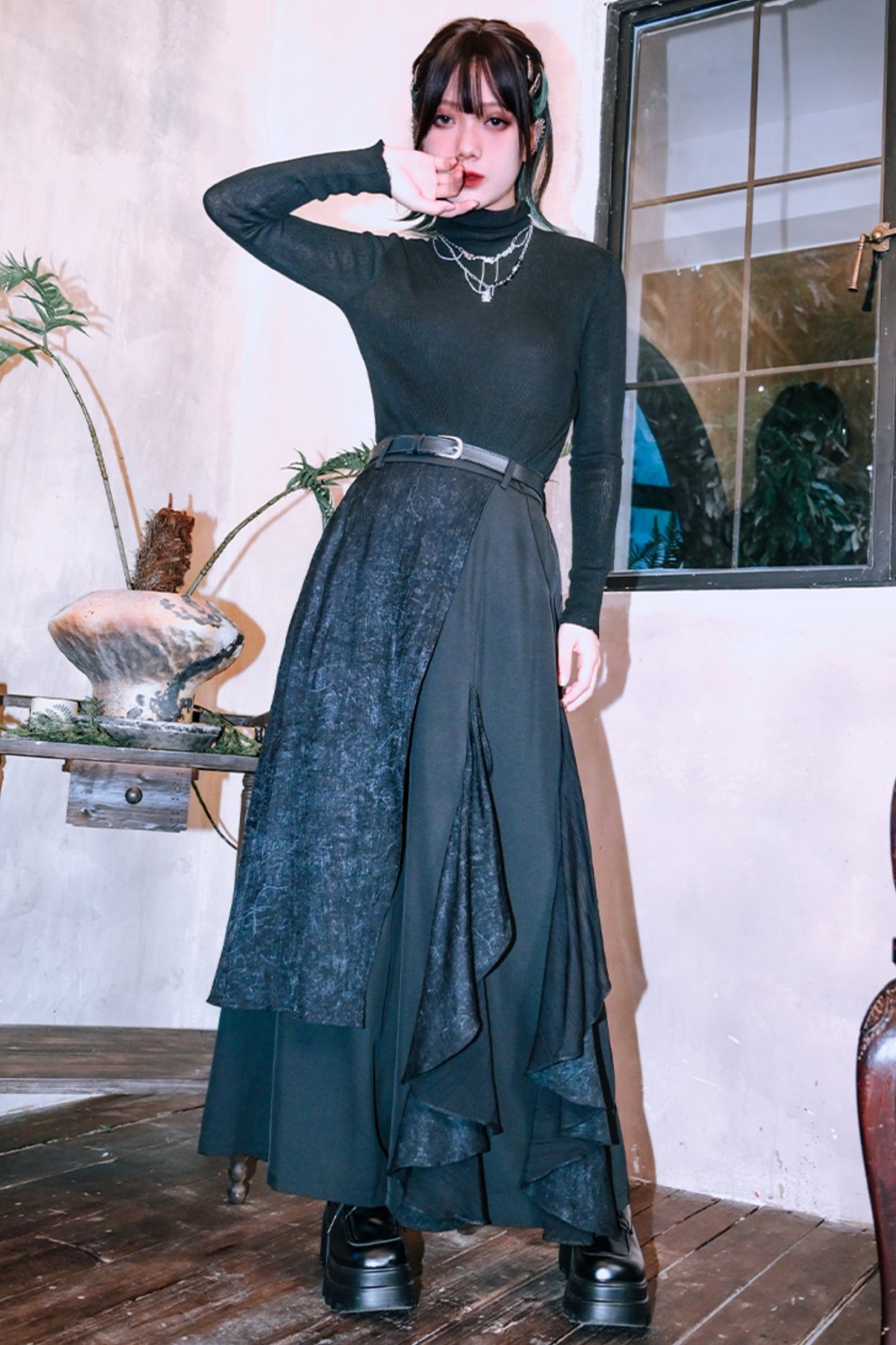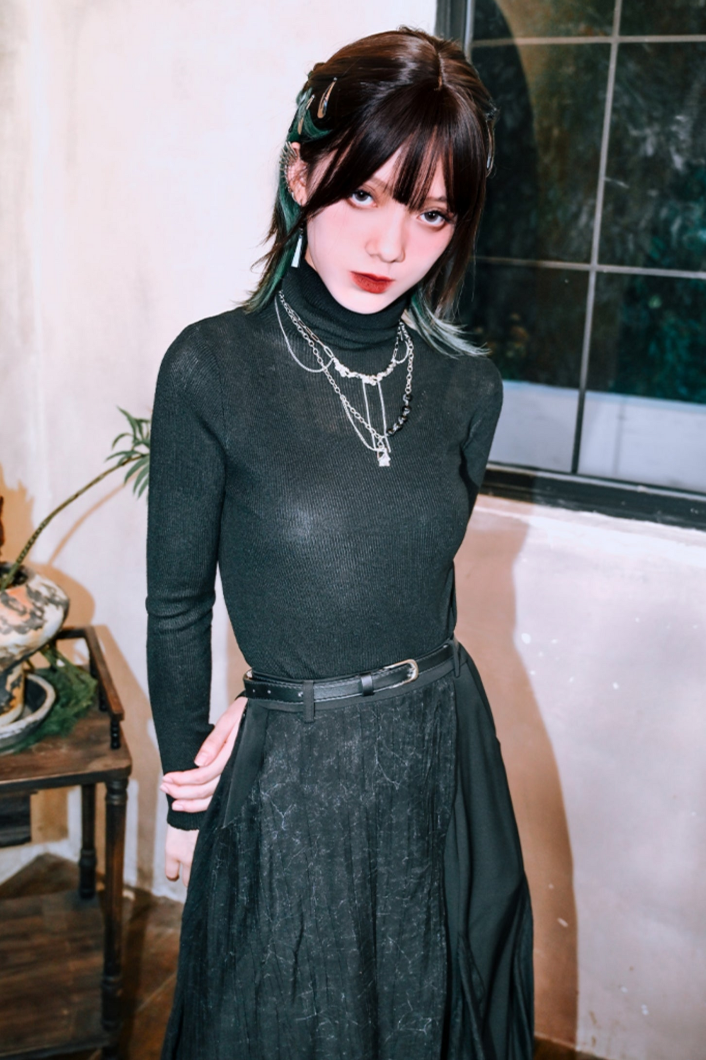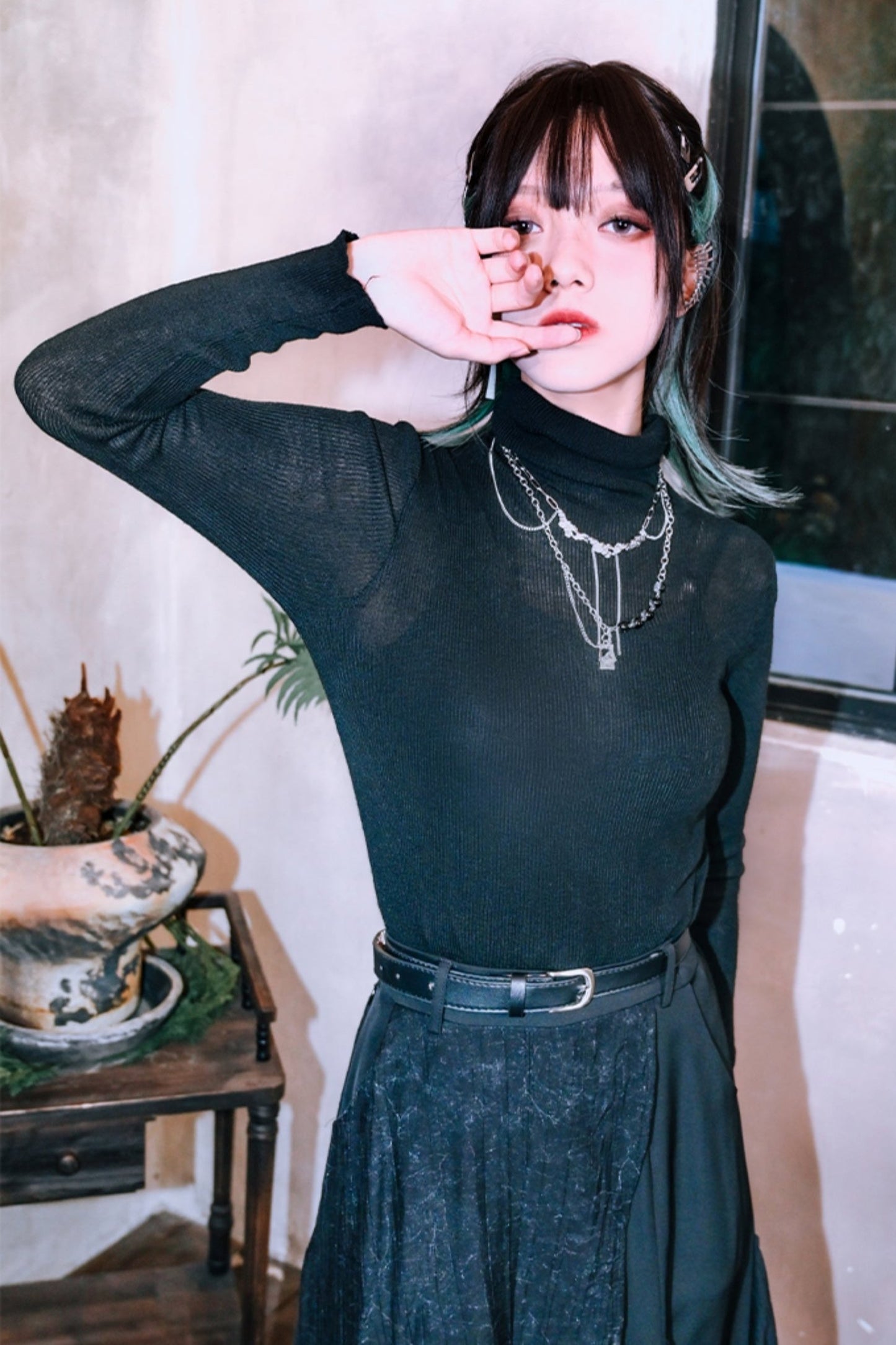 ❤︎ハイネックブラックスリムロングスリーブシャツ❤︎