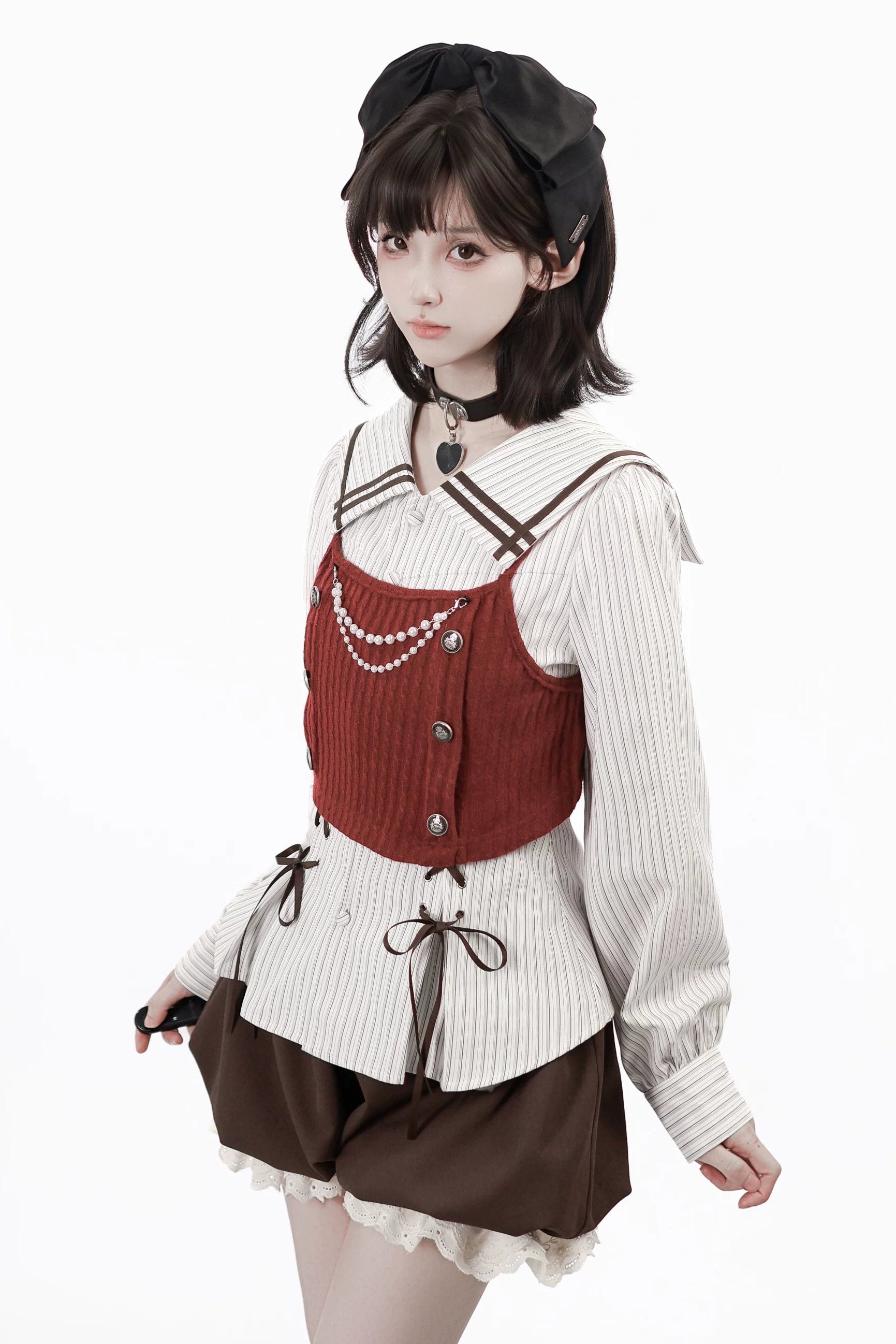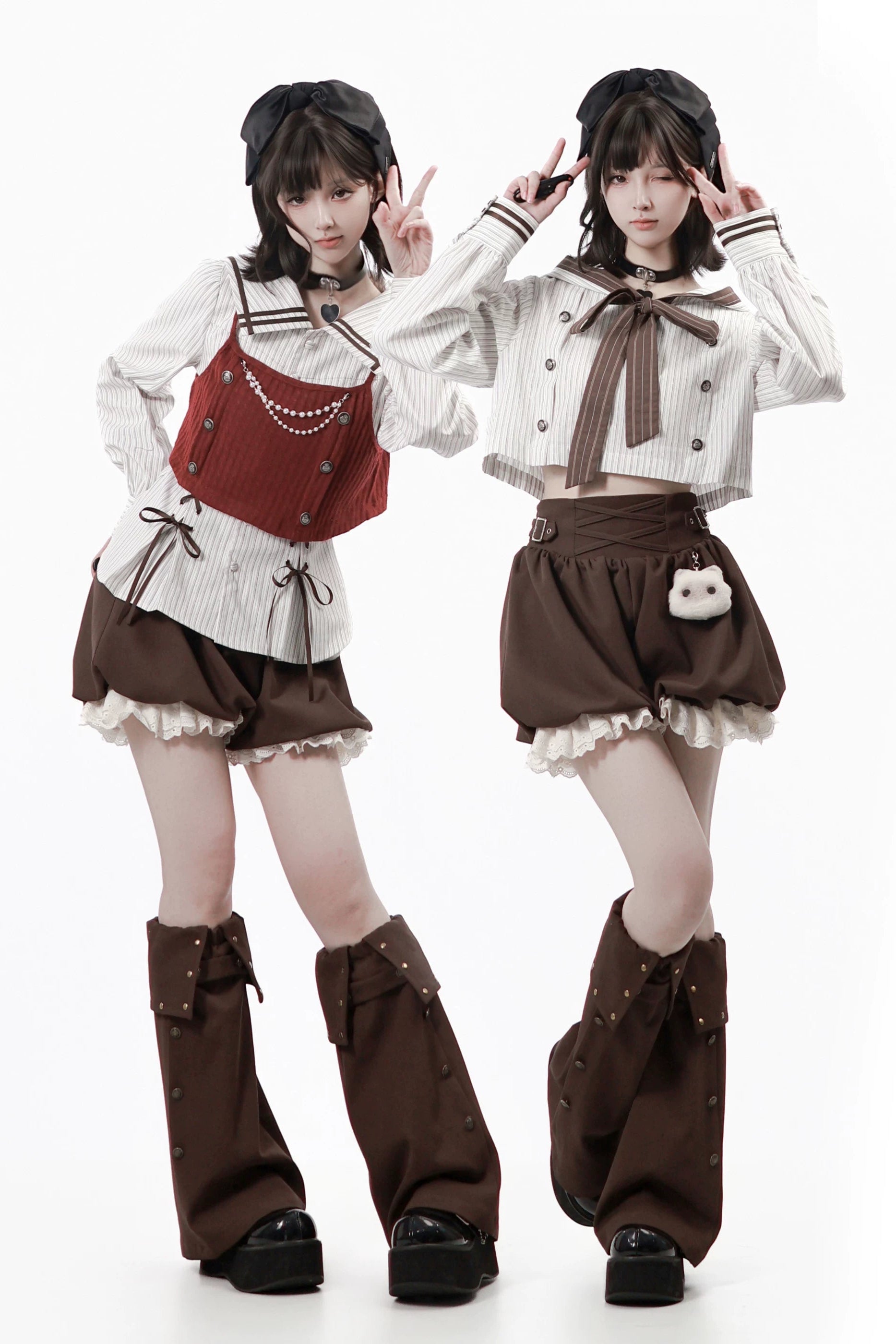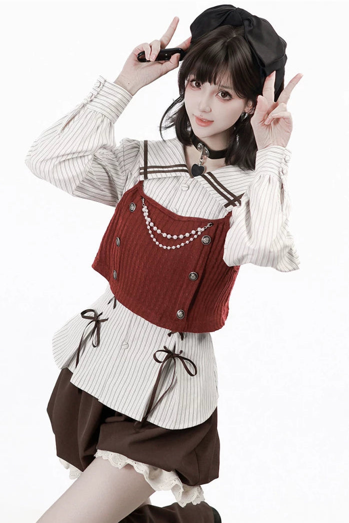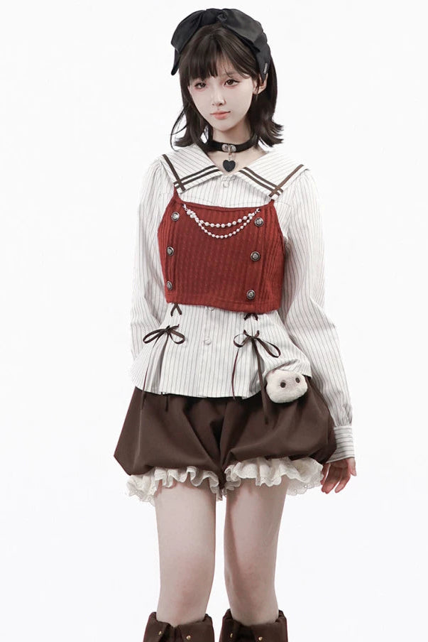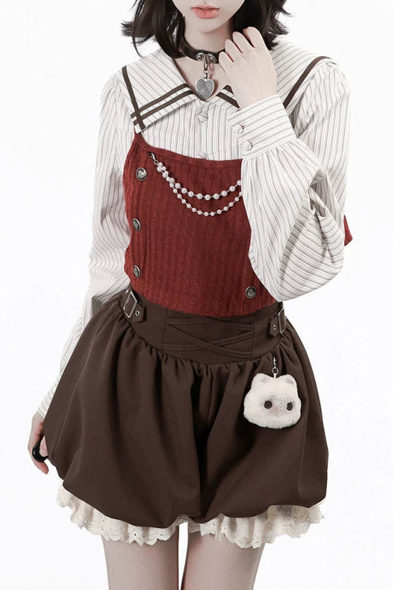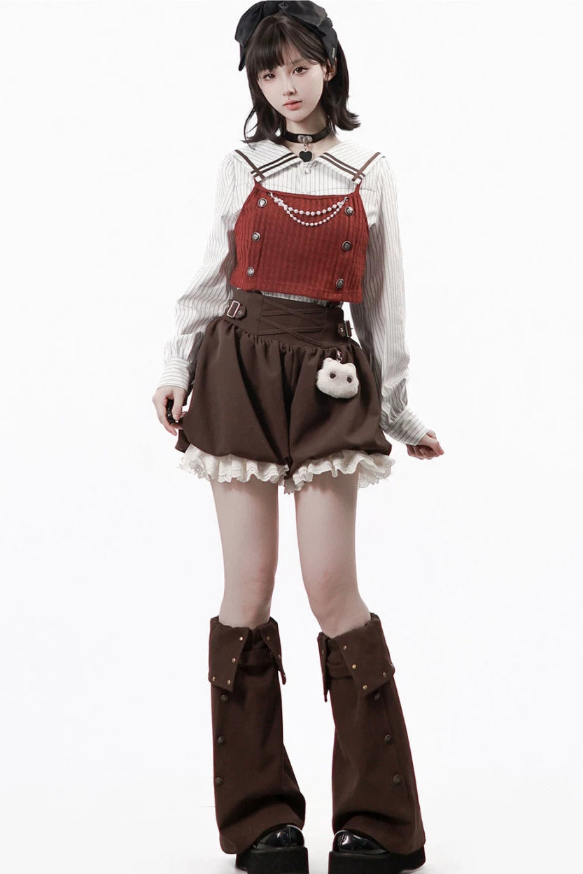 ❤フードトップス+シャツ+スカート+レッグウォーマー+ベスト❤