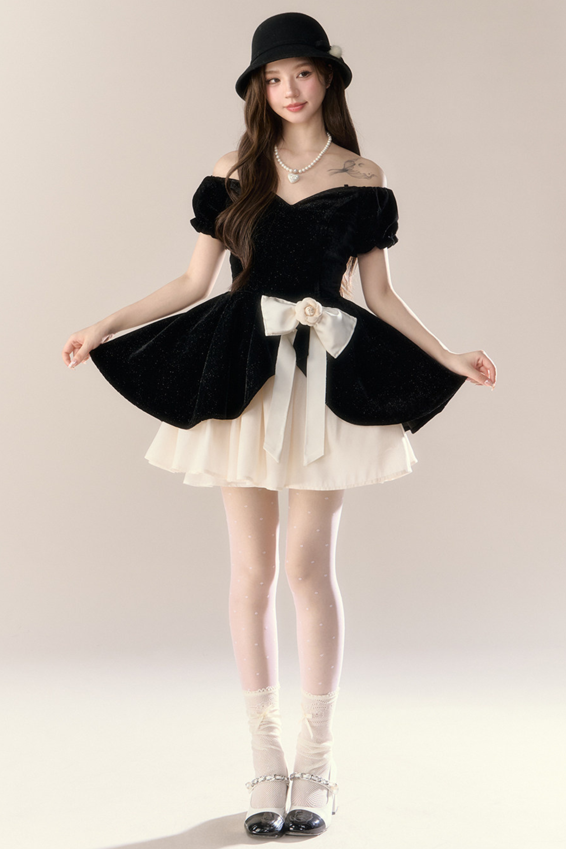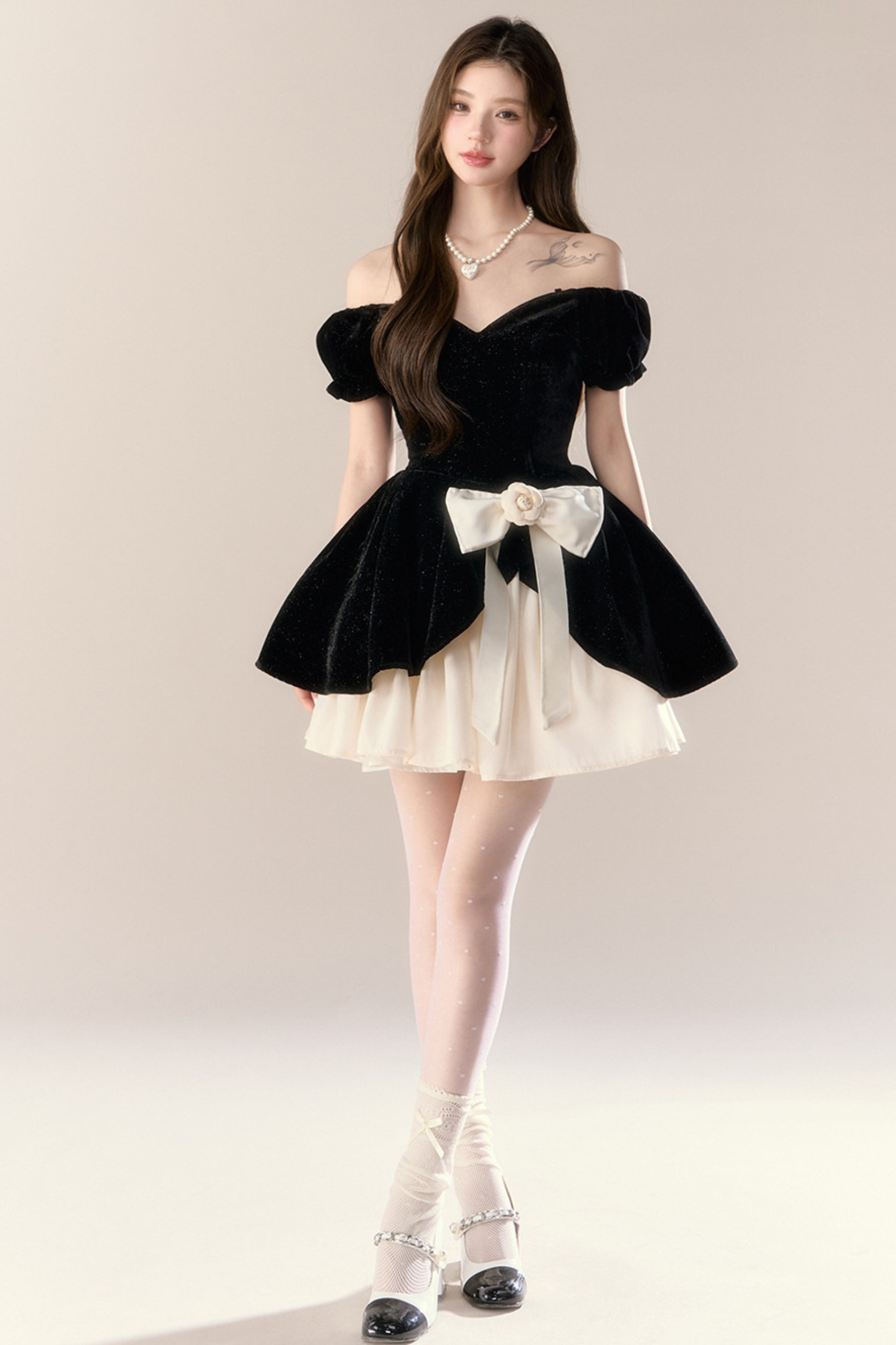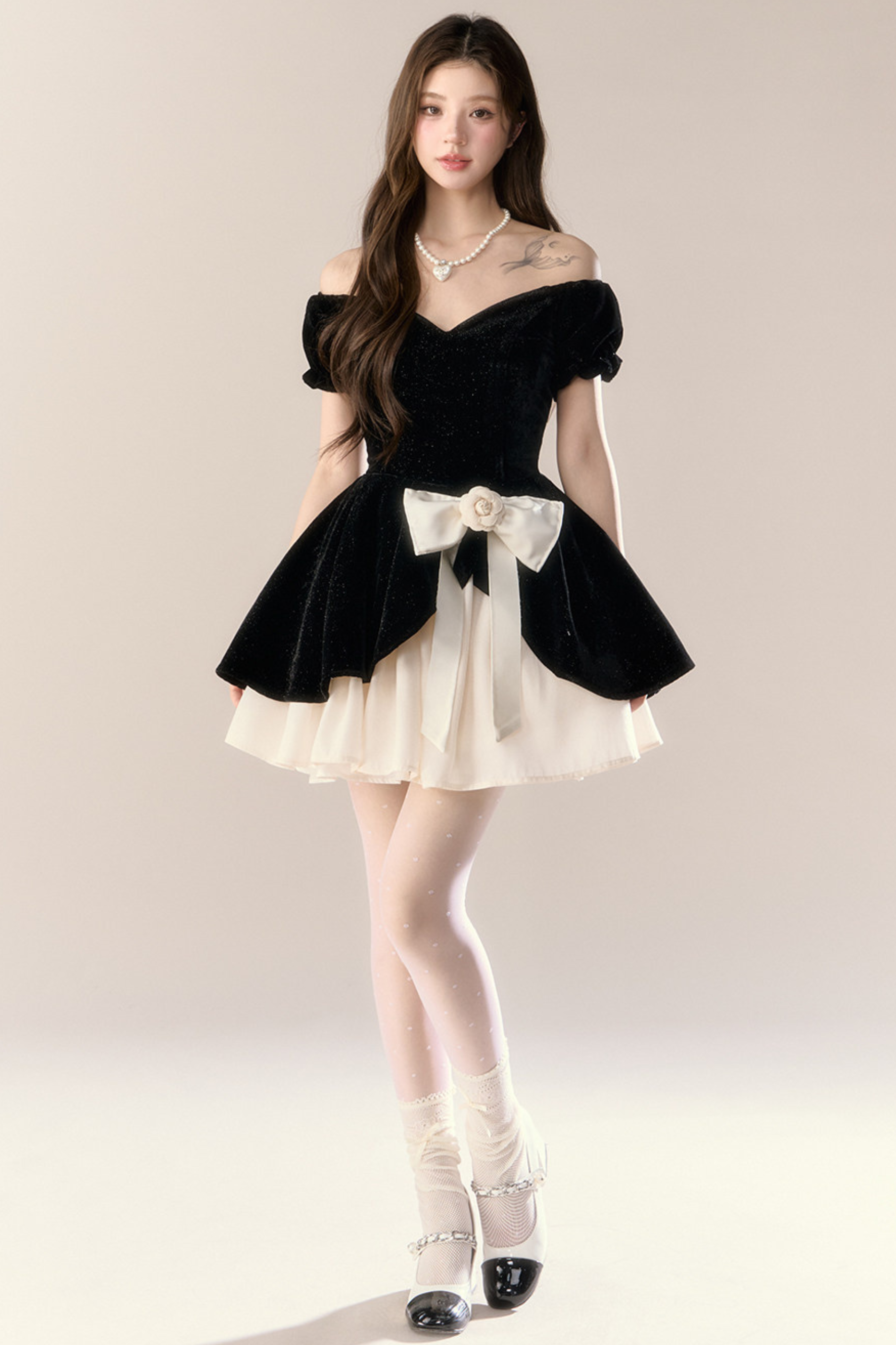 ベルベットシックガーリーフレンチバンケットドレス
