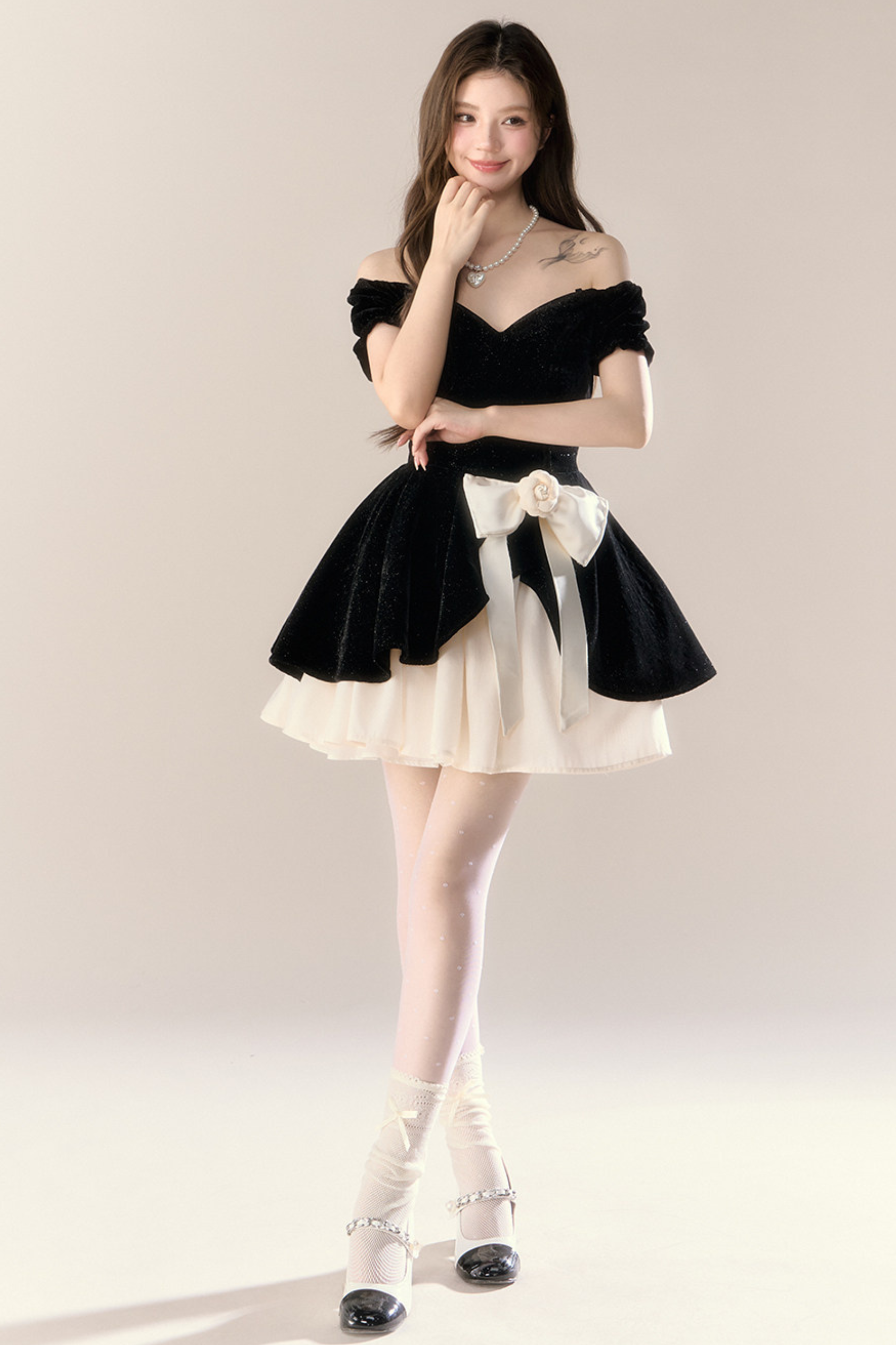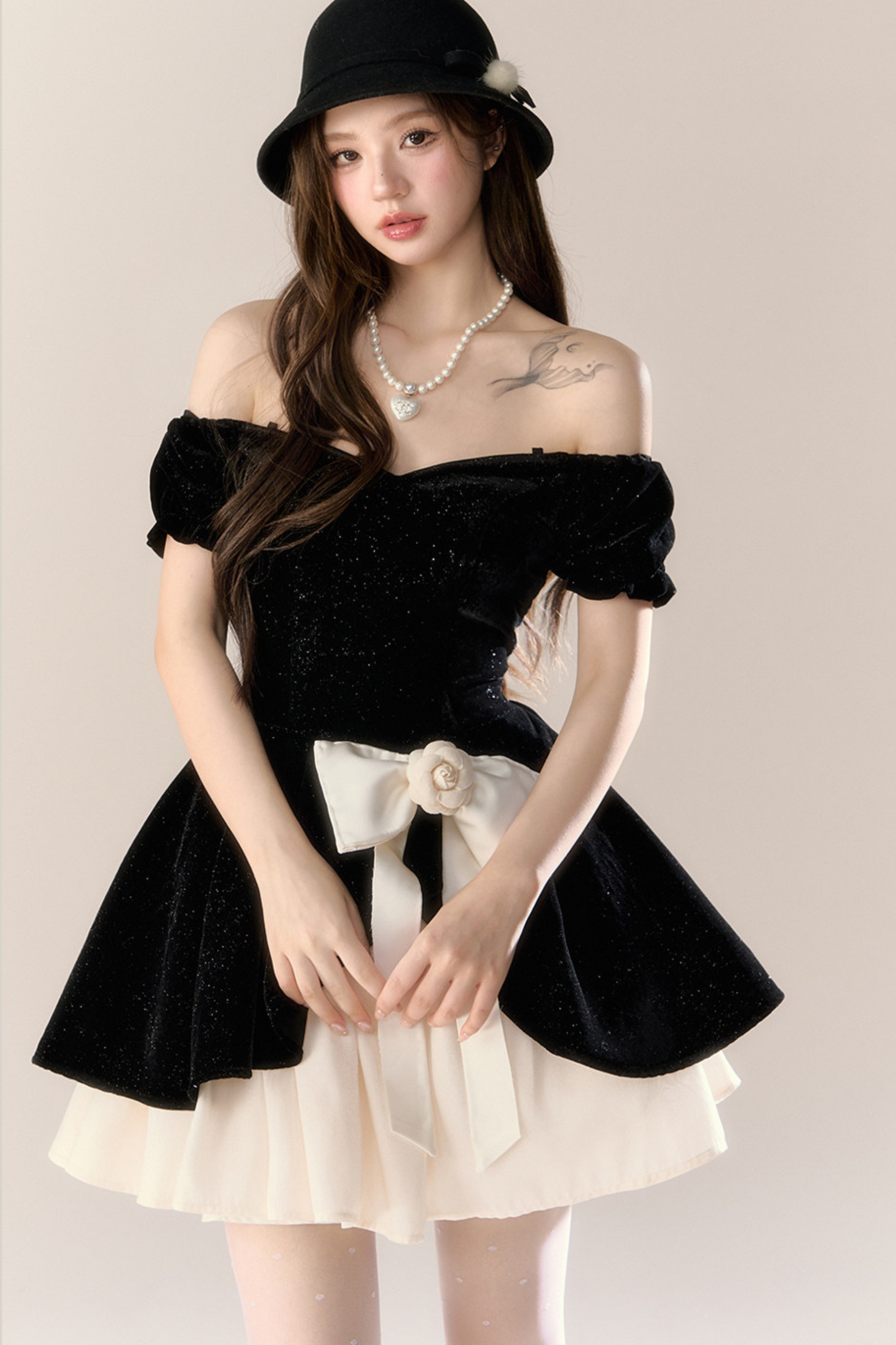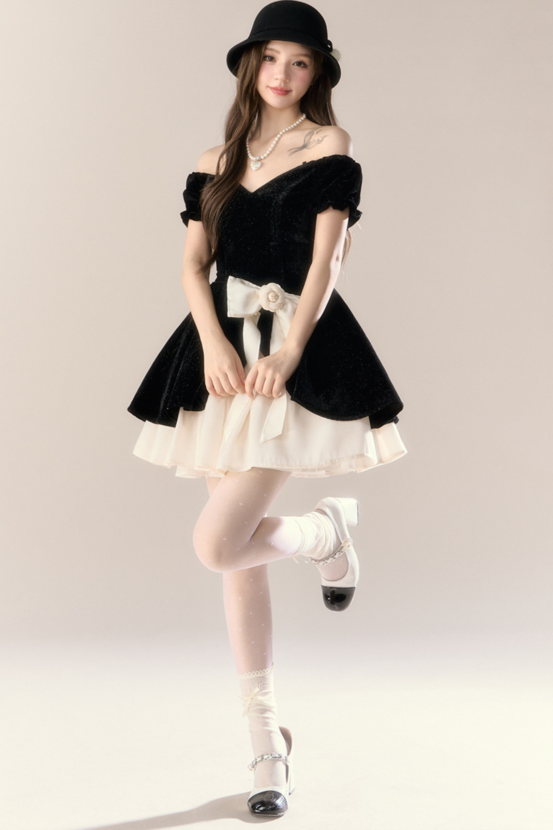 ベルベットシックガーリーフレンチバンケットドレス