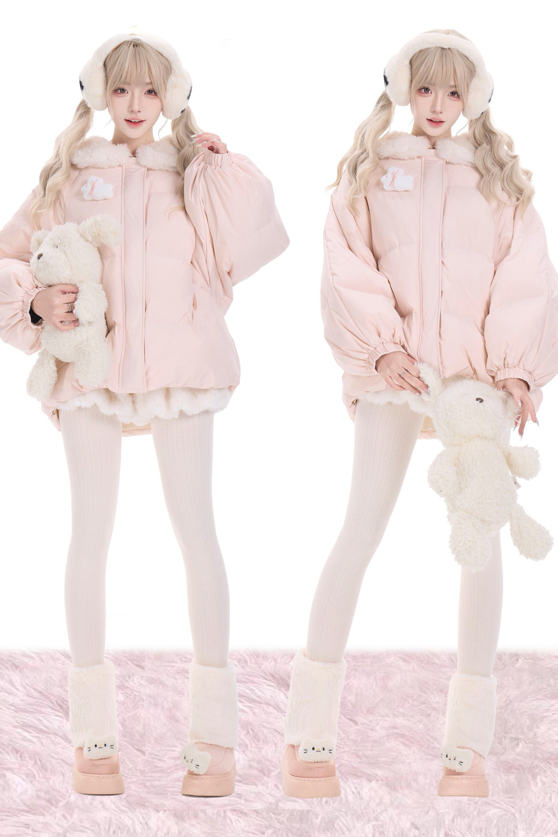 スイートスノーラビットダウンジャケット+ショートパンツ