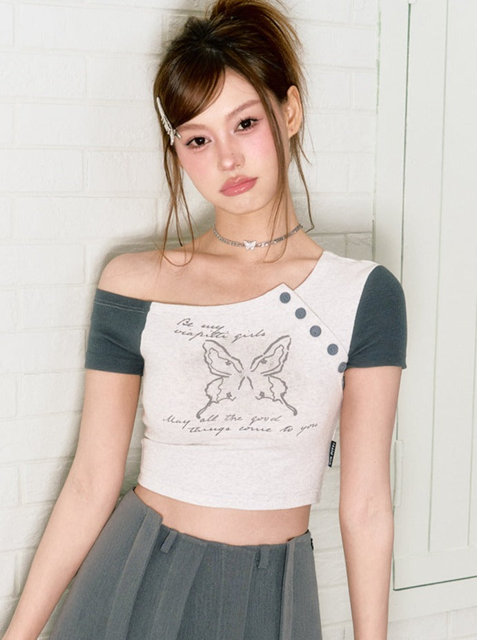 バタフラアシメスリムショートトップス