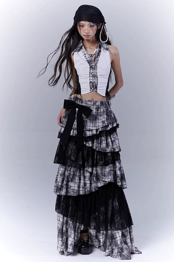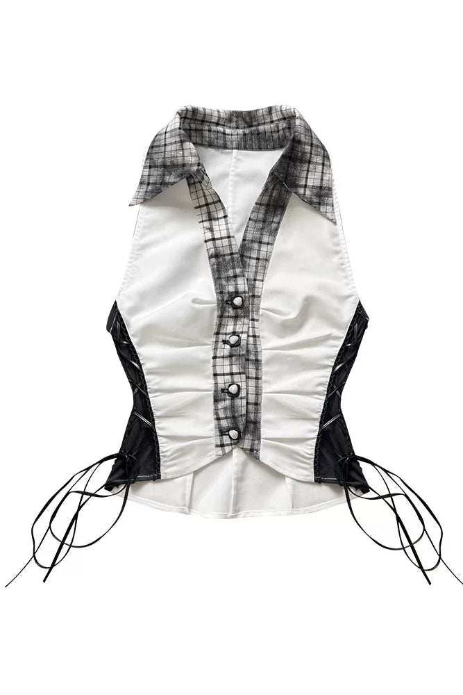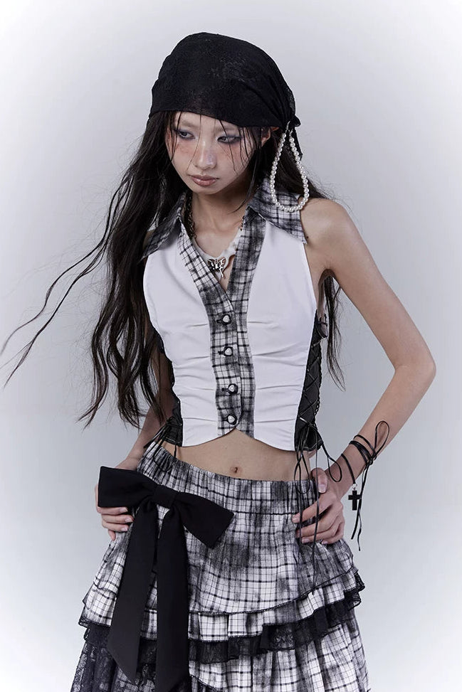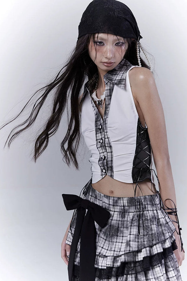 Y2Kダークパッチワークベストトップス