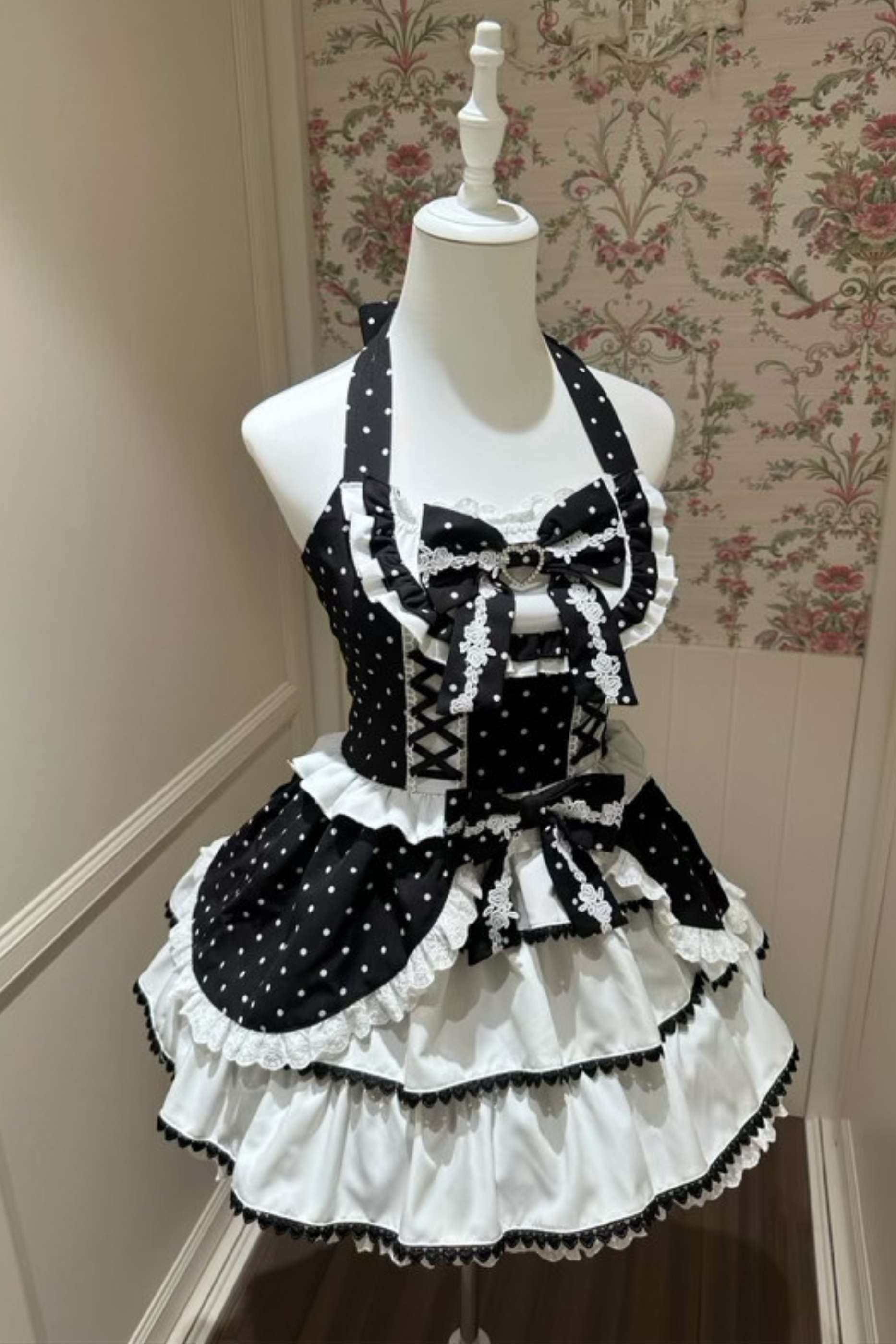 ヴィンテージスイートハートドットドレス+インナートップス