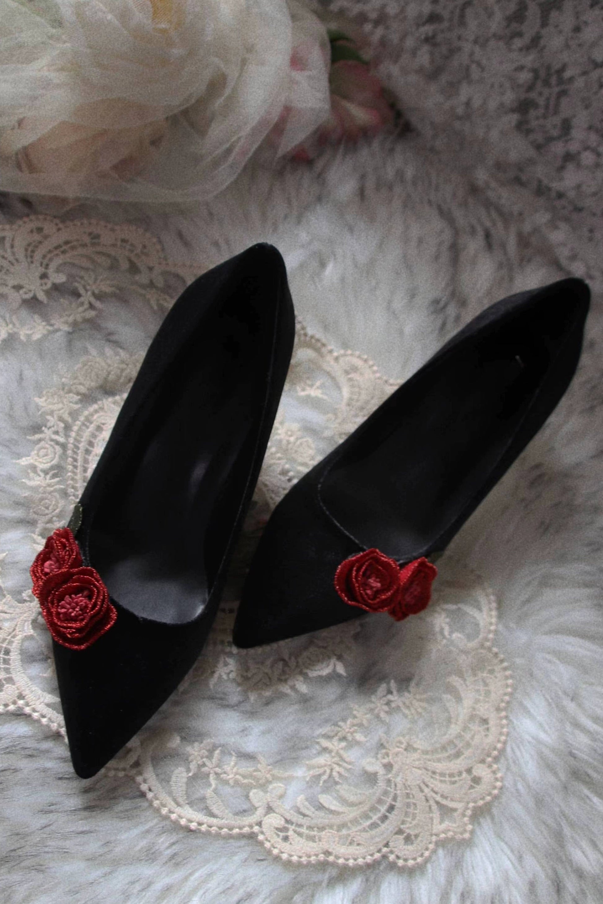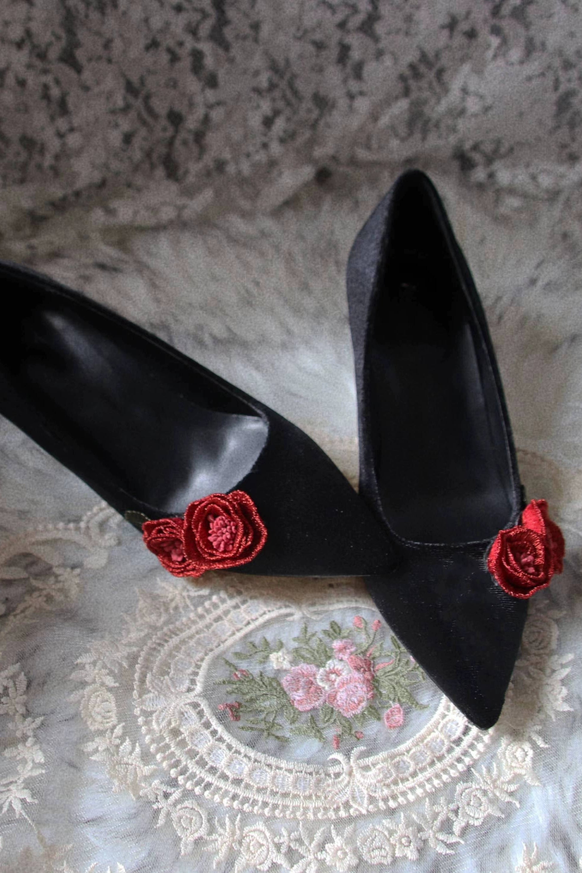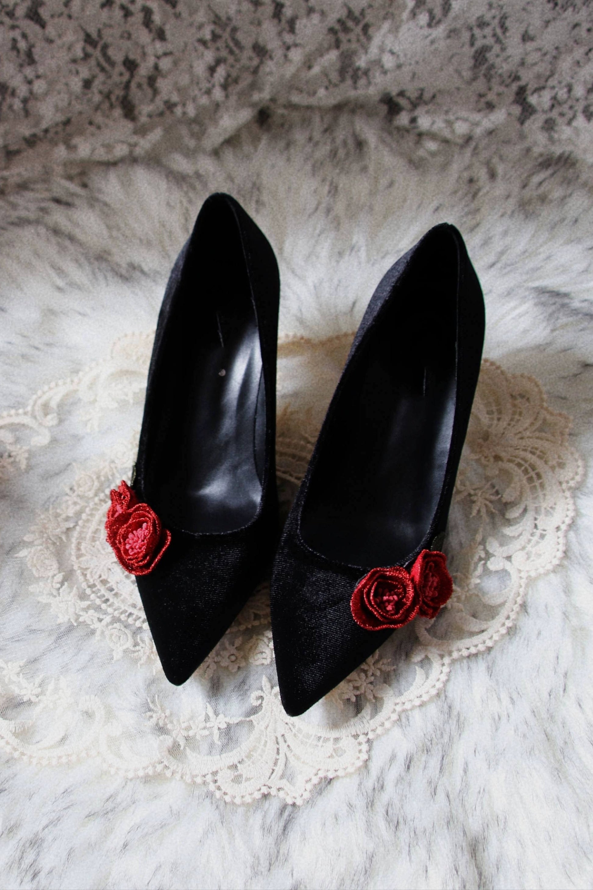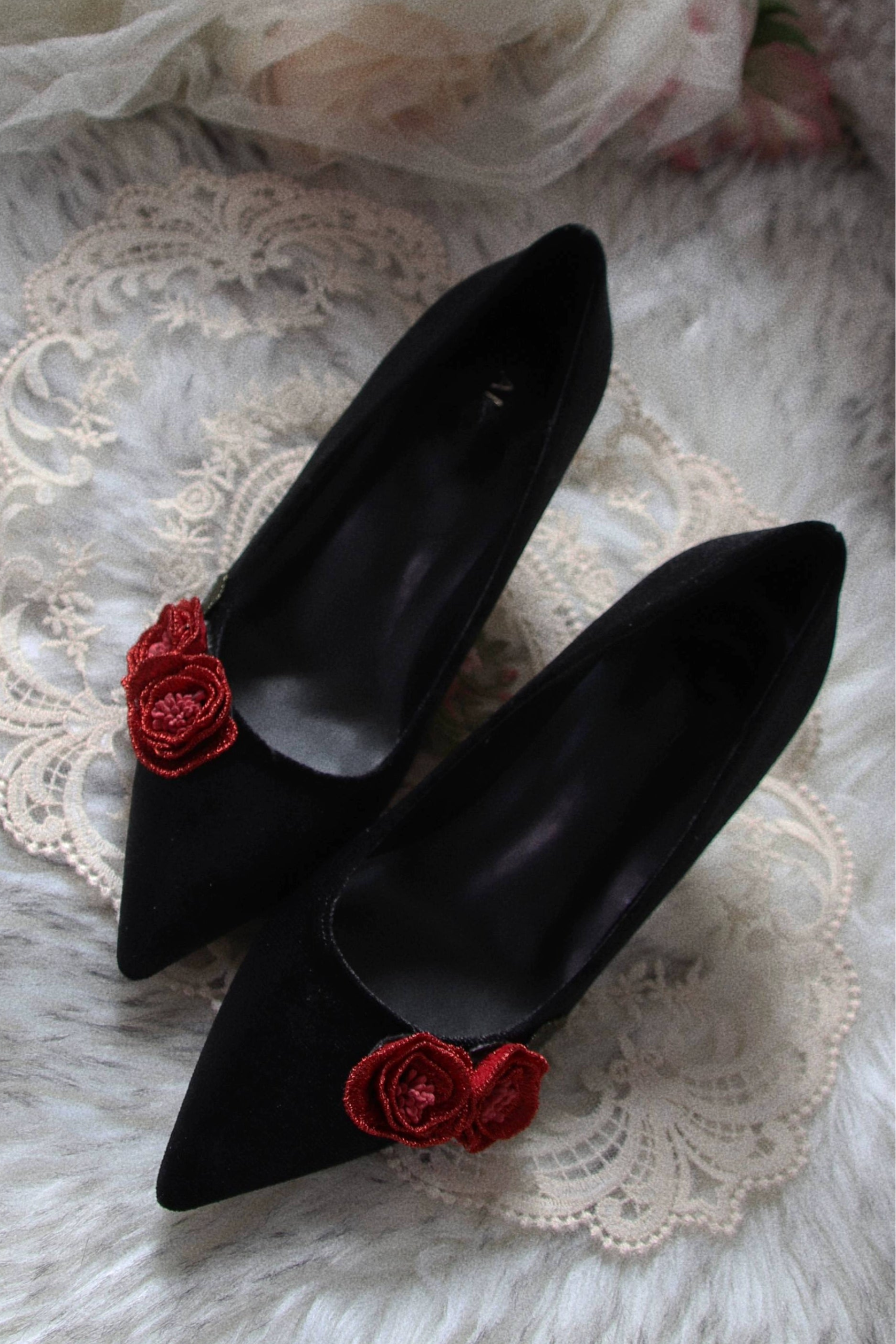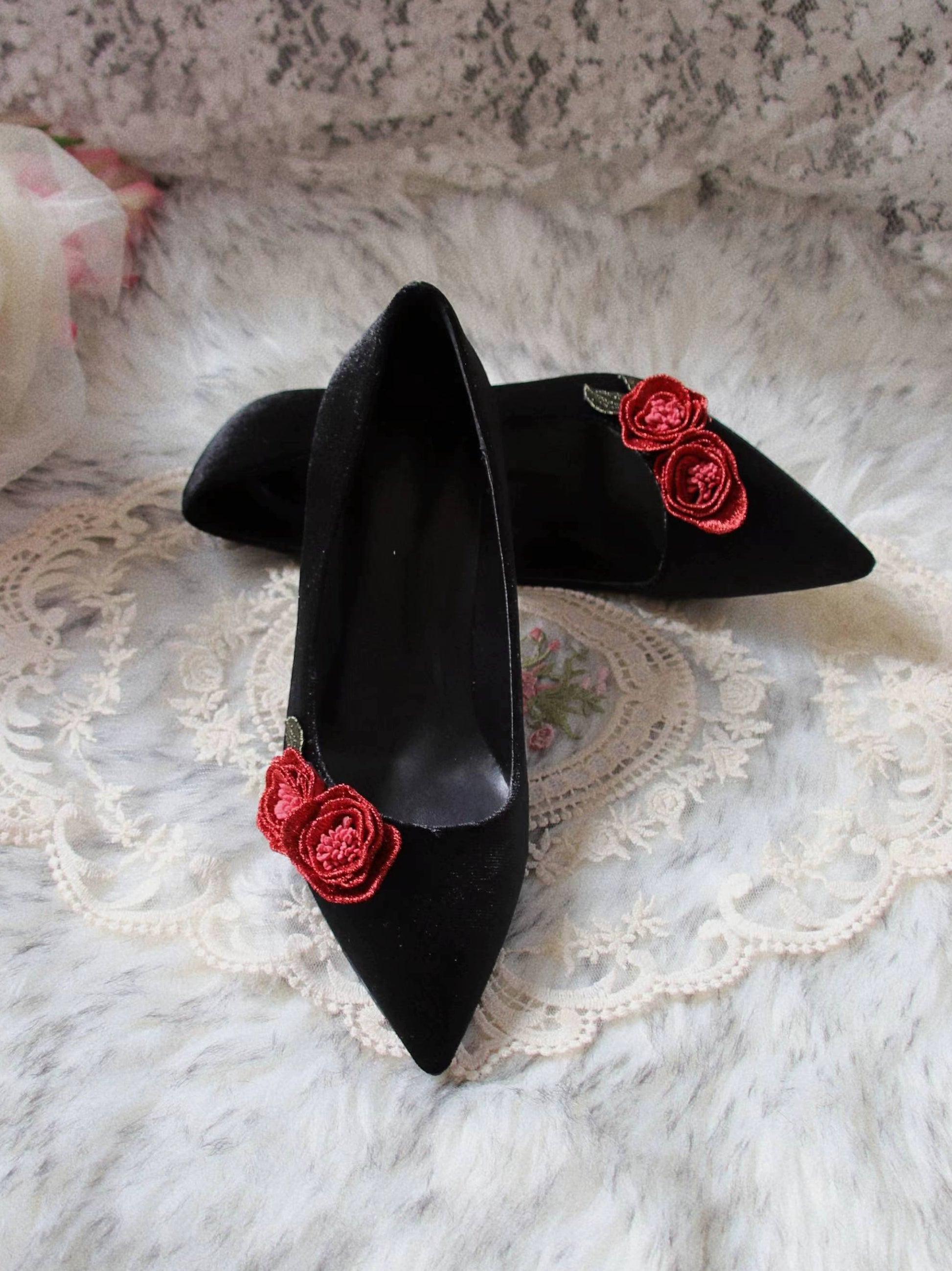 ❤ローズストーリーレトロポインテッドトゥレザーベルベットヒール❤