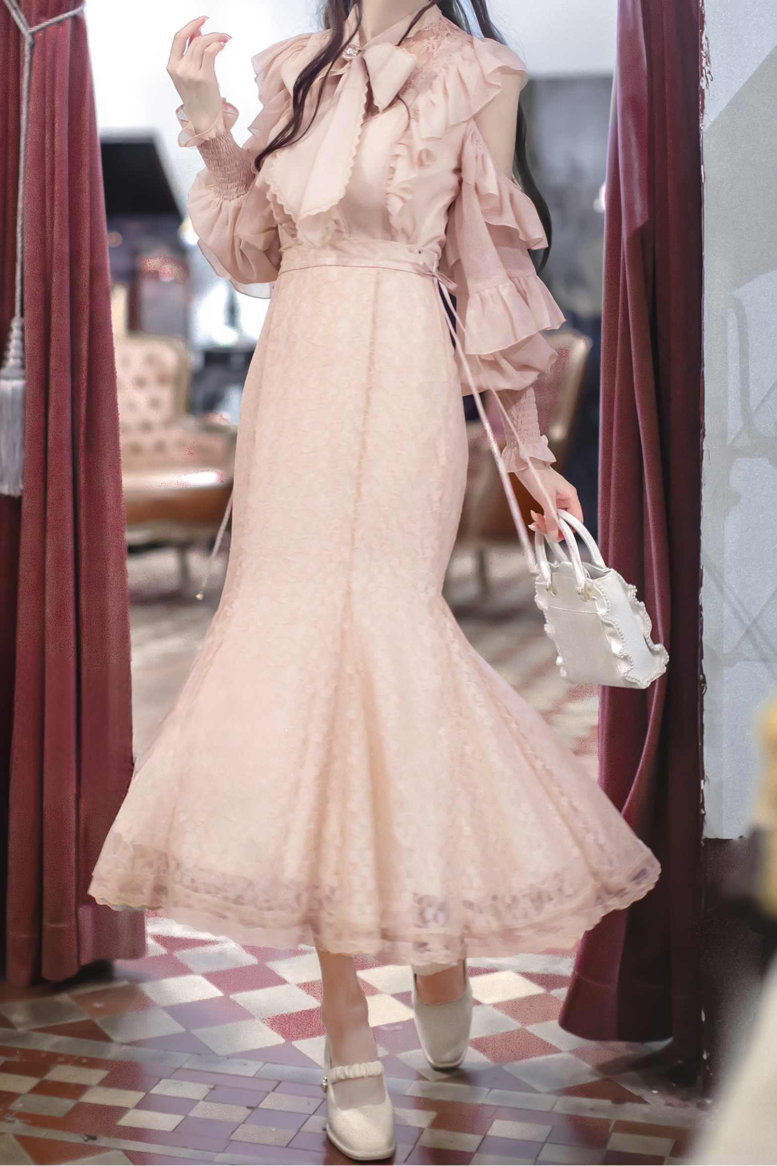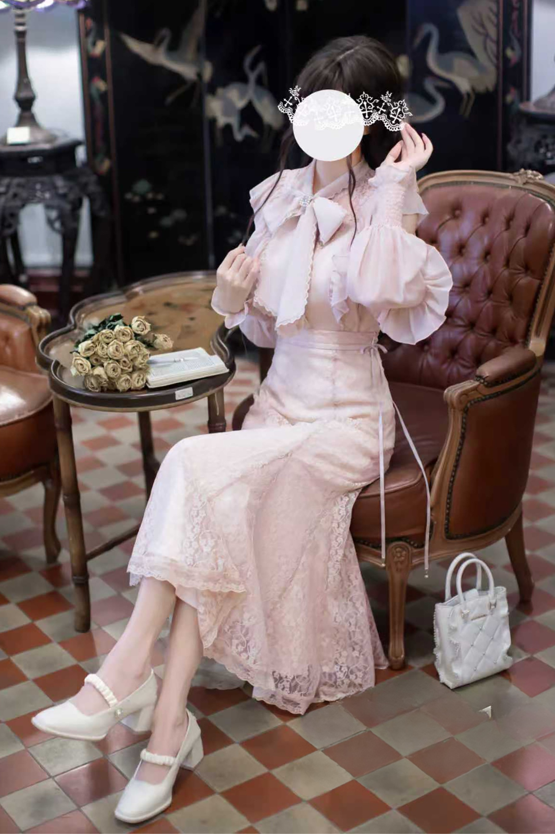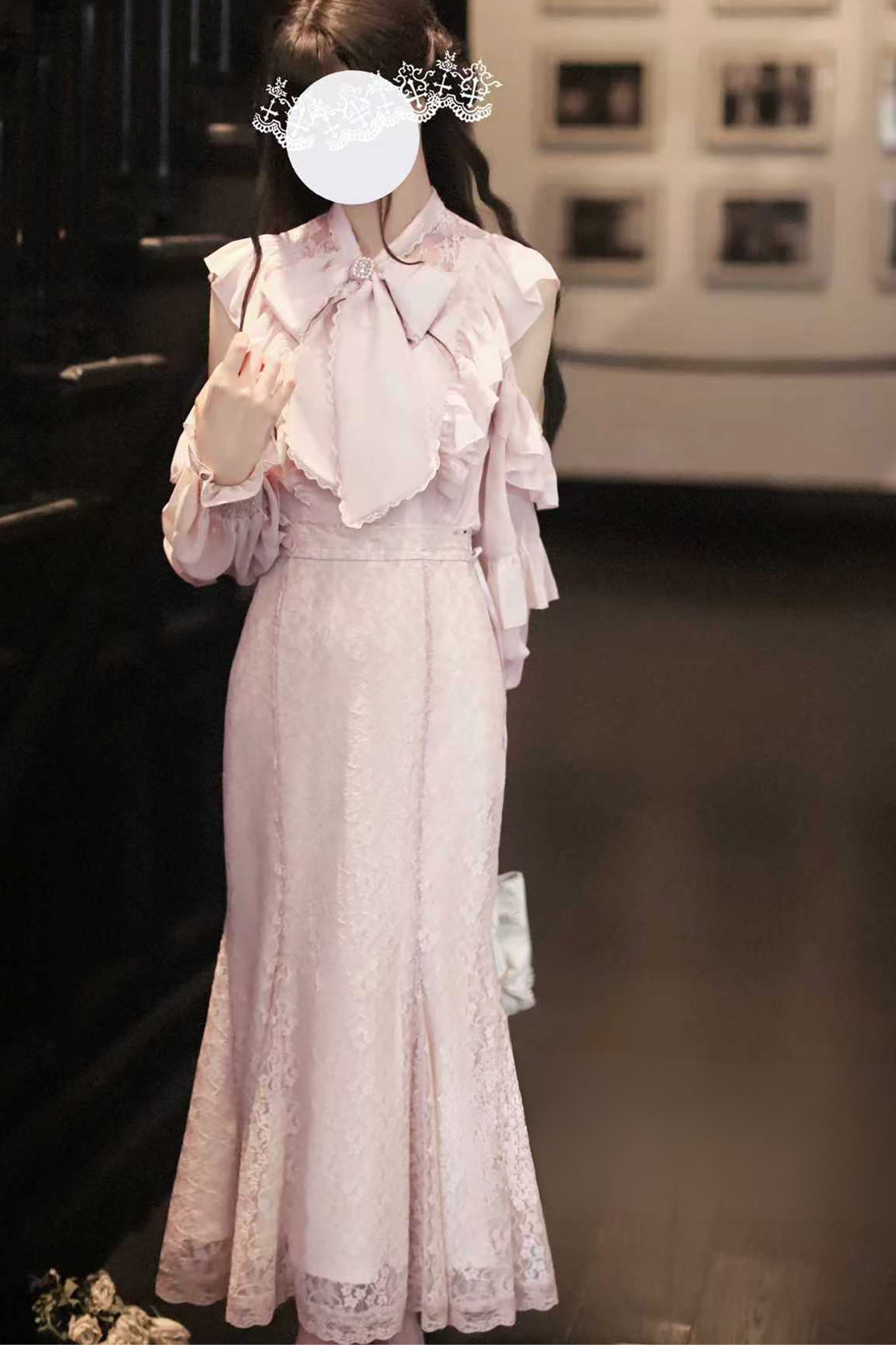 エレガントクリアシフォンビッグリボンシャツ+マーメイドスカート