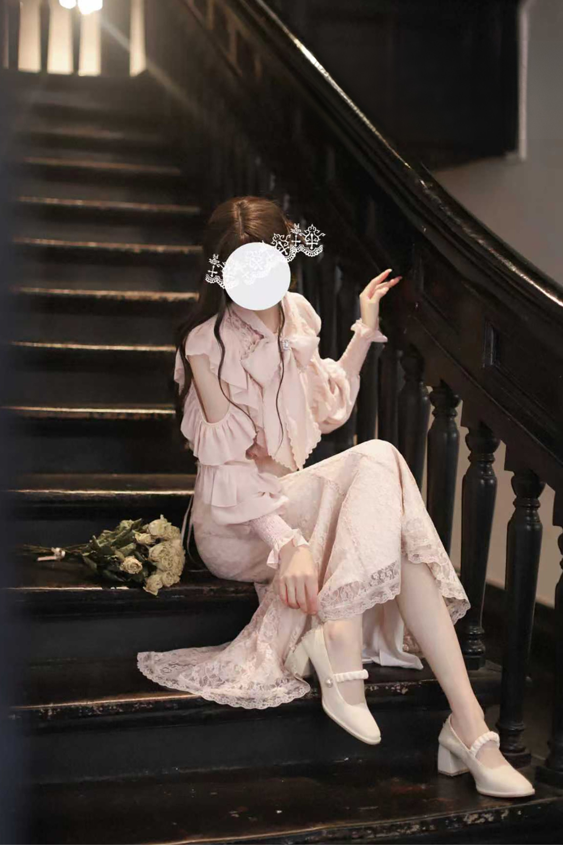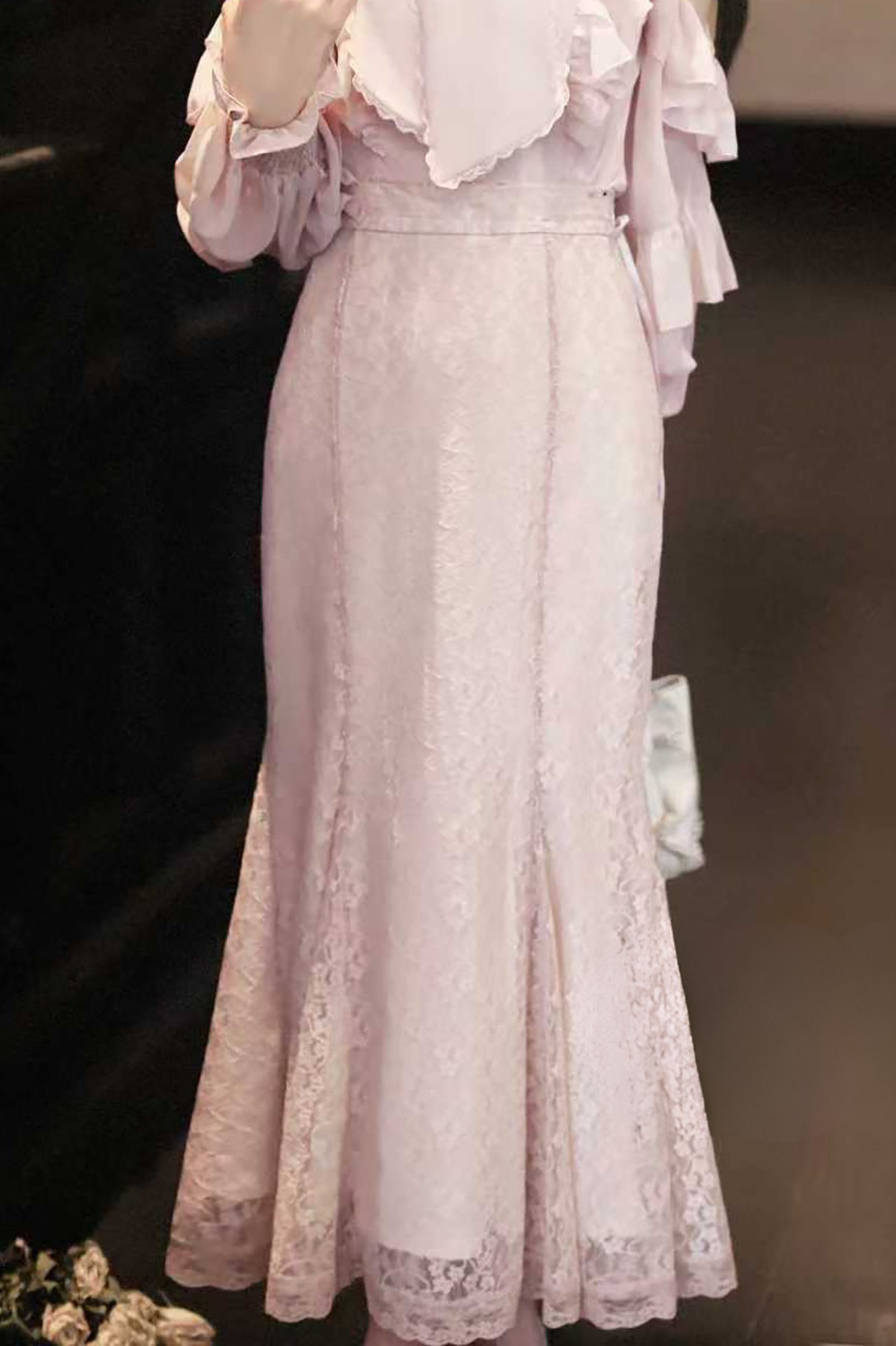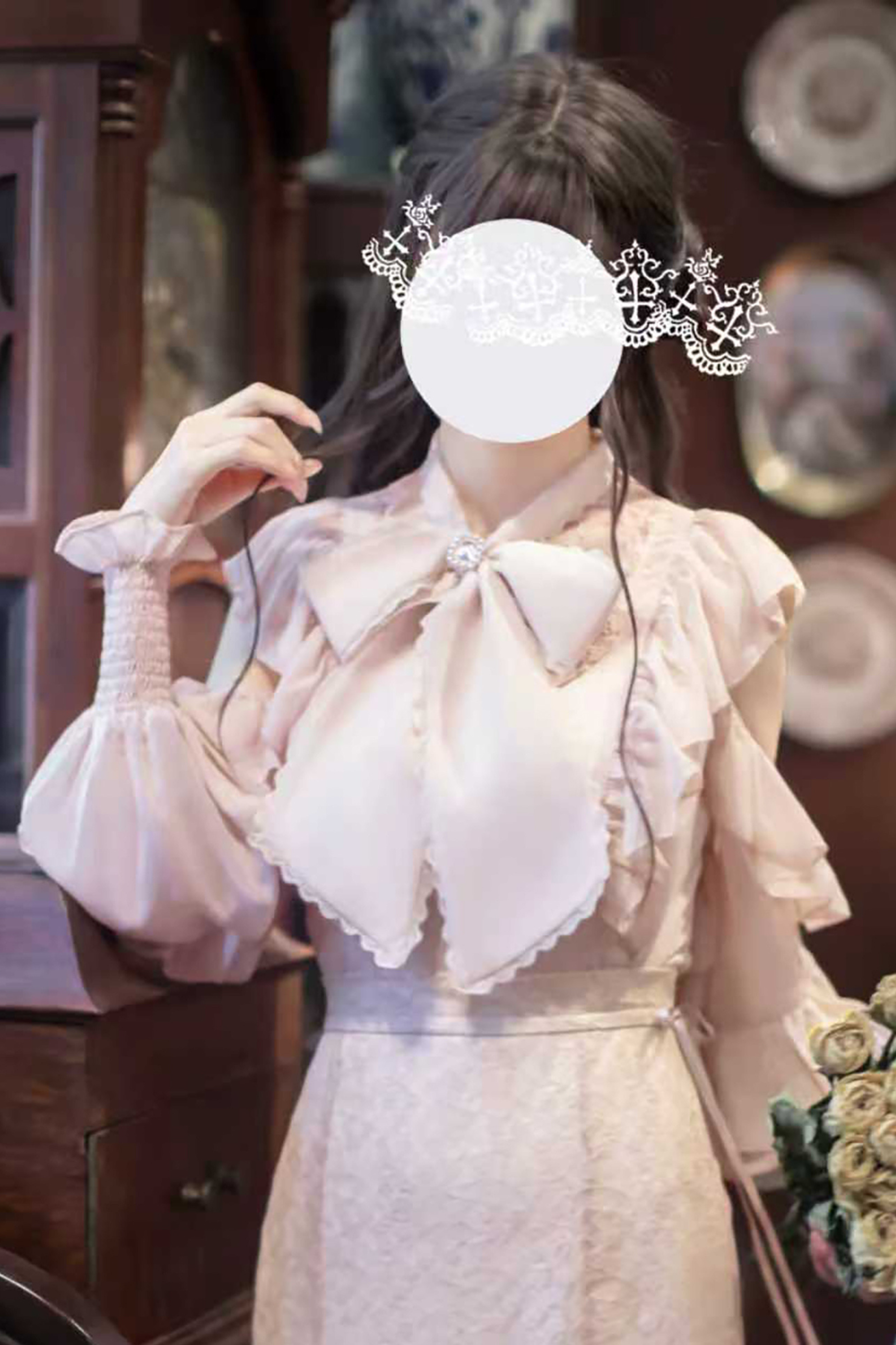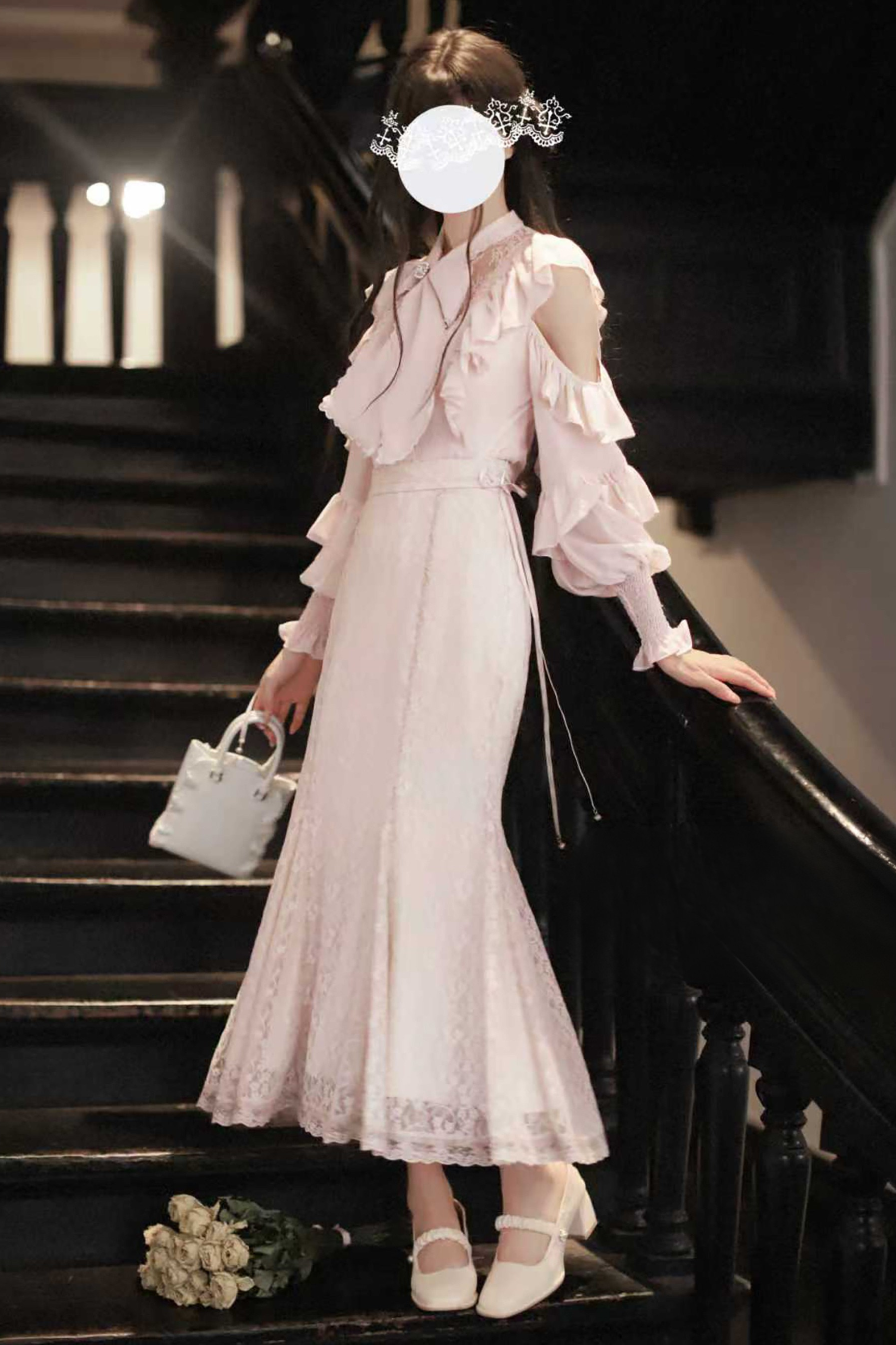 エレガントクリアシフォンビッグリボンシャツ+マーメイドスカート