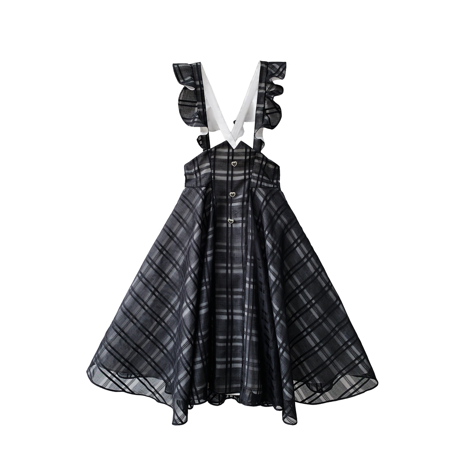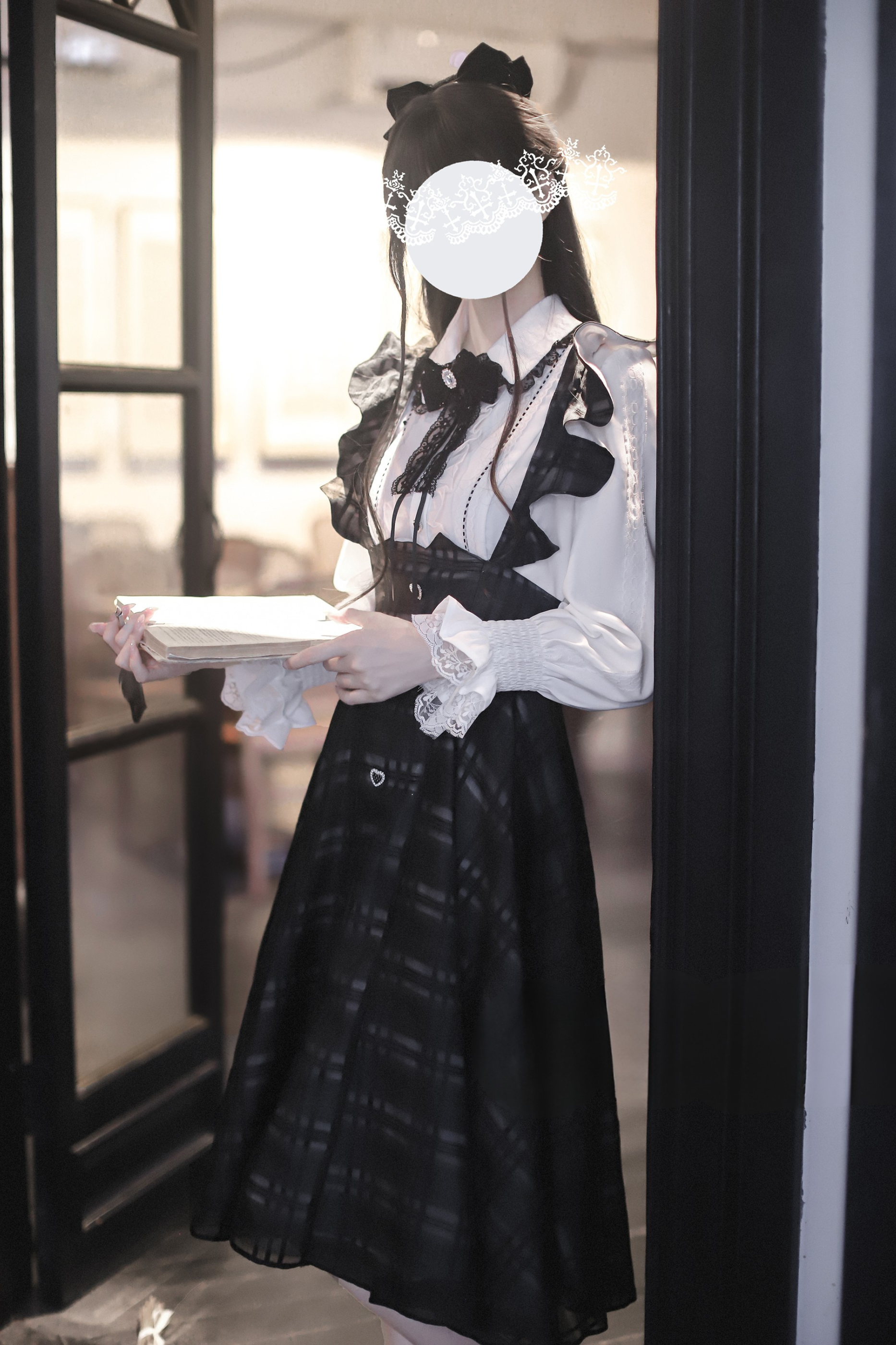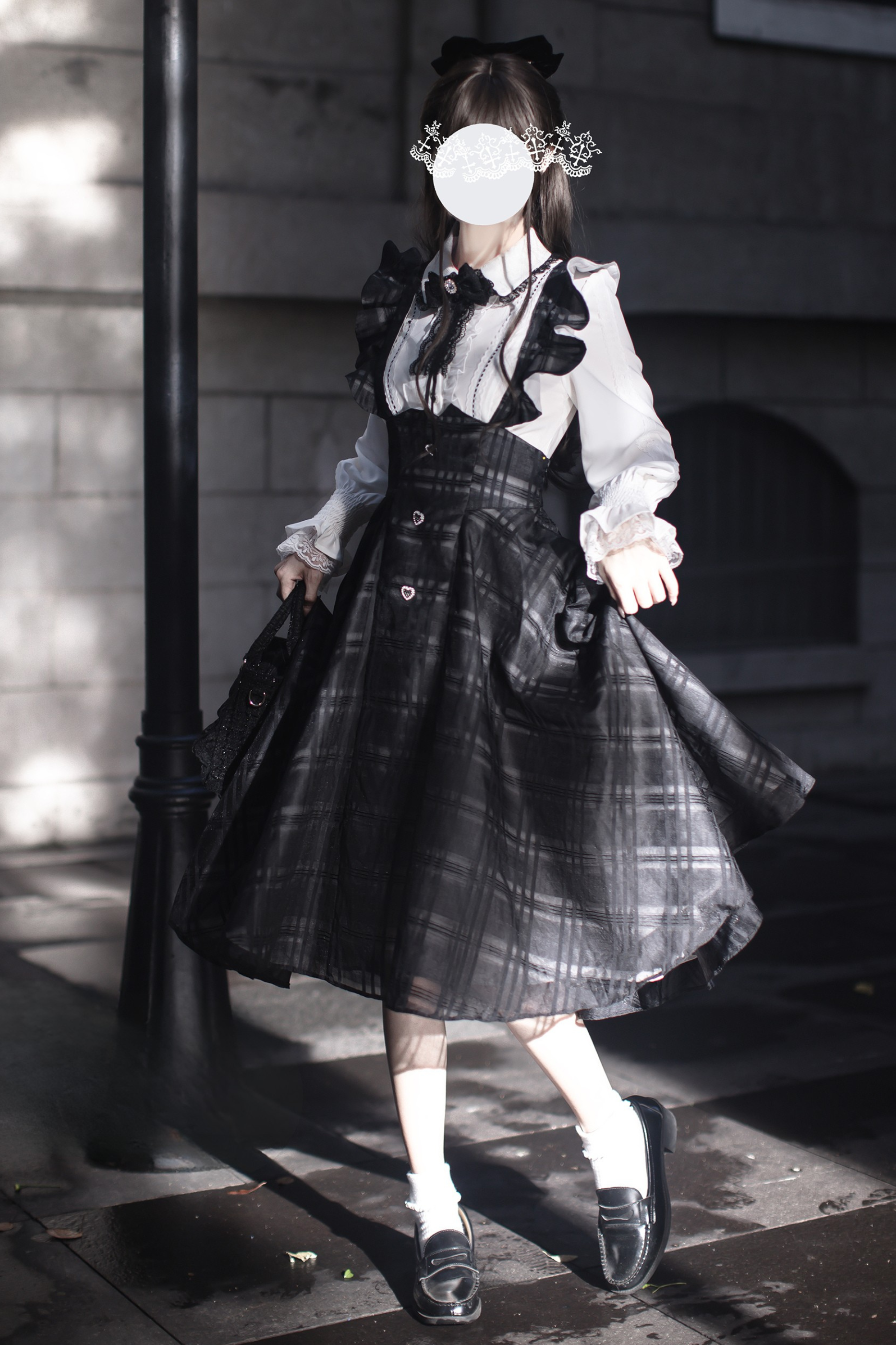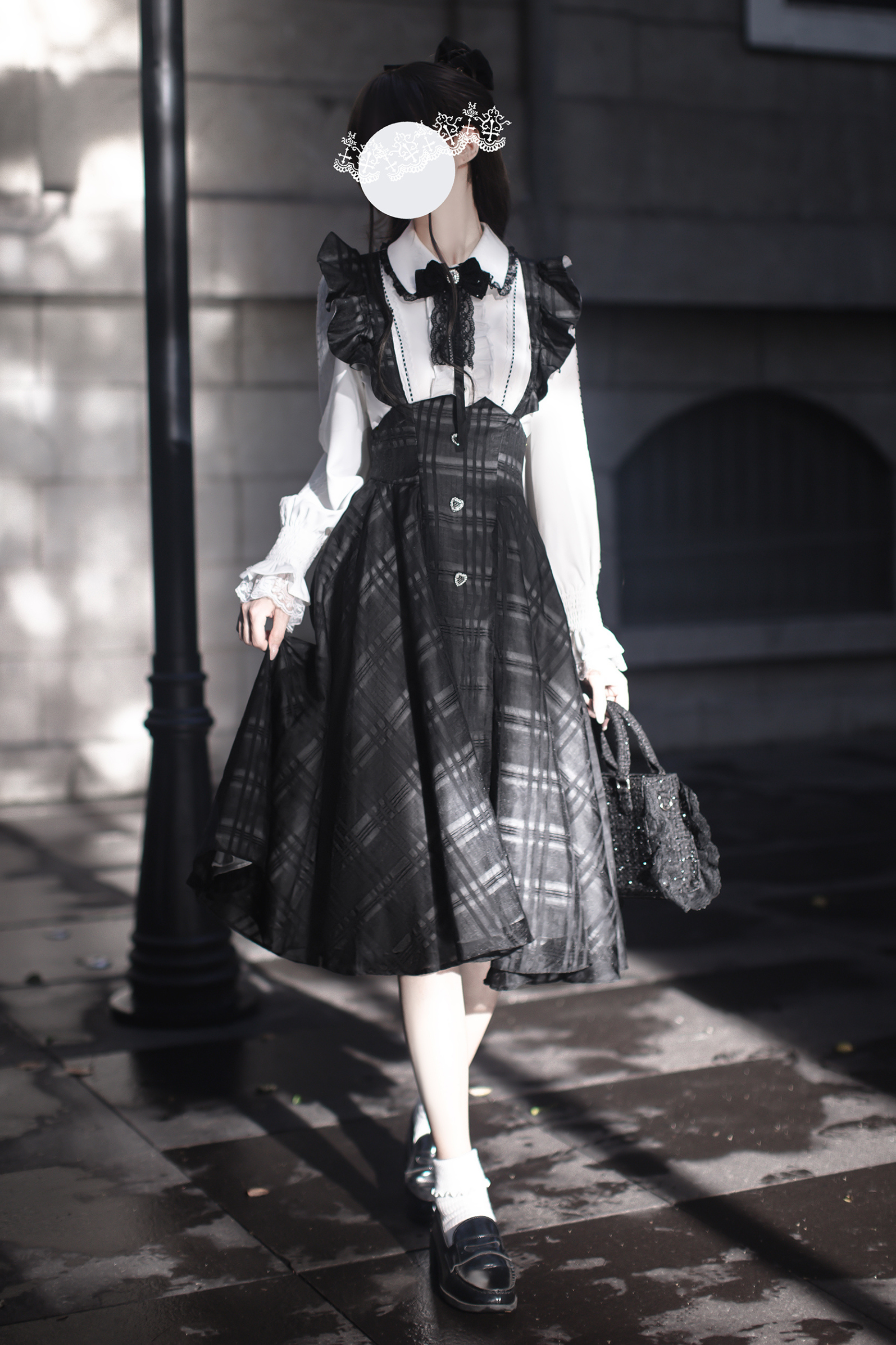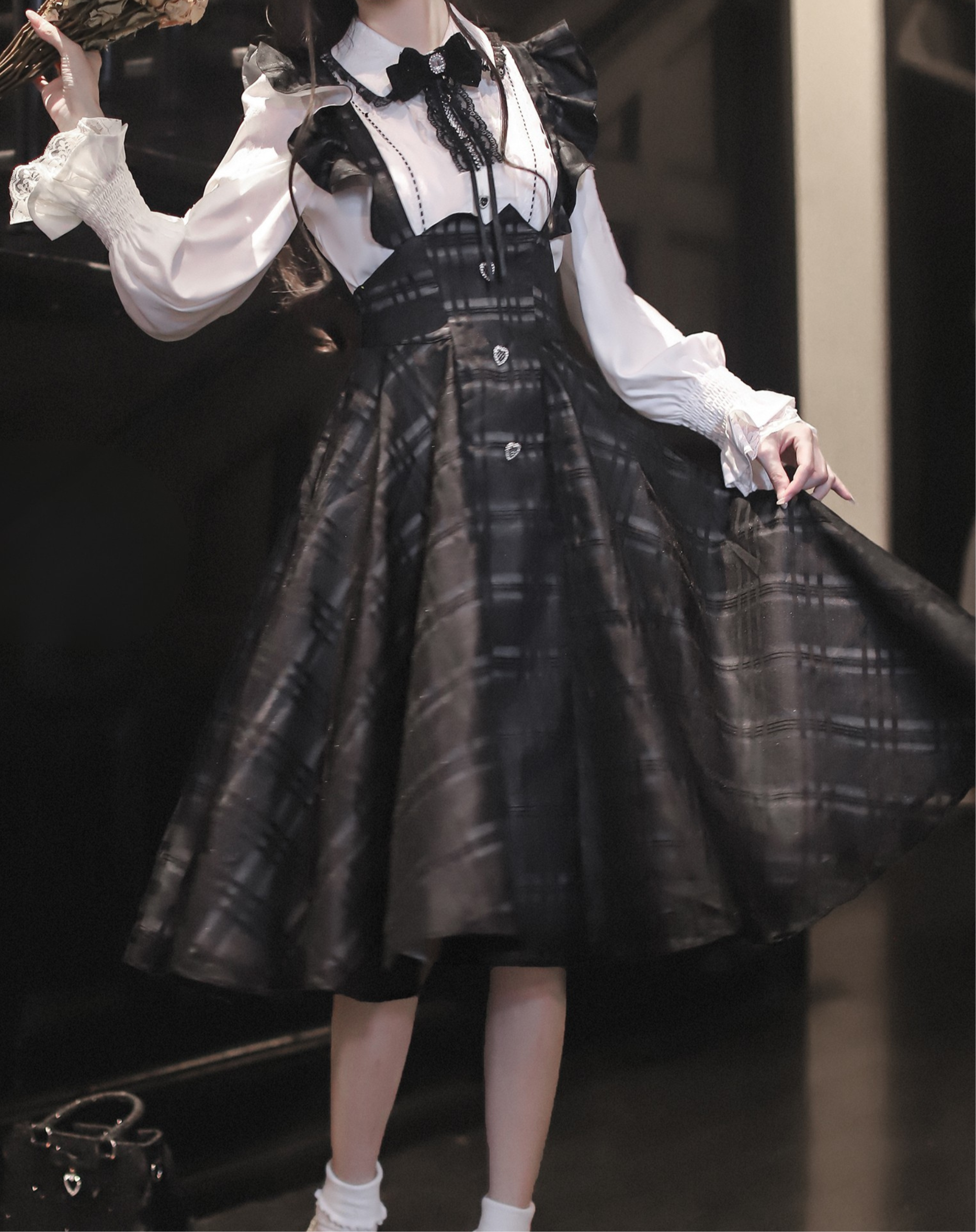 ❤エレガントロングチェックサススカート+シャツ+リボン❤