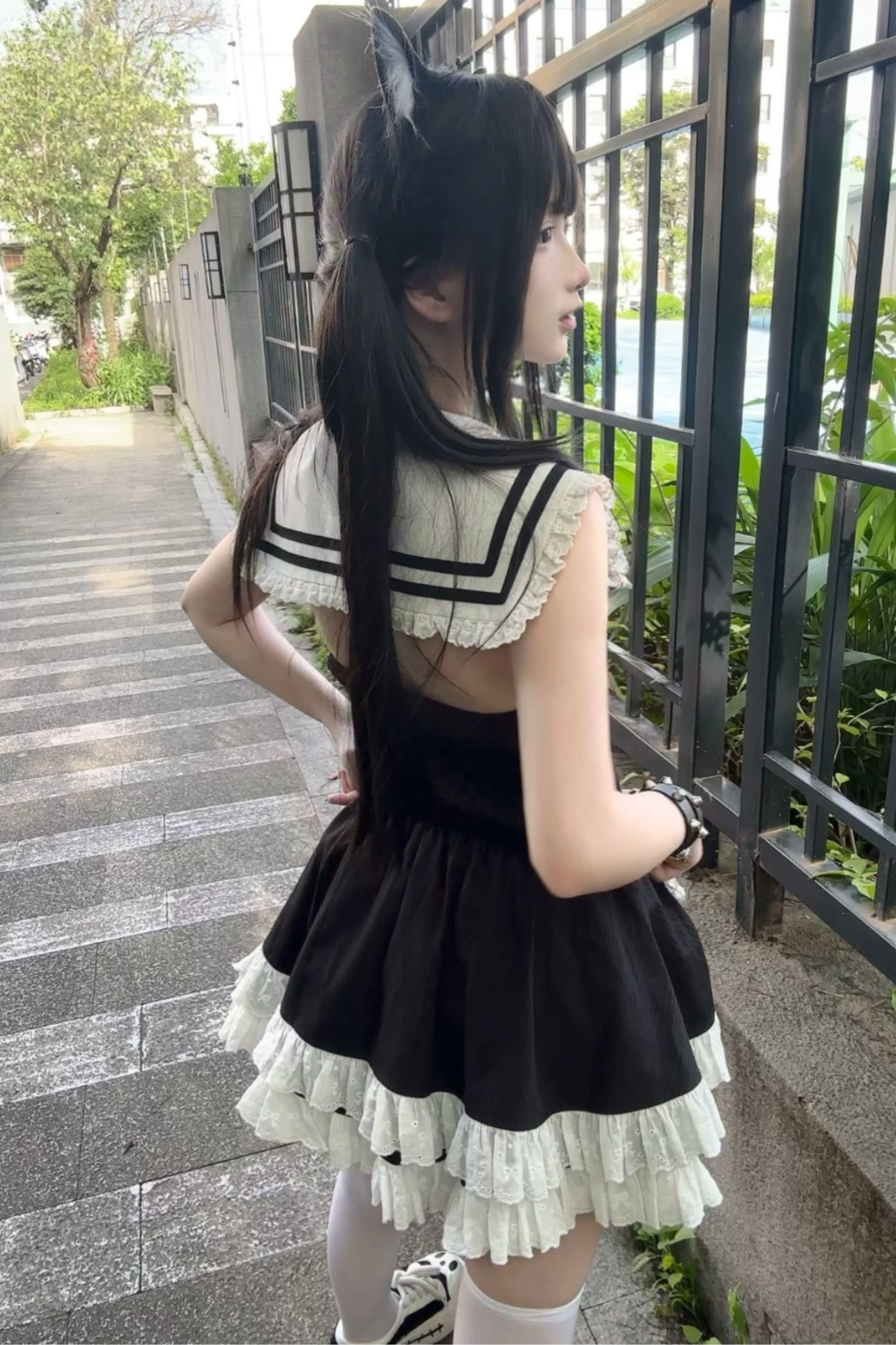 ダークレースリボンエンジェルノースリーブドレス