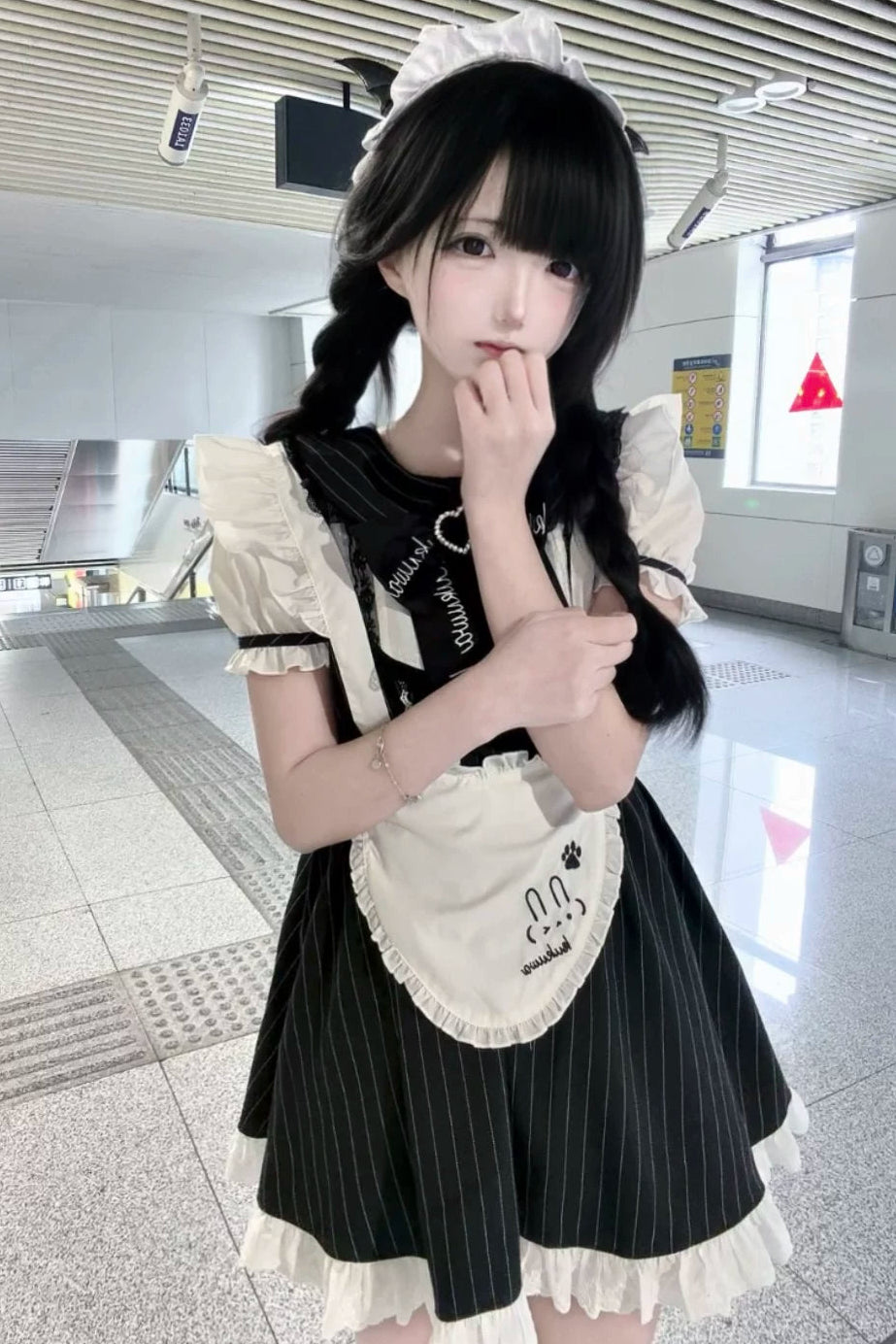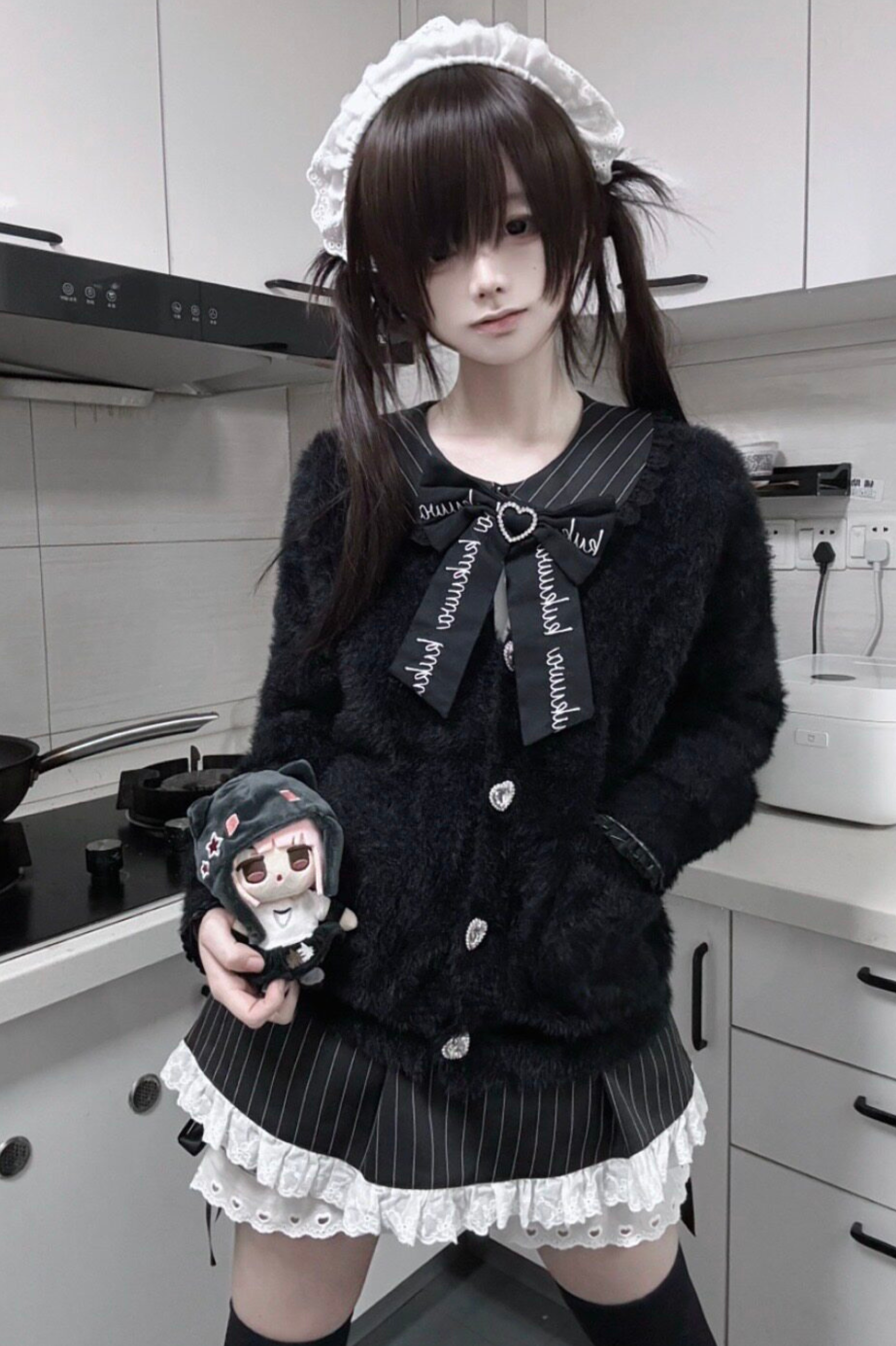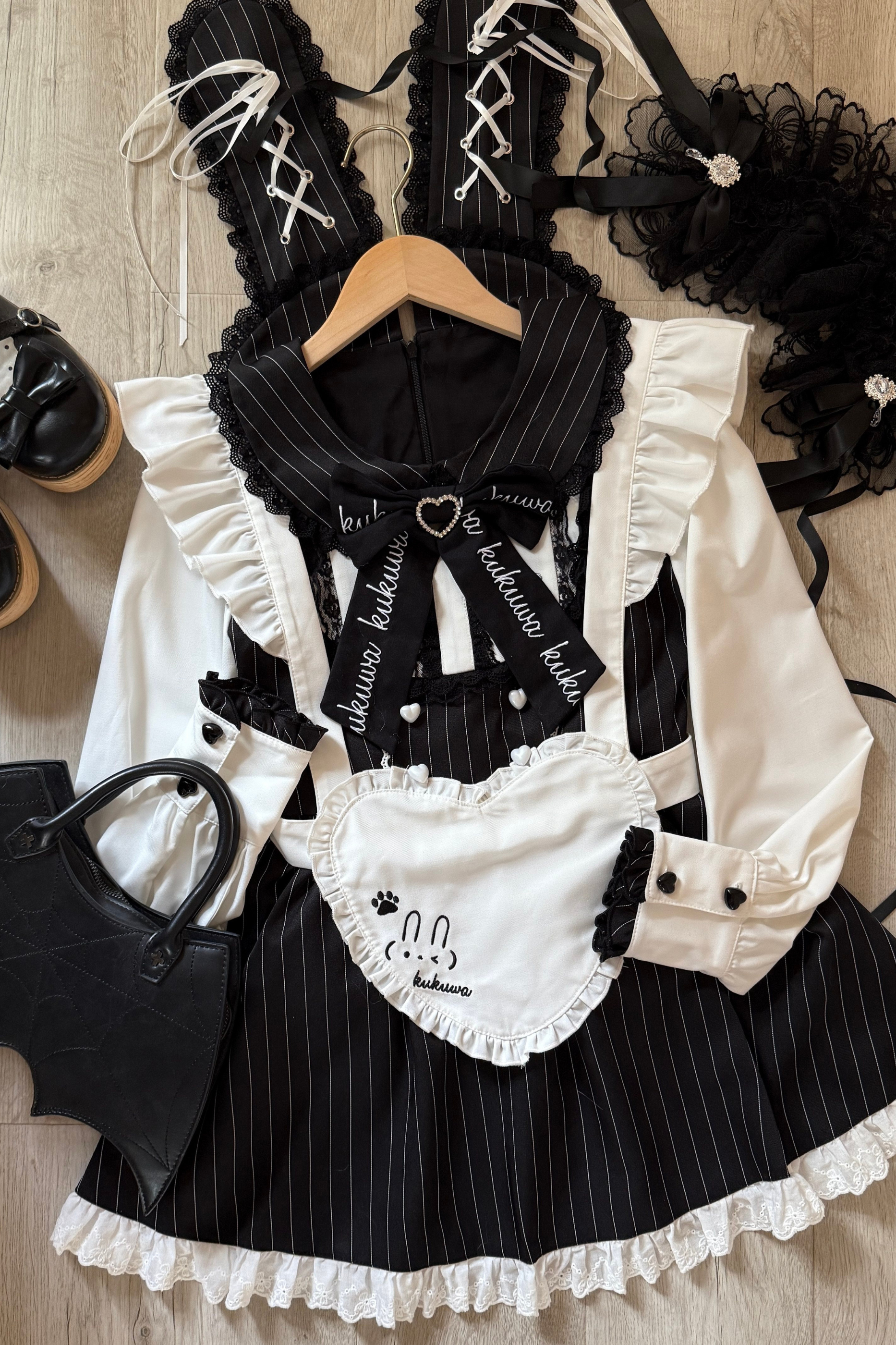 ❤ダークエンジェルレースアップドレス+エプロン+カーディガン❤