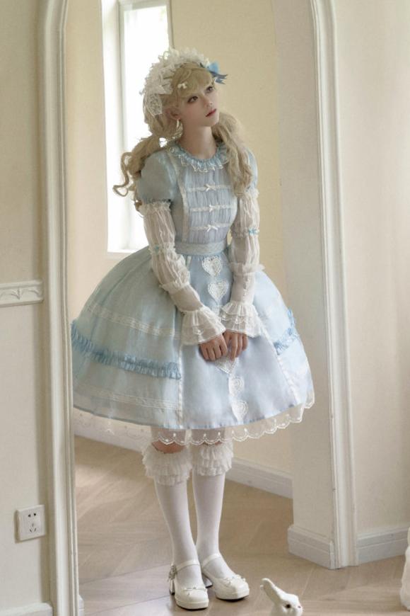 スイートドールフリルリボンロリータドレス+ミニリボンスリーブ