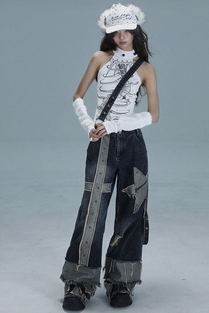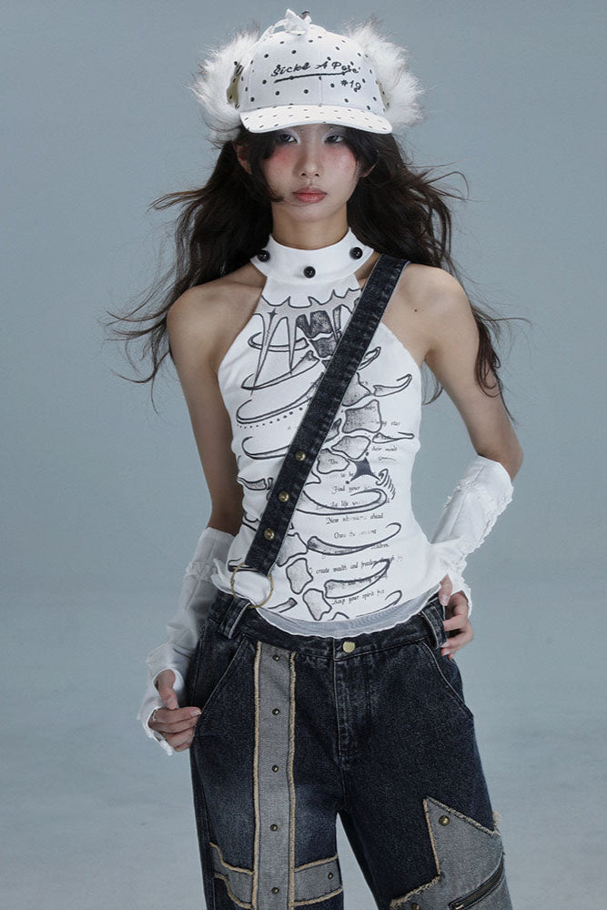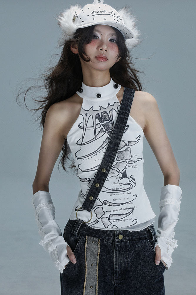 ❤サブカルチャーホルターネックノースリーブトップス❤