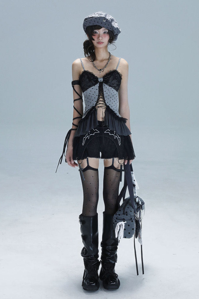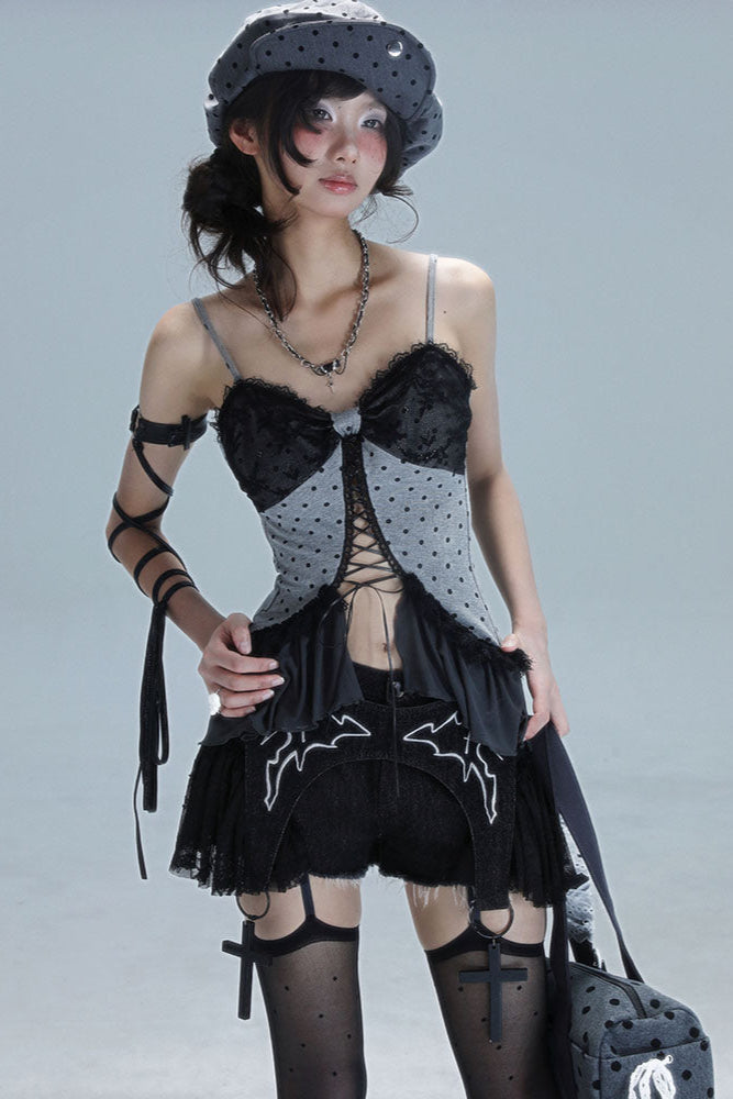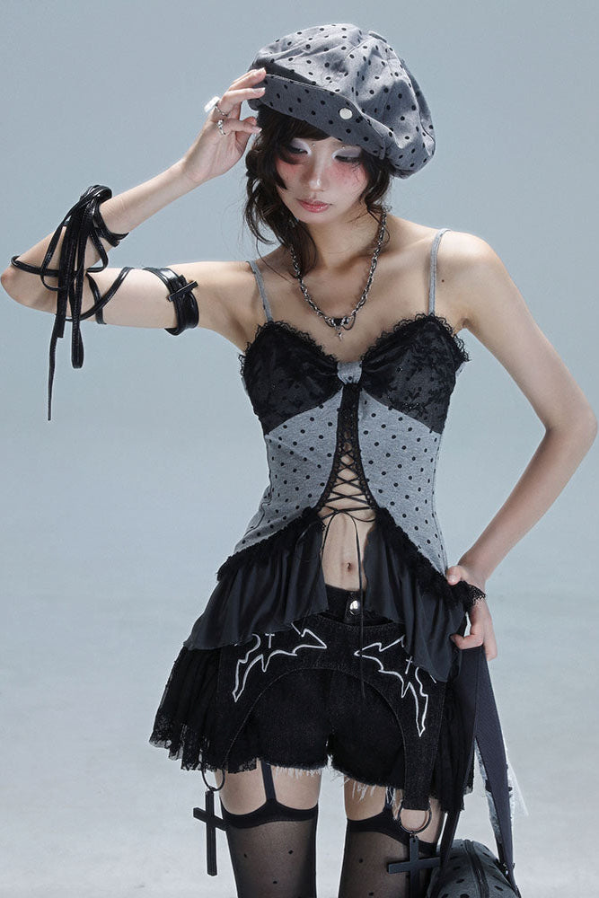 ❤レースカットアウトパッチワーク Y2Kトップス❤